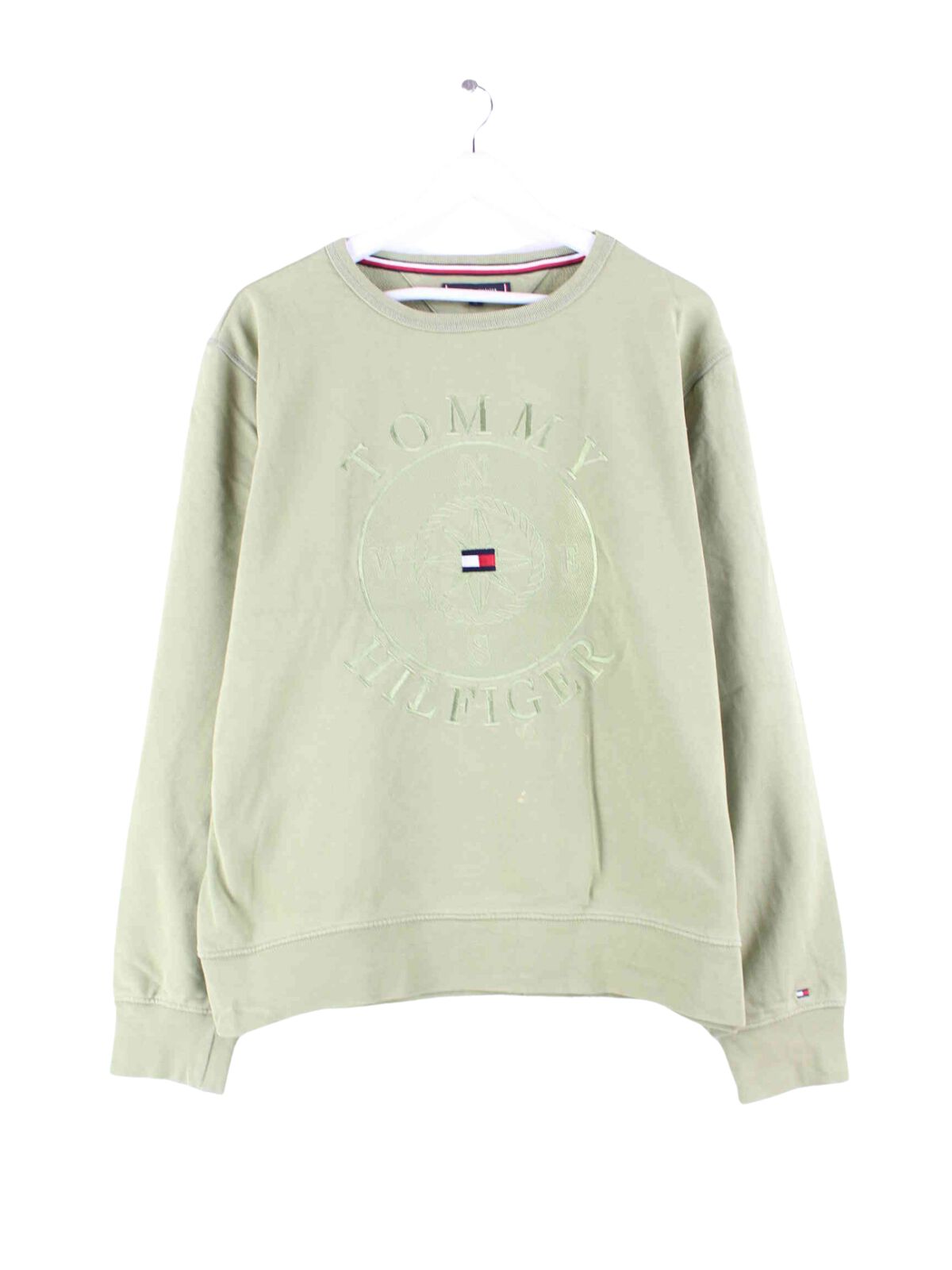 Sweater from Tommy Hilfiger with embroidery in size L. It is made from a cotton blend and is available in khaki.