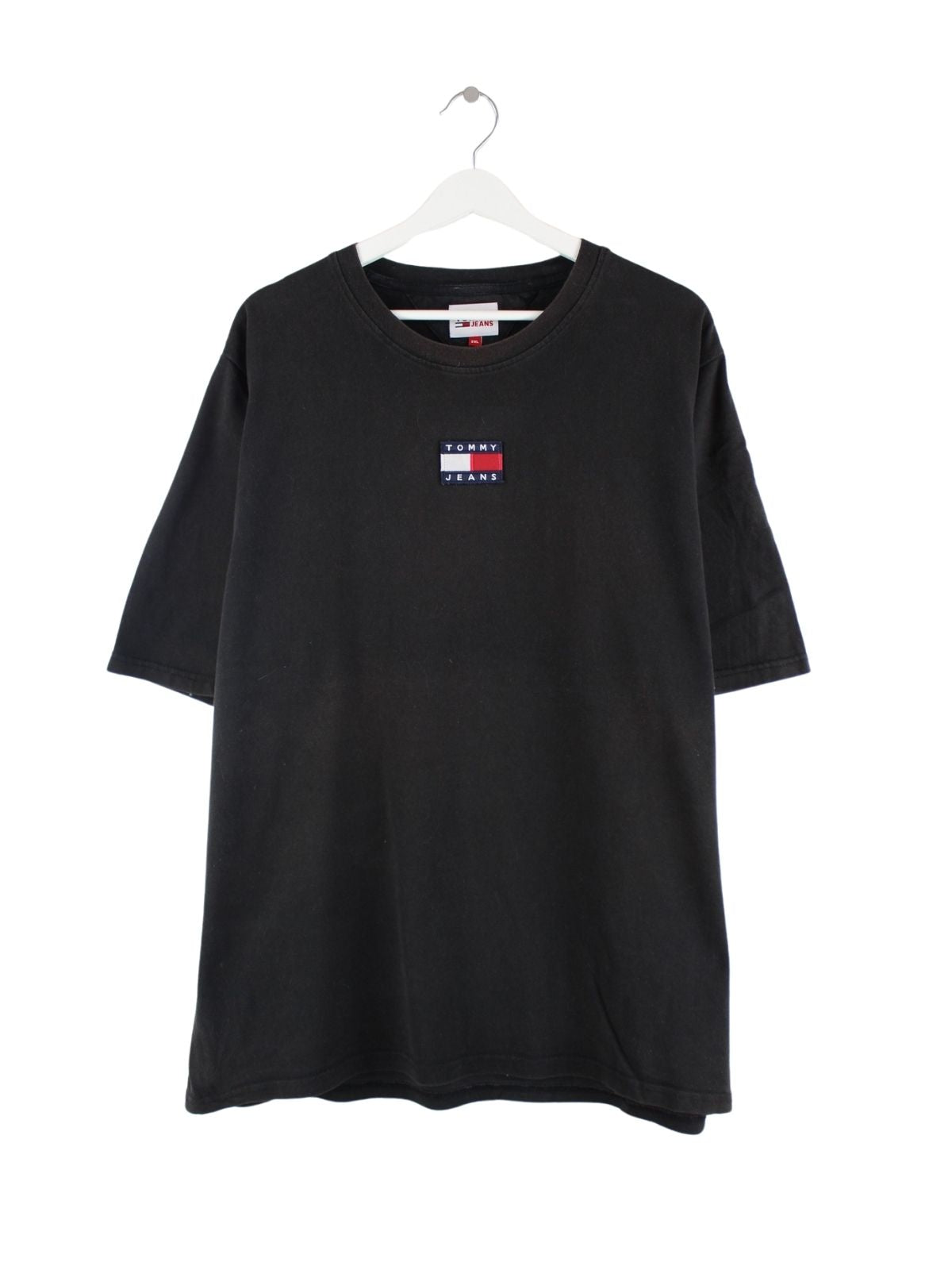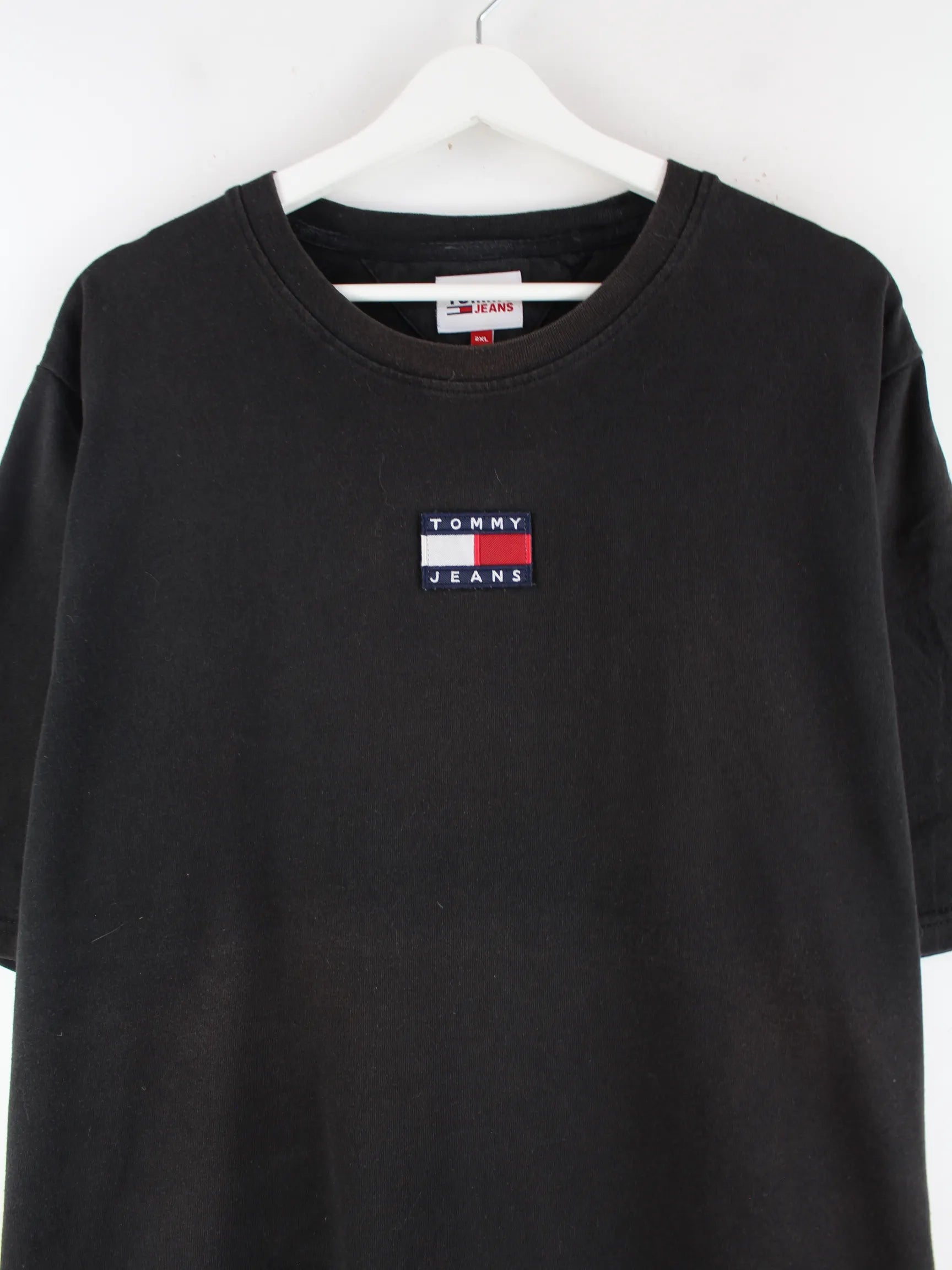 T-Shirt der Marke Tommy Hilfiger mit gestickten Motiven in Größe XXL. Es ist aus Baumwolle produziert und in Schwarz in Stock.
