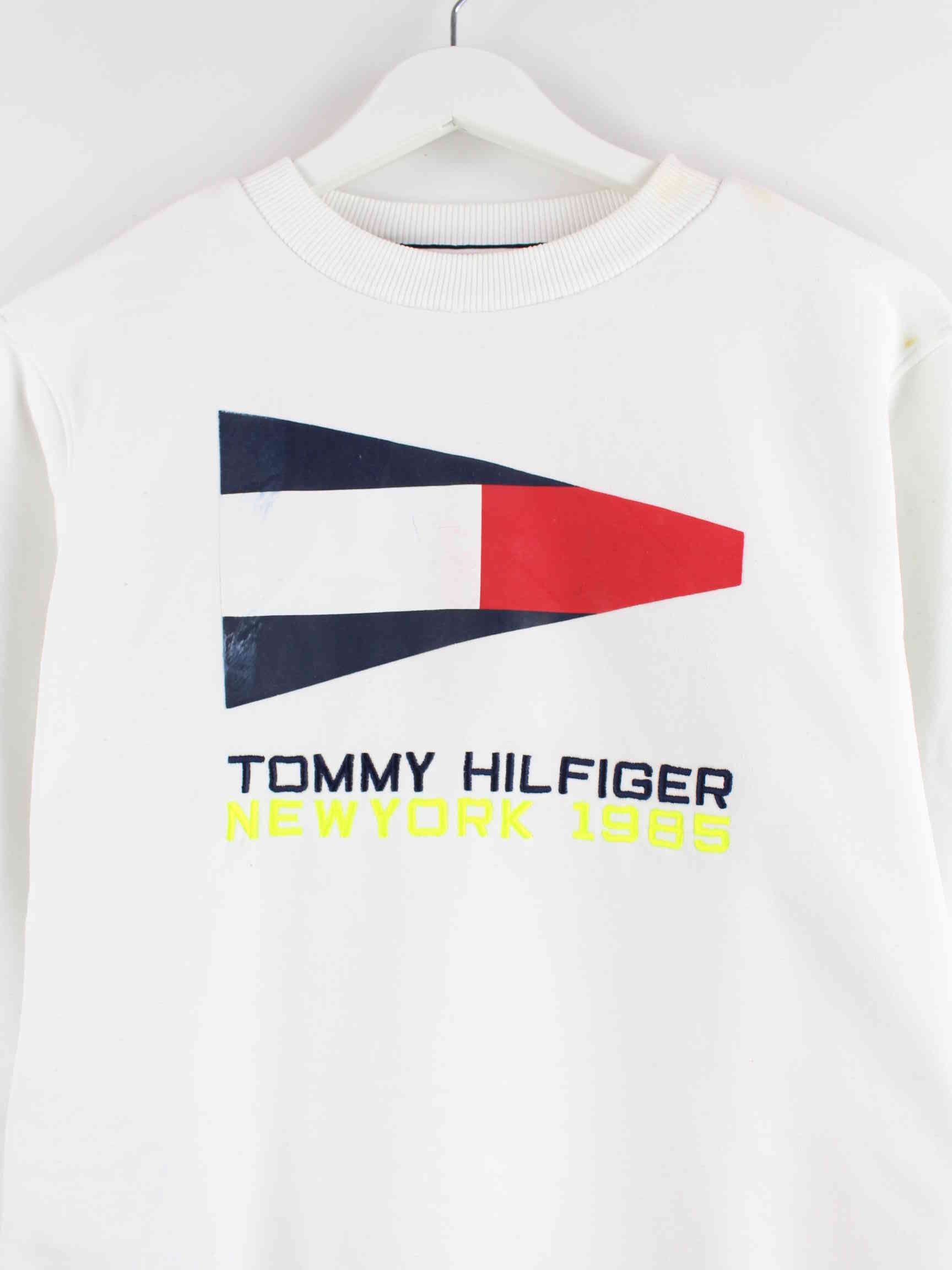 White sweater from Tommy Hilfiger in size XS. It is made from a cotton blend. We would describe the condition as 'OK' (see pictures).