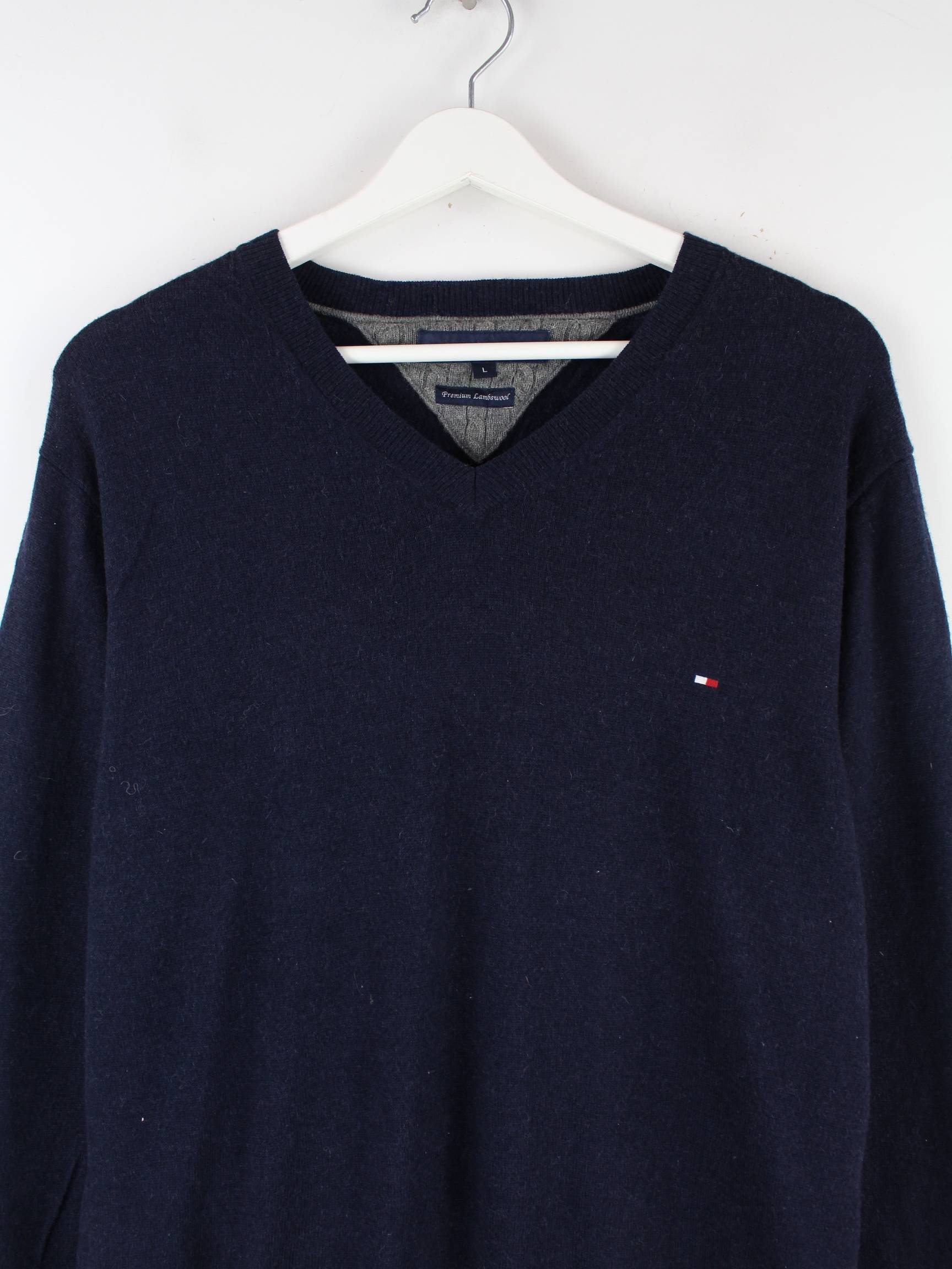 Blauer Pullover von Tommy Hilfiger in Größe L. Er ist aus Wolle angefertigt und in sehr gutem Zustand zu bekommen.