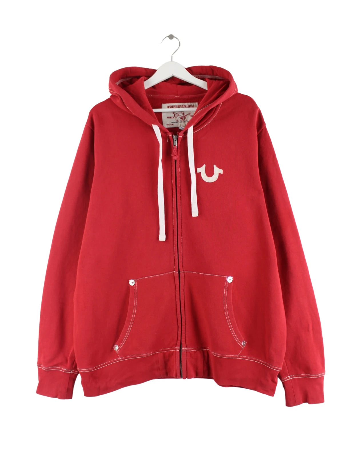 Hoodie von True Religion mit durchgehendem Reißverschluß in Größe XXL aus Anfang der 2000'er. Er ist aus einer Baumwollmischung hergestellt und in Rot auf Lager.
