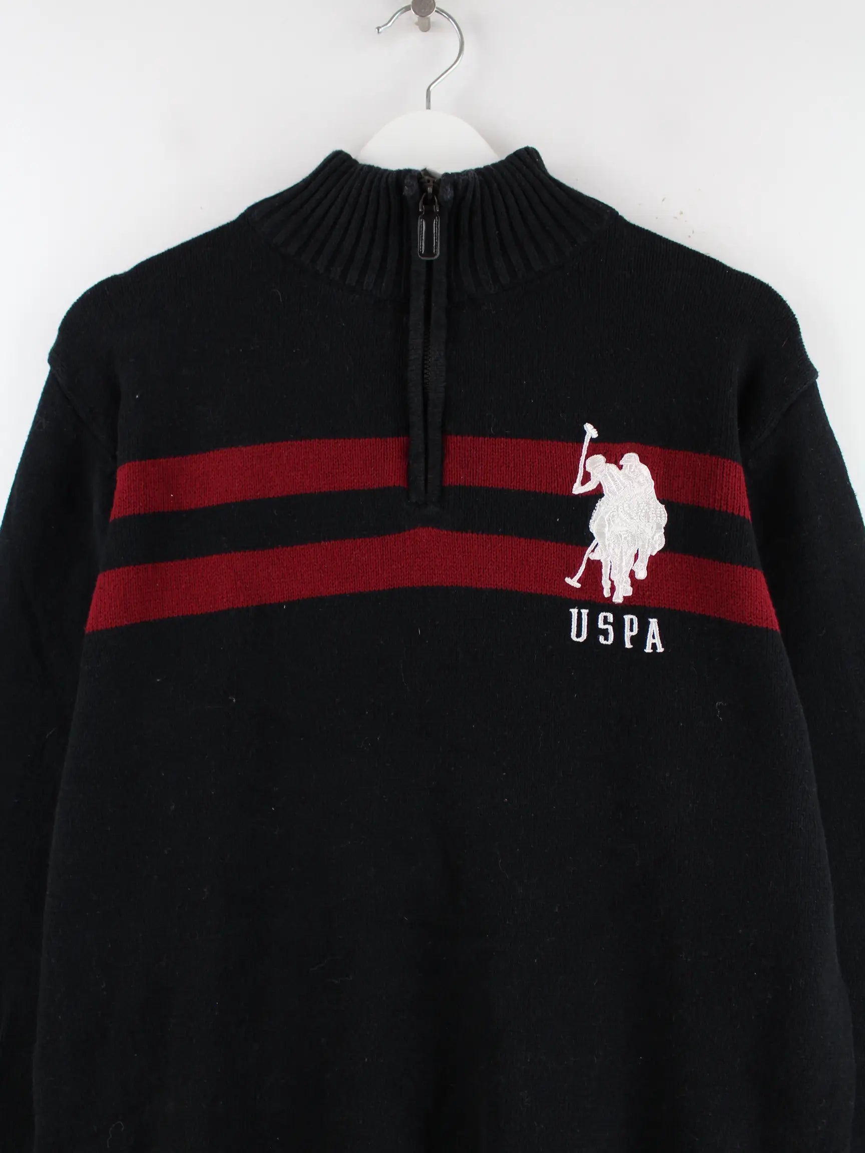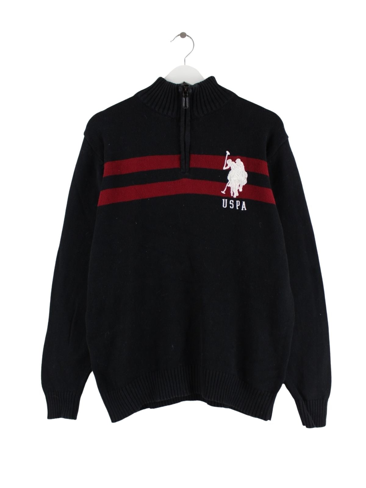 Pullover der Brand U.S. Polo ASSN. mit halbem Reißverschluß in Größe M. Er ist aus Baumwolle gemacht und in Schwarz zu bekommen.