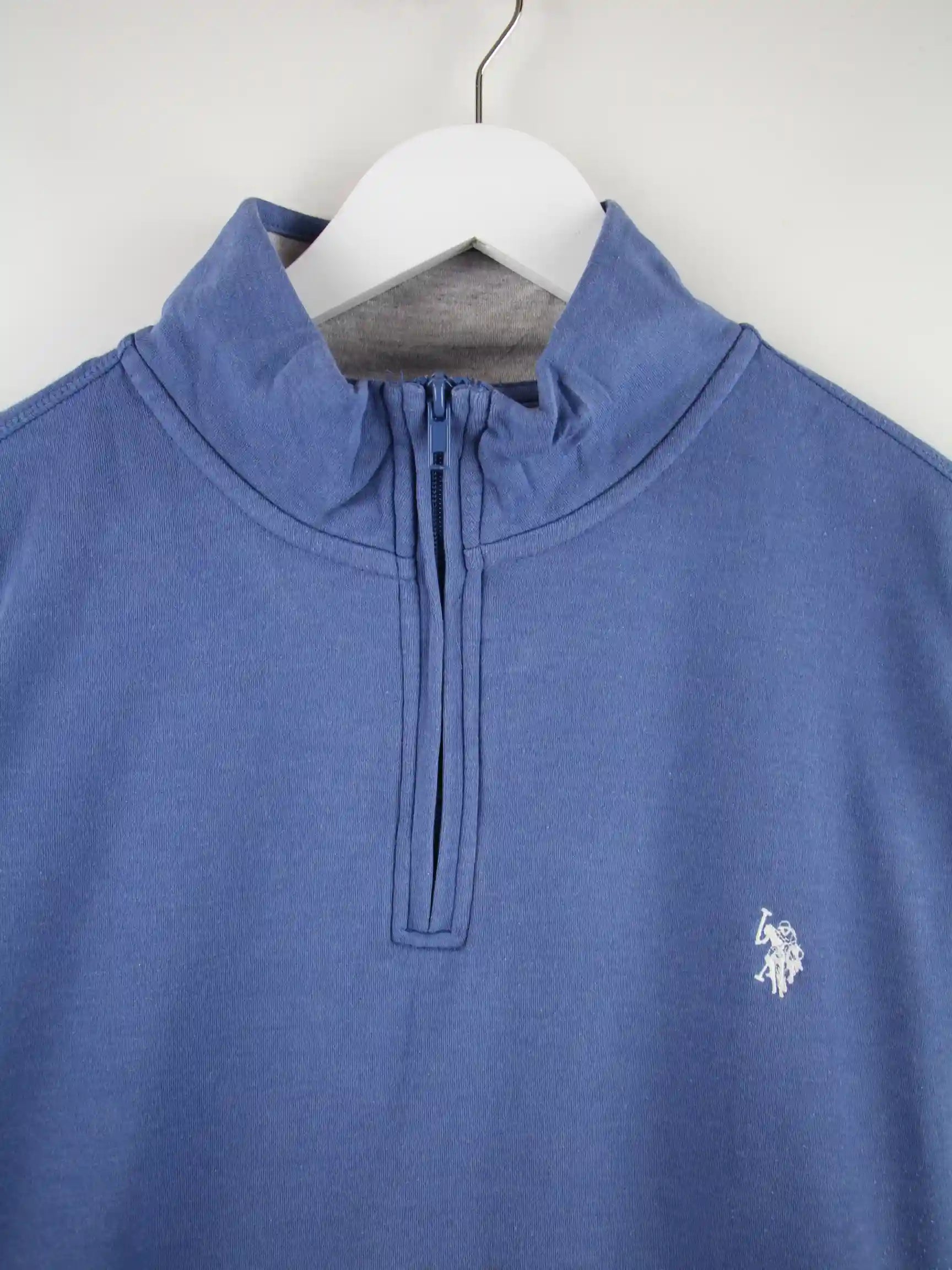Blauer Sweater mit half Zip aus dem Hause U.S. Polo ASSN. in Größe L. Er ist aus einer Baumwollmischung und in sehr gutem Zustand im Bestand.