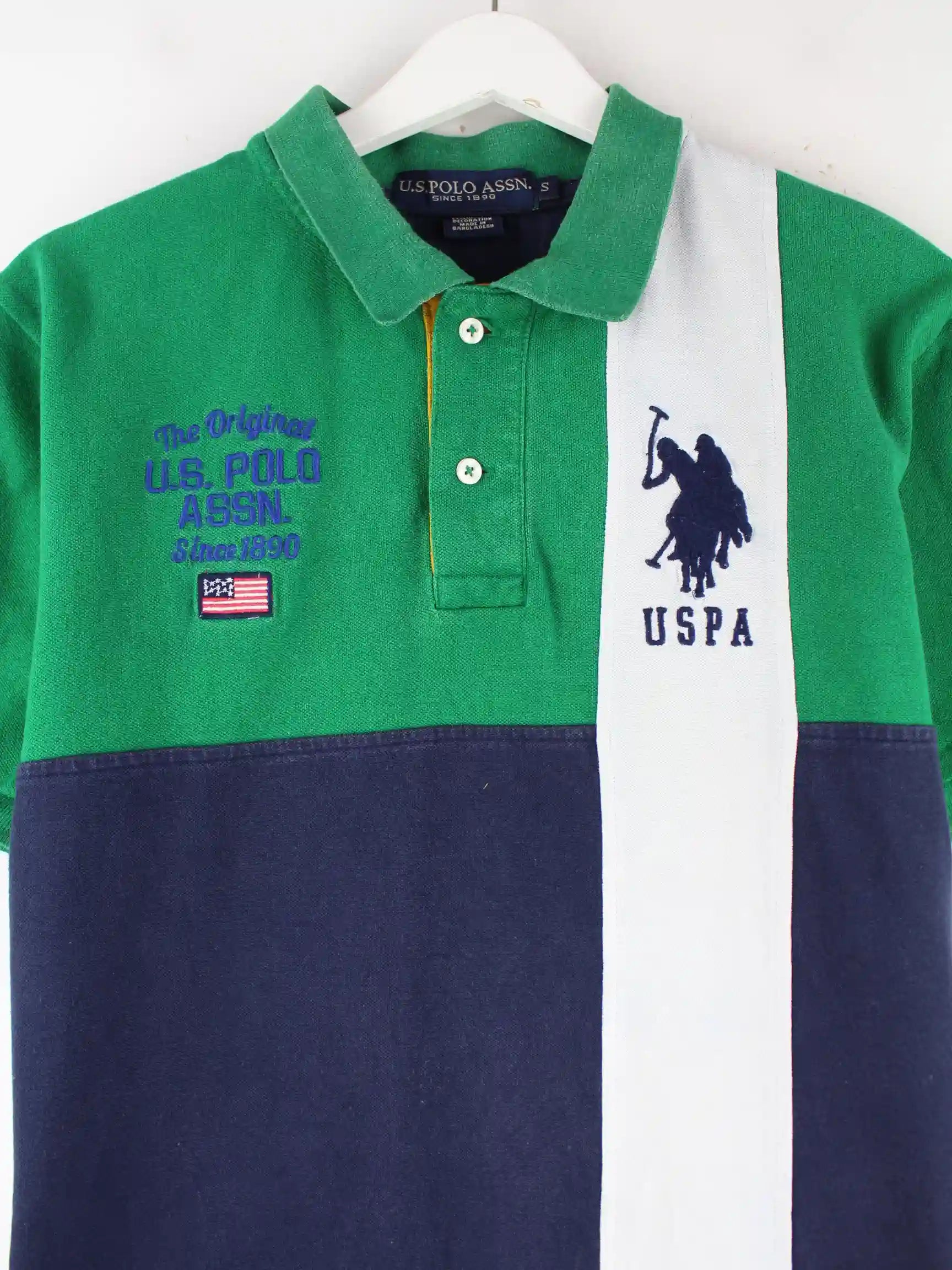 Grünes Poloshirt mit gesticktem Logo der Marke U.S. Polo ASSN. in Größe S. Es ist aus Baumwolle gemacht. Den Zustand würden wir als 'In Ordnung' bezeichnen (vergl. Bilder).