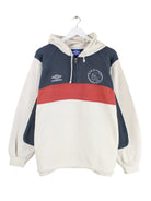 Hoodie vom Label Umbro mit halbem Reißverschluß in Größe L. Er ist aus einer Baumwollmischung gefertigt und in bunten Farben bei uns vorrätig.