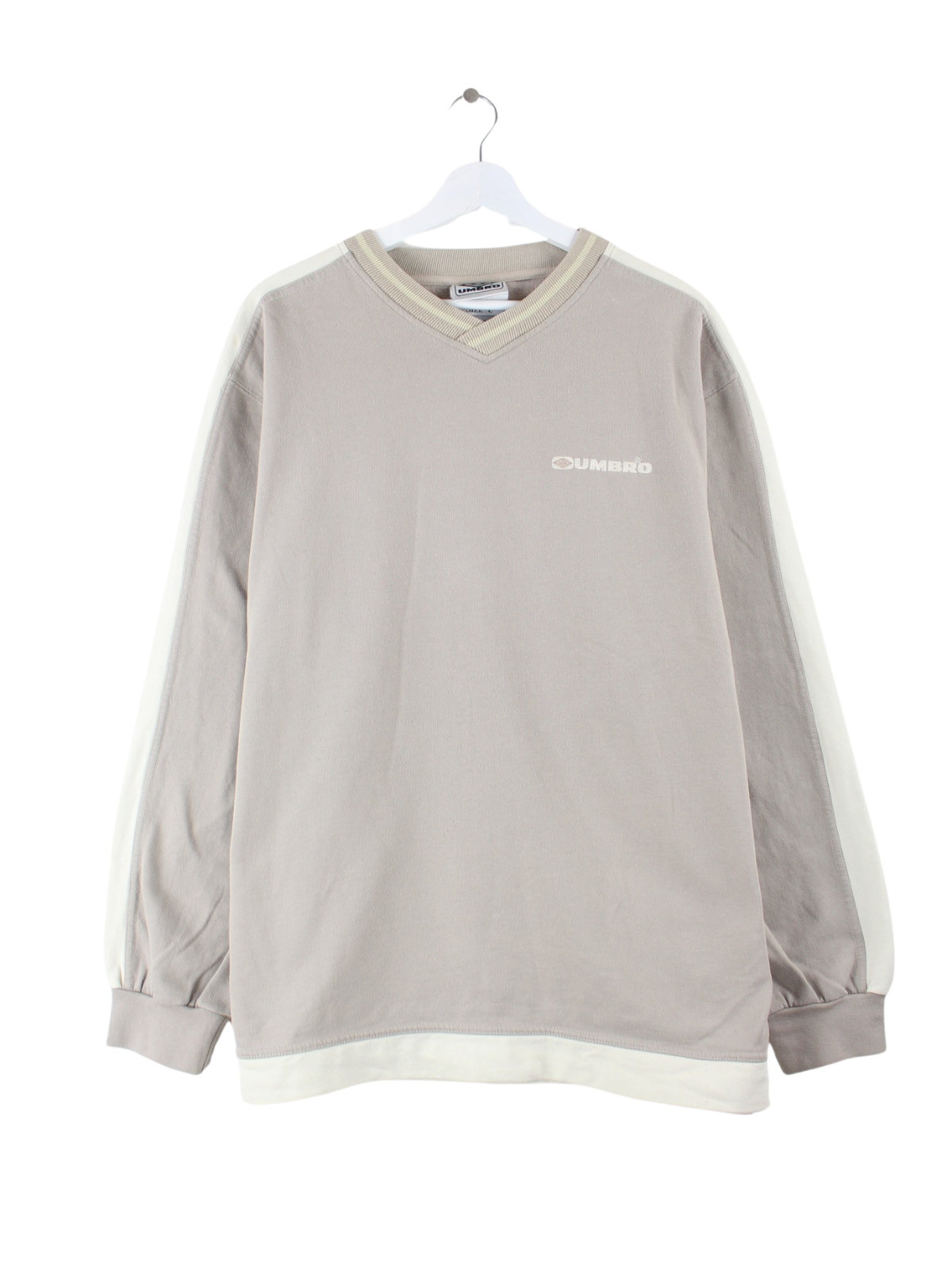 Umbro brand sweater with embroidered motifs in size L. It is made of a cotton blend and comes in beige.