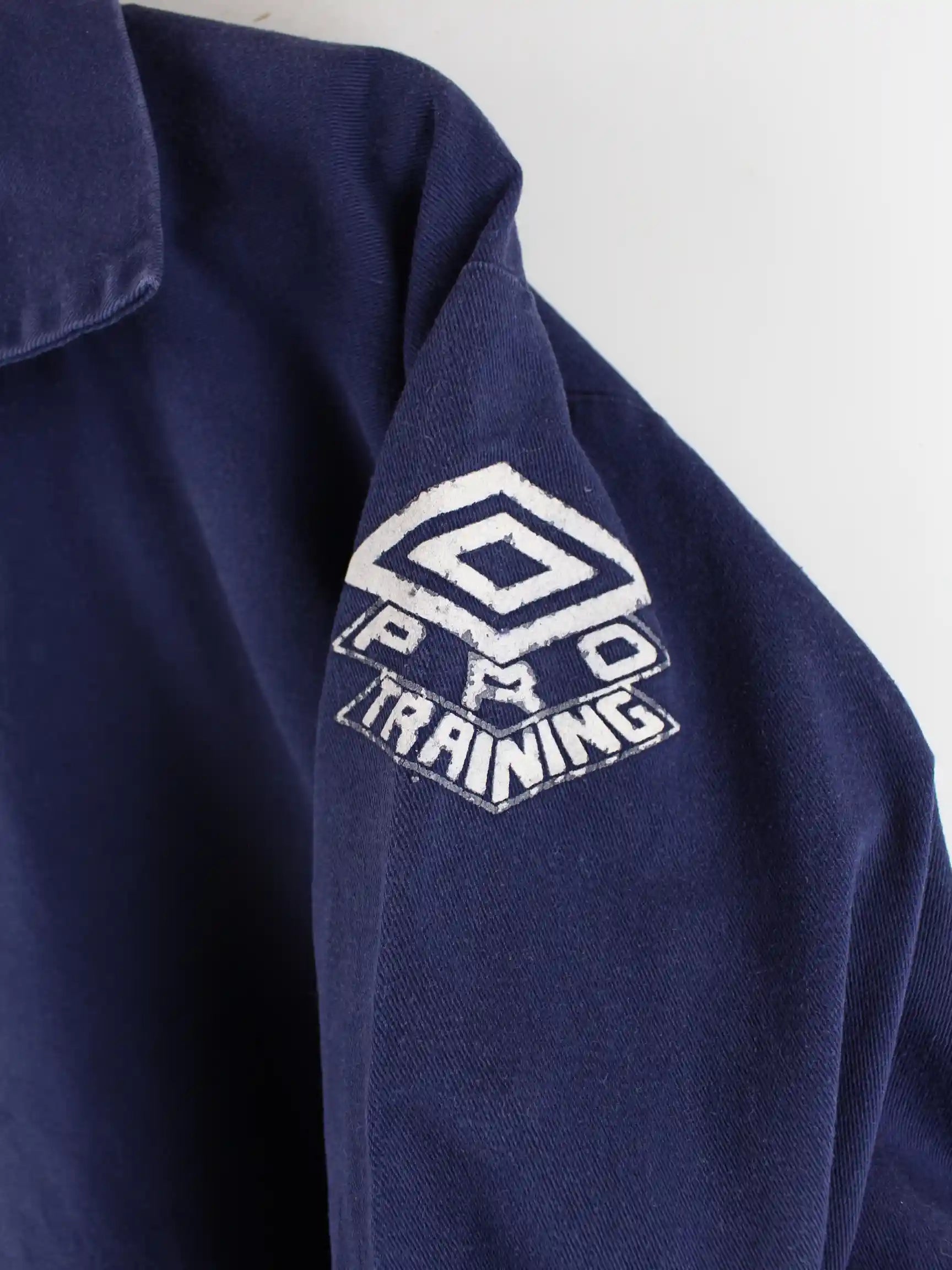 Blauer Sweater von Umbro aus den 90'ern in Größe XL. Er ist aus einer Baumwollmischung und in gutem Zustand in Stock.