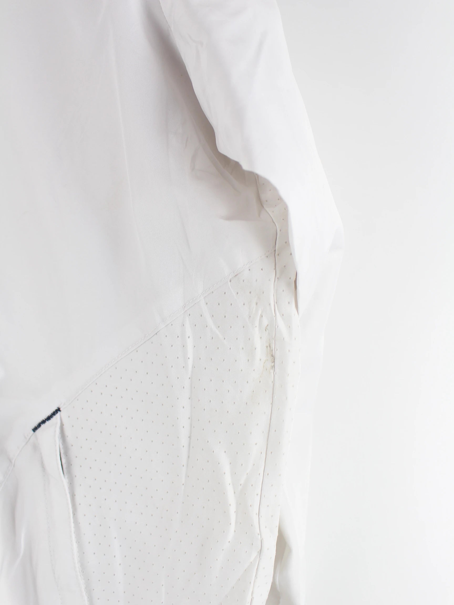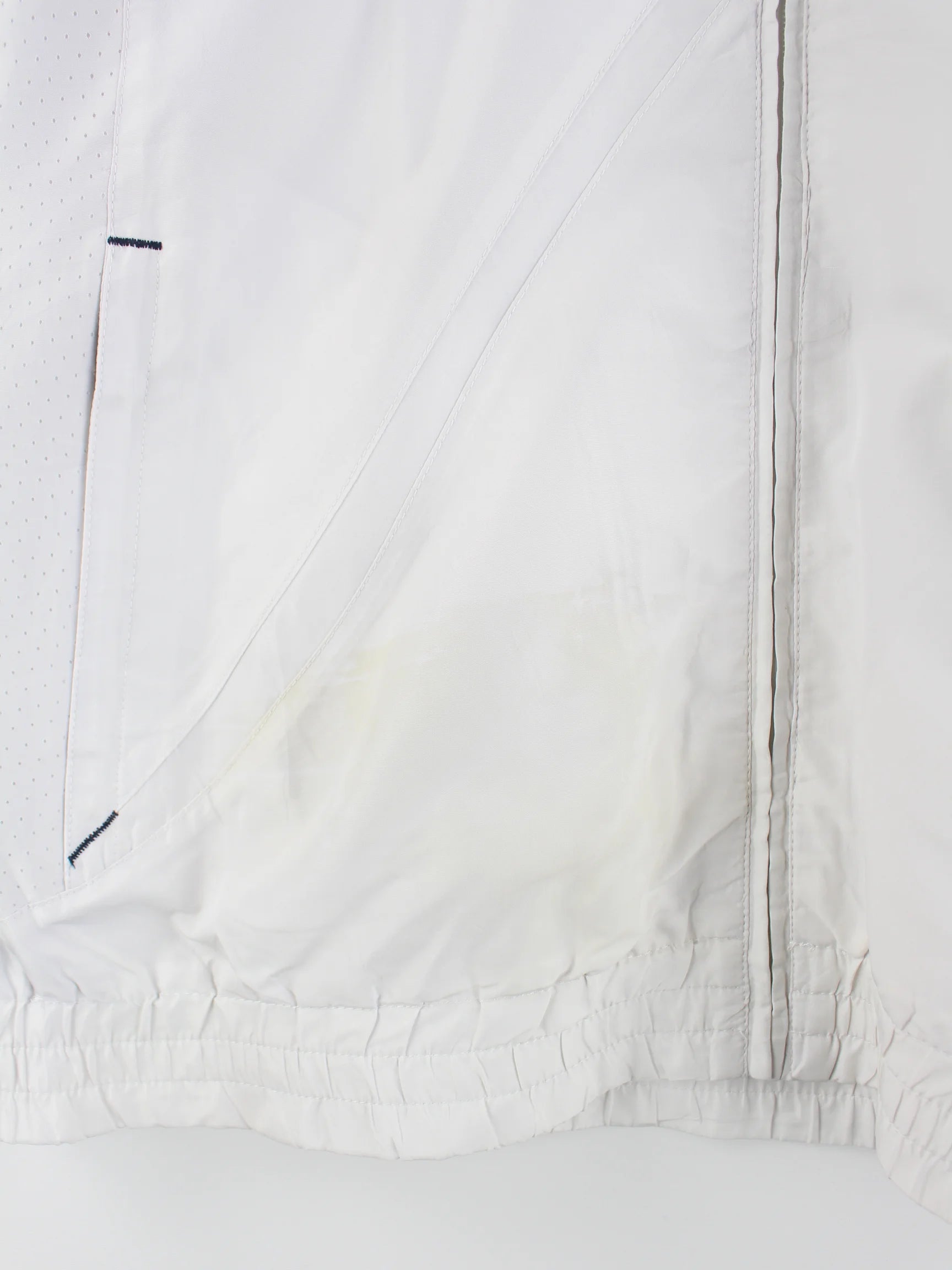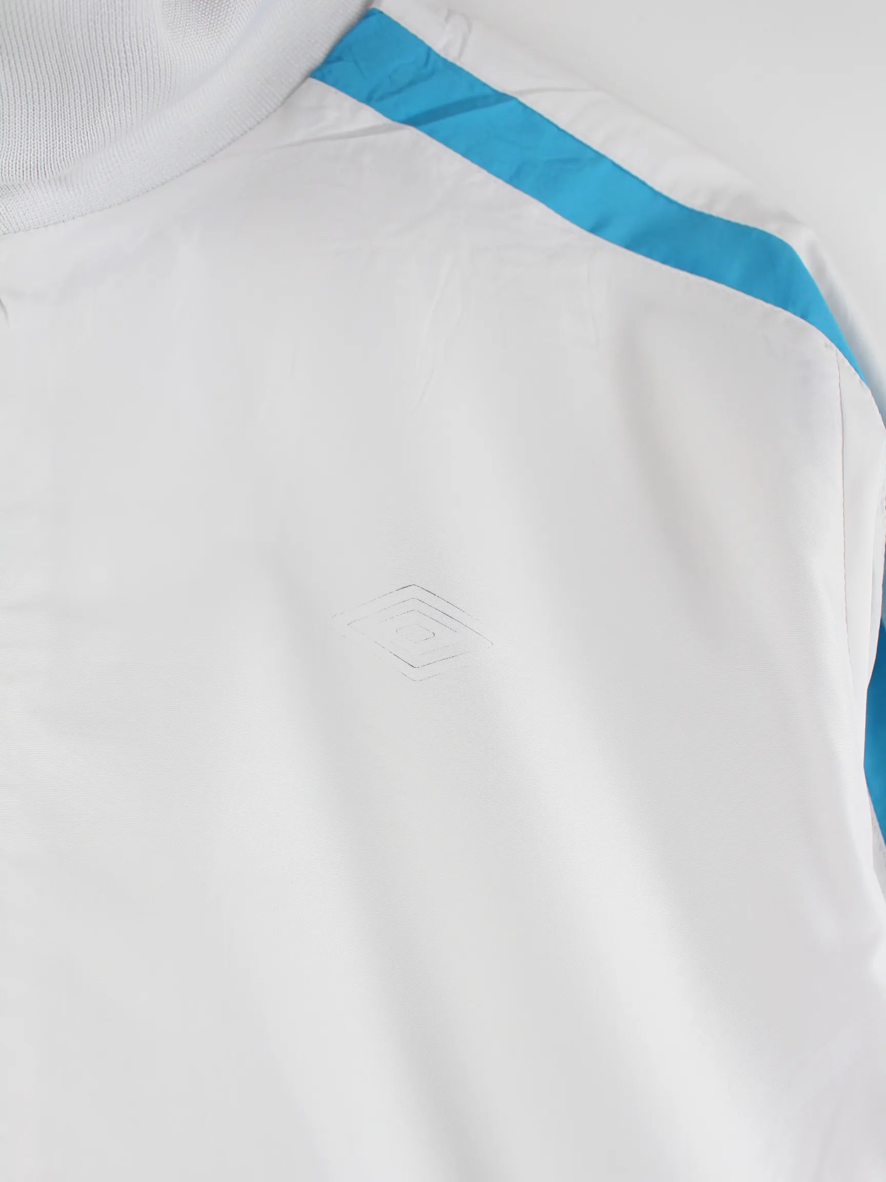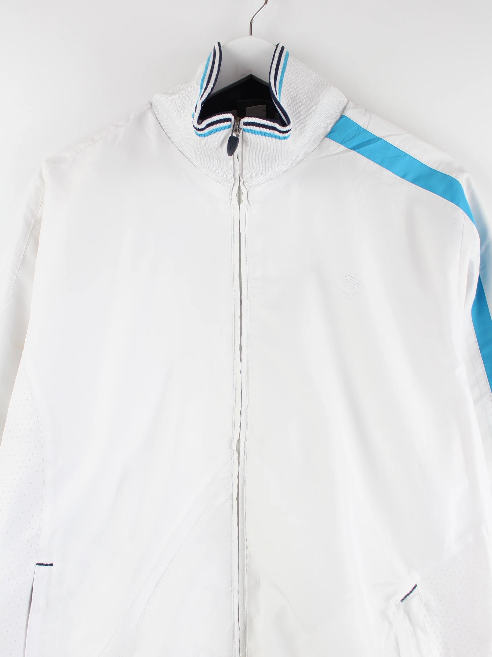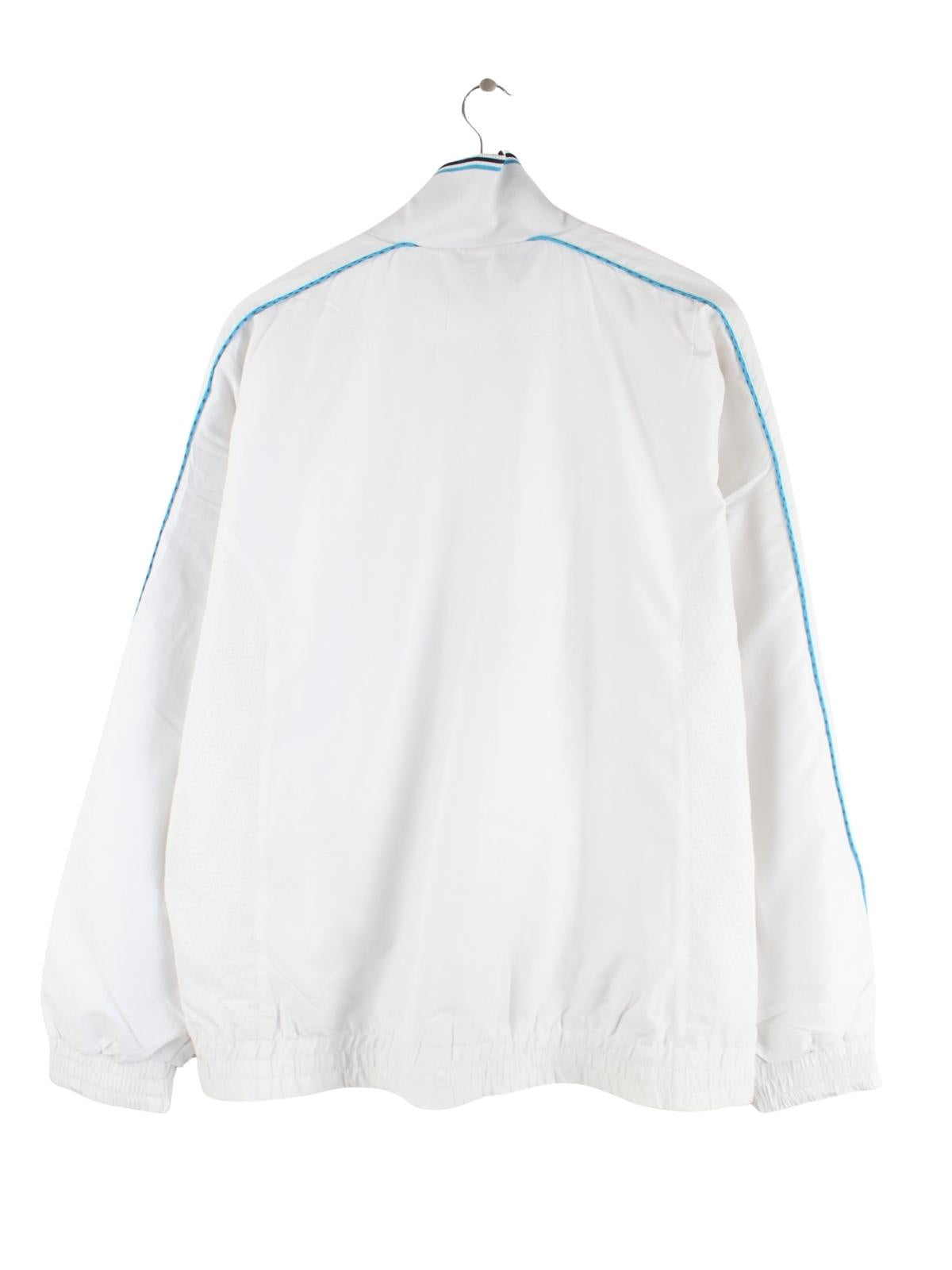 Weiße Trainingsjacke des Labels Umbro in Größe XL. Sie ist aus Synthetik gefertigt. Den Zustand würden wir als 'In Ordnung' bezeichnen (vergl. Bilder).