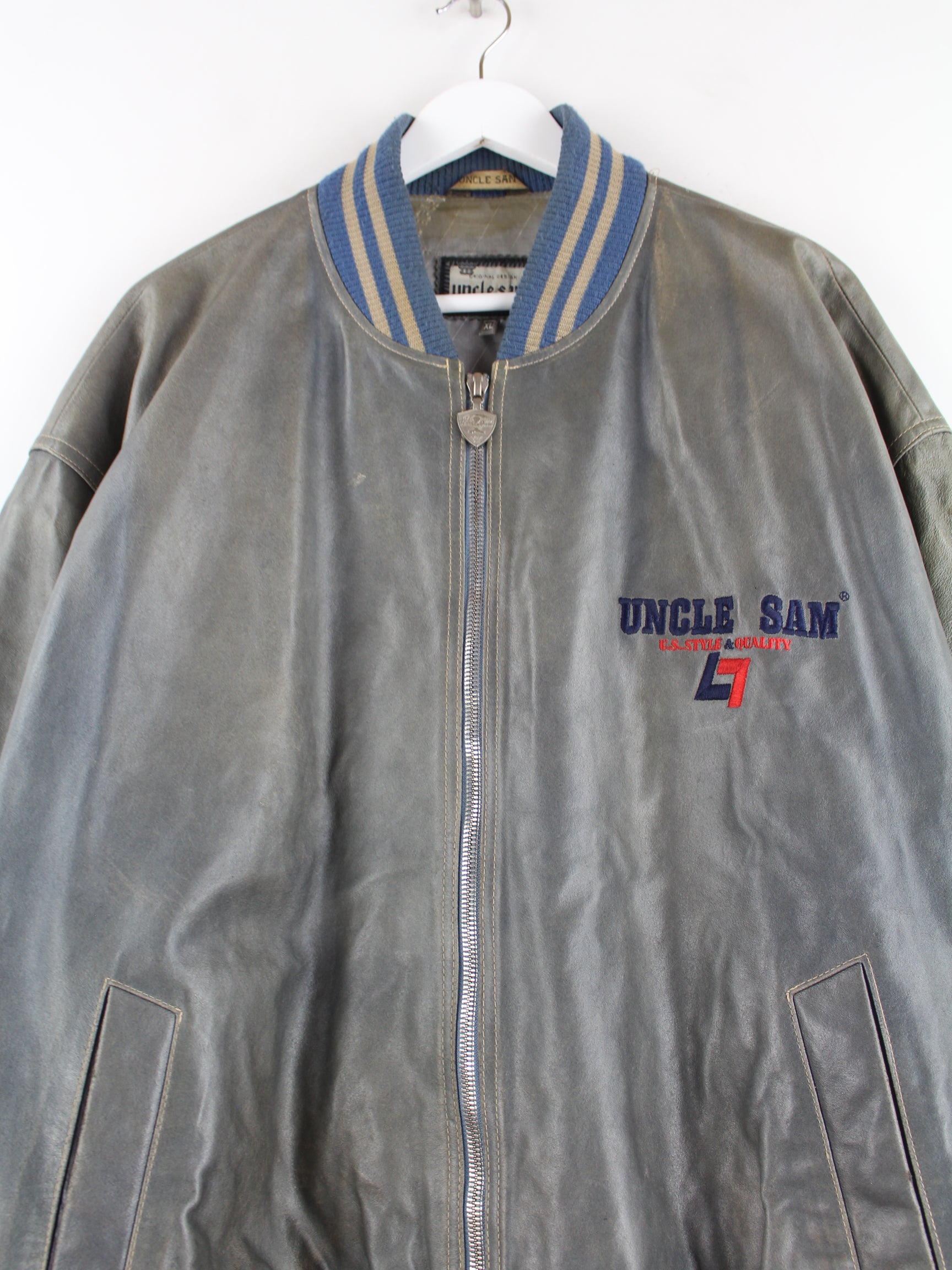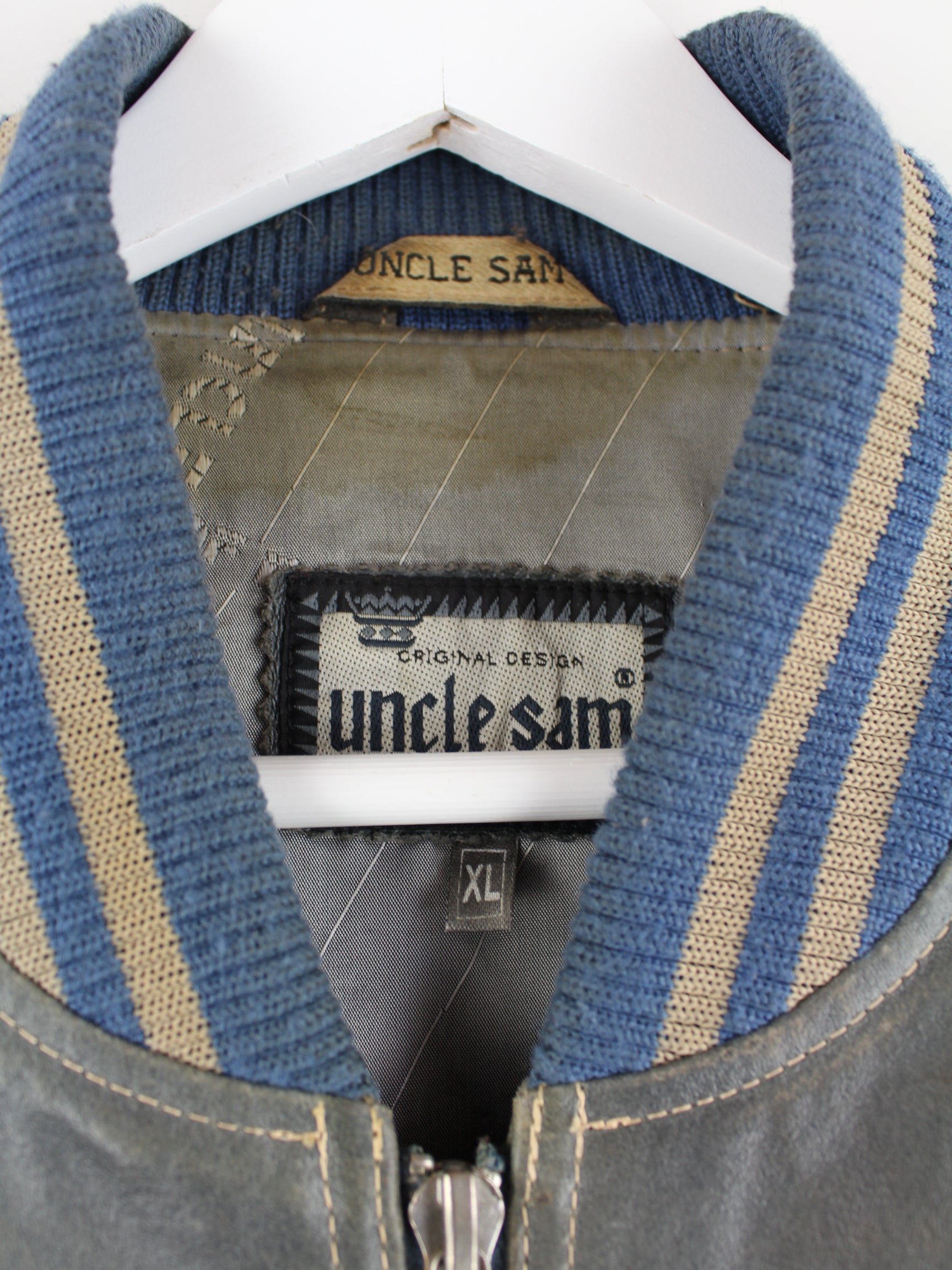 Uncle Sam 90s Vintage Leather College Jacket Green XXL