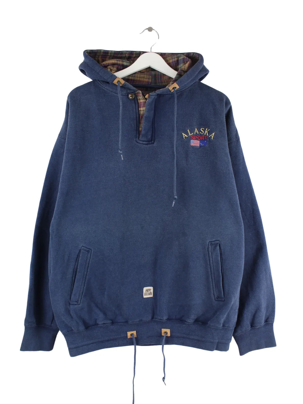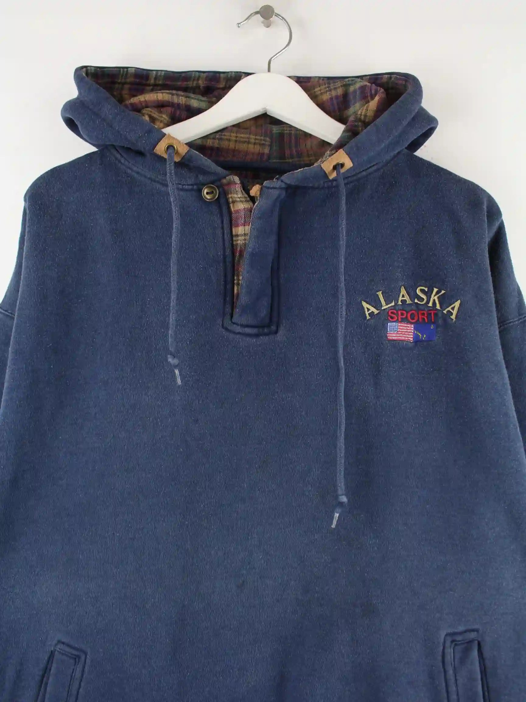 Vintage 00s Alaska Embroidered Half Zip Hoodie Blau L