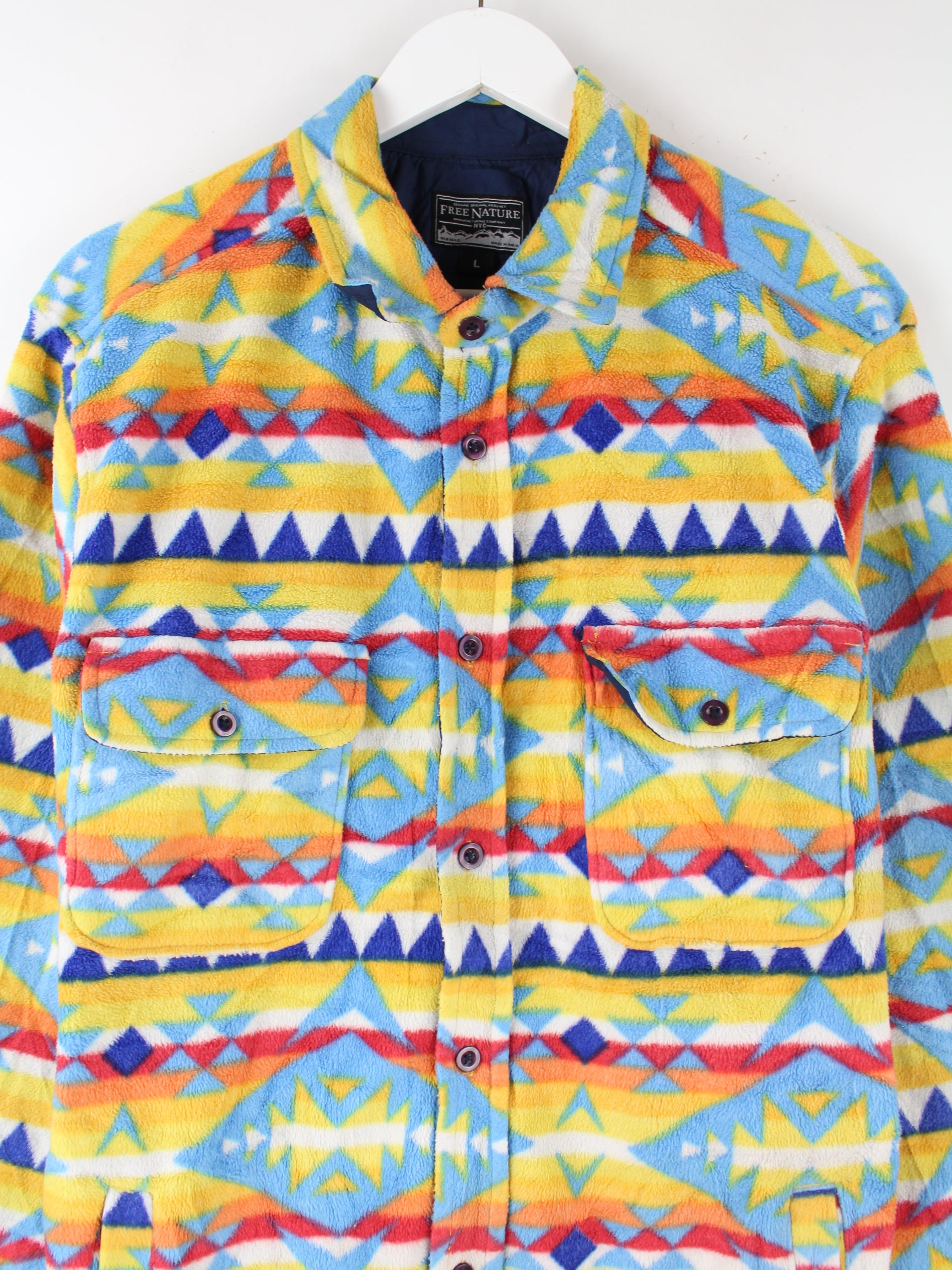 Vintage 00s Crazy Pattern Fleece Hemd Mehrfarbig L
