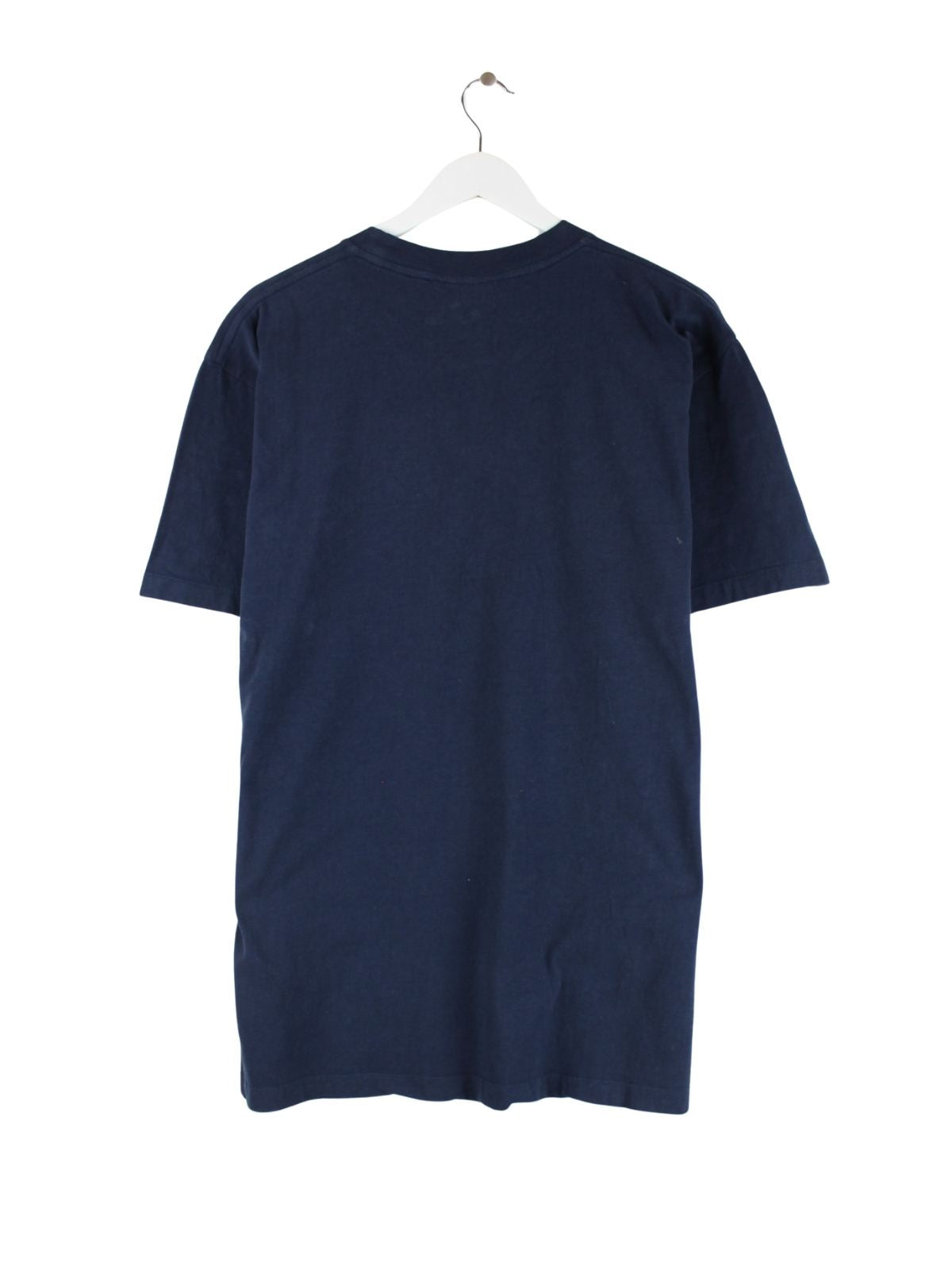 Blaues Vintage T-Shirt in Größe L. Es ist aus Baumwolle angefertigt und in gutem Zustand lieferbar. Mit seltenem Universe Print.