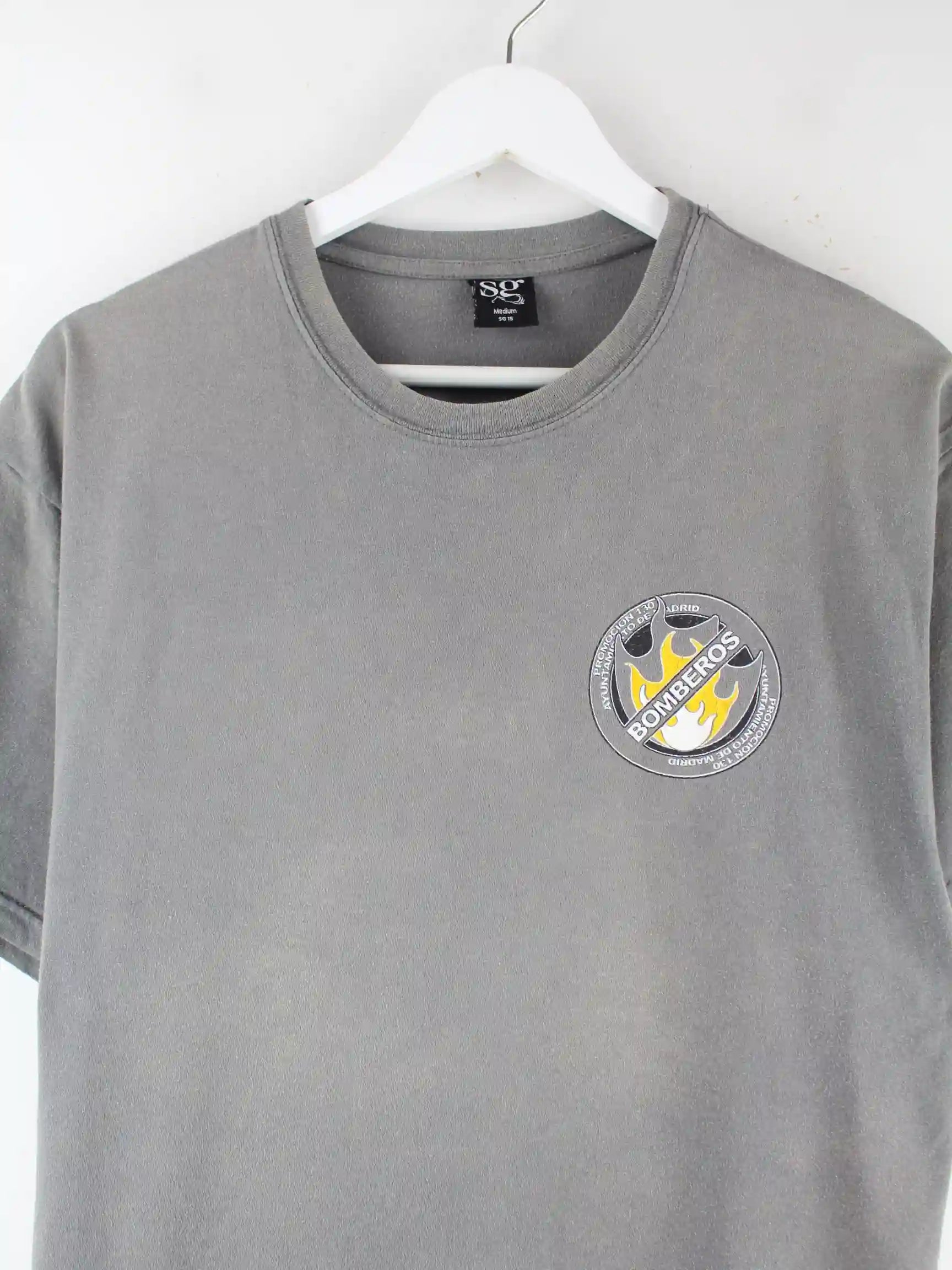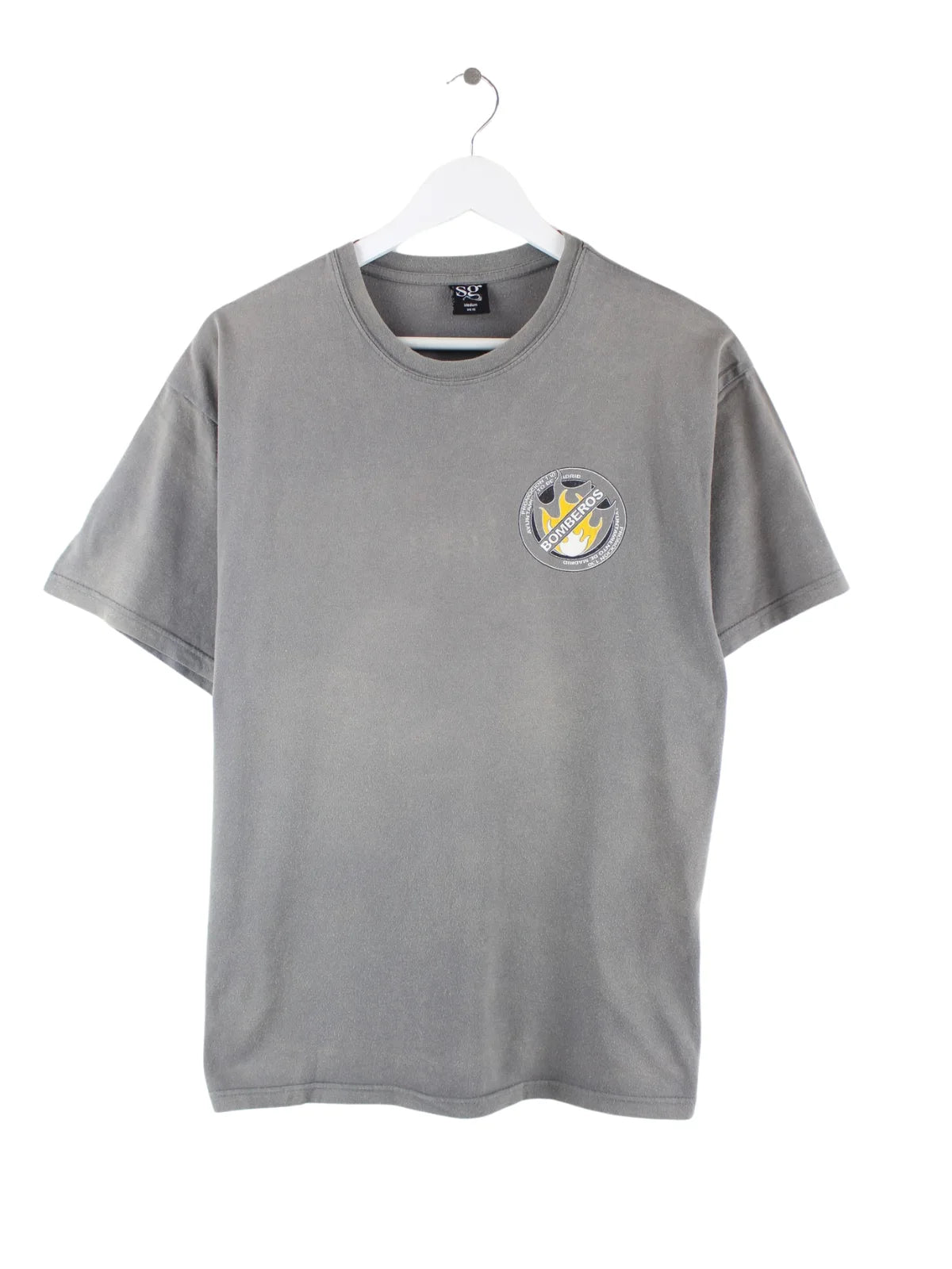 Graues Vintage T-Shirt in Größe M. Es ist aus Baumwolle . Den Zustand würden wir als 'In Ordnung' bezeichnen (vergl. Bilder).Mit seltenem Fire Print.