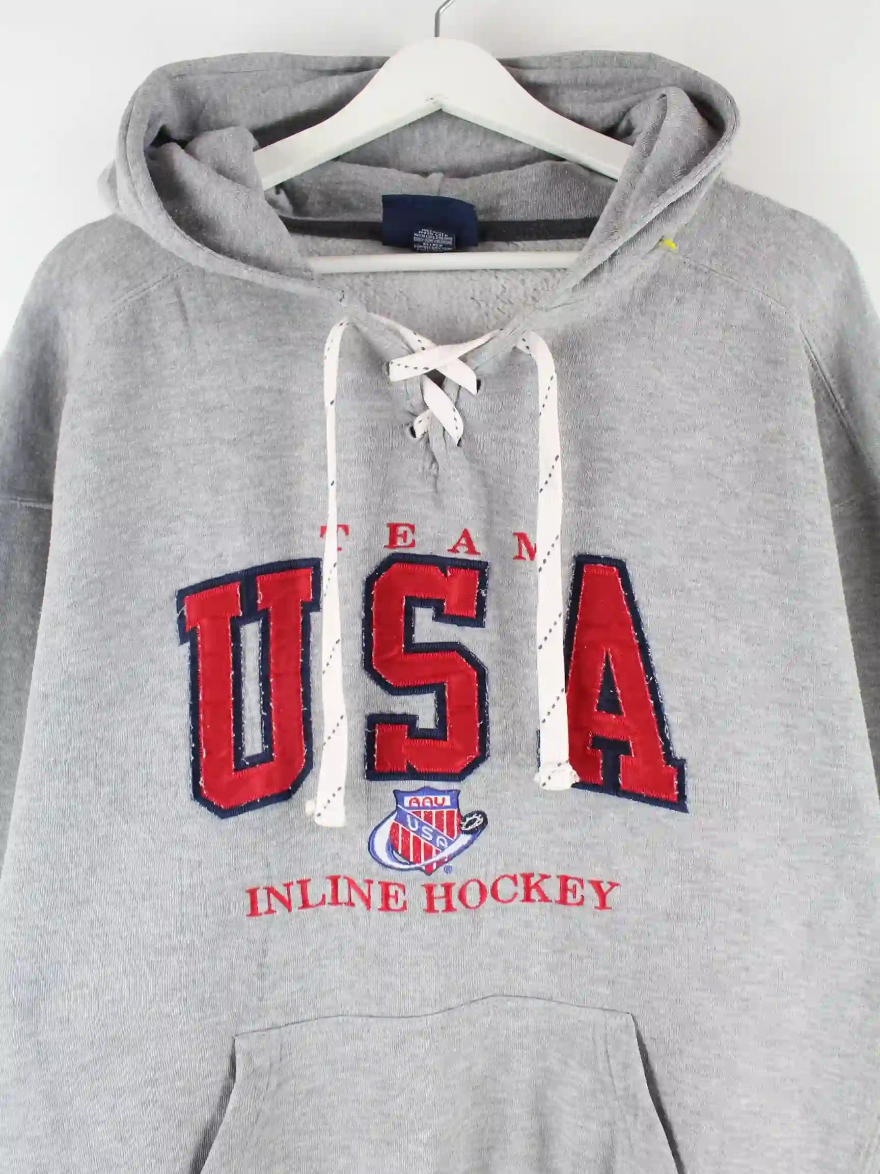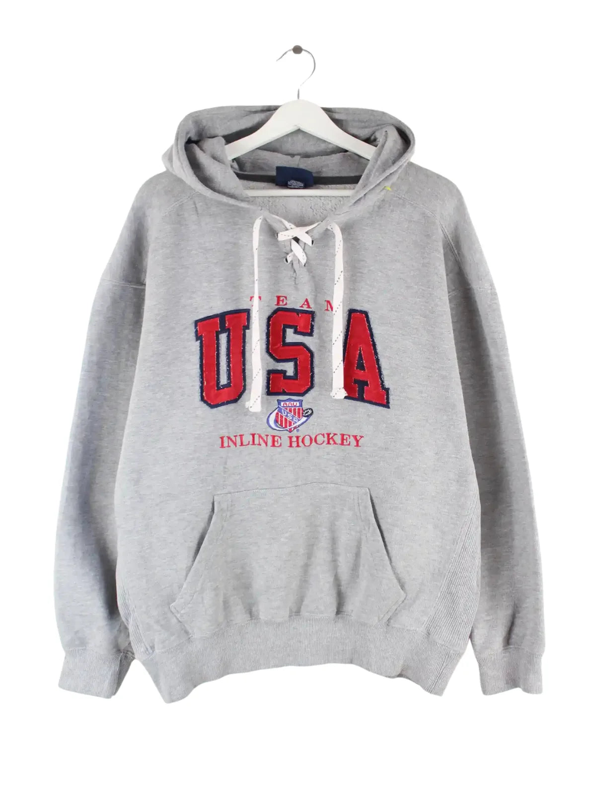 Vintage 00s Inline Hockey USA Embroidered Hoodie Grau M