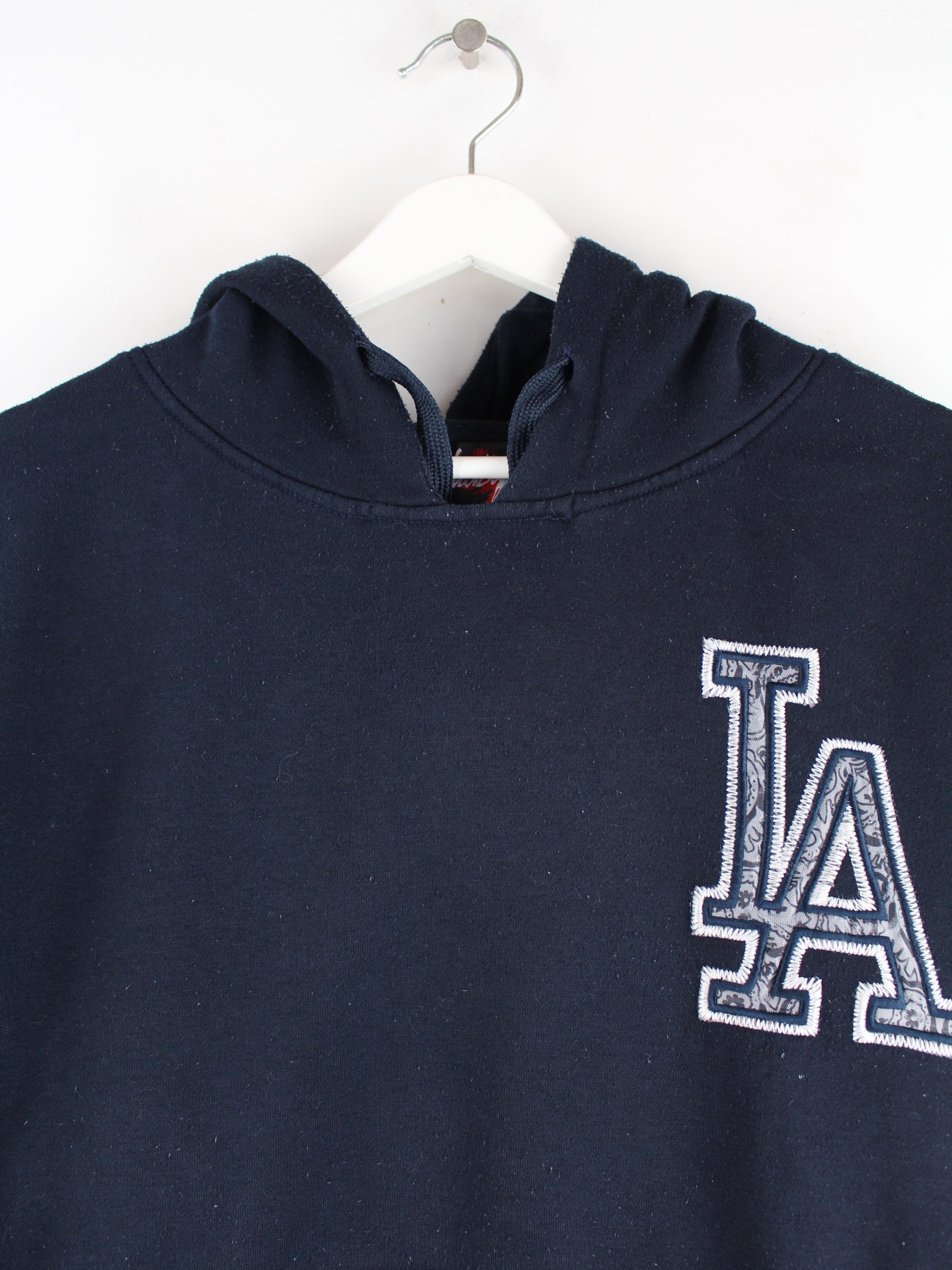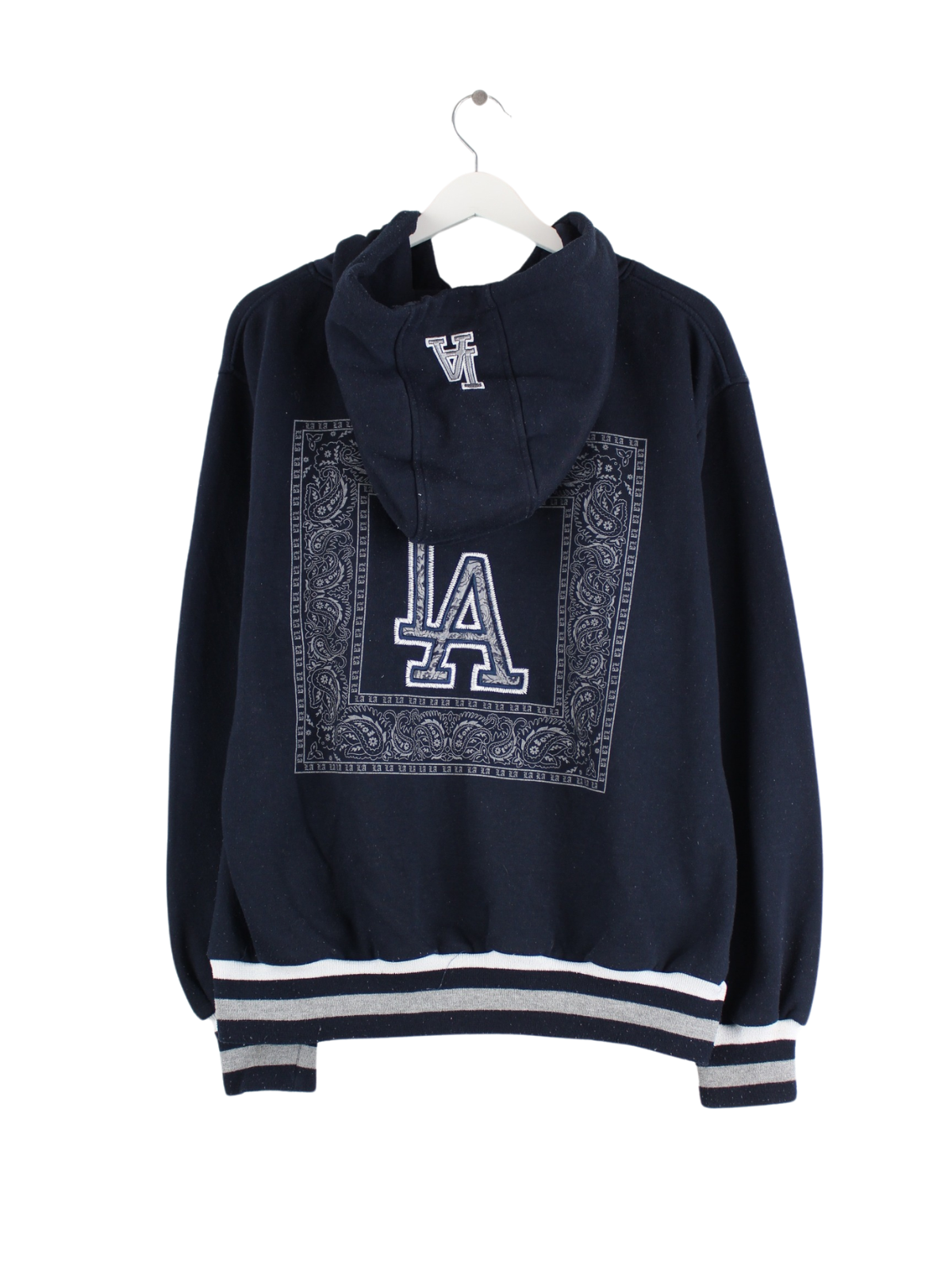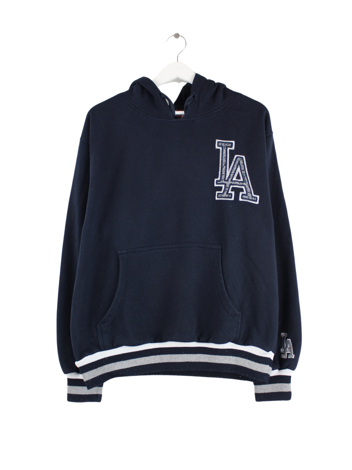 Blue vintage hoodie with embroidery in size M. It is made of a cotton blend and is in good condition.