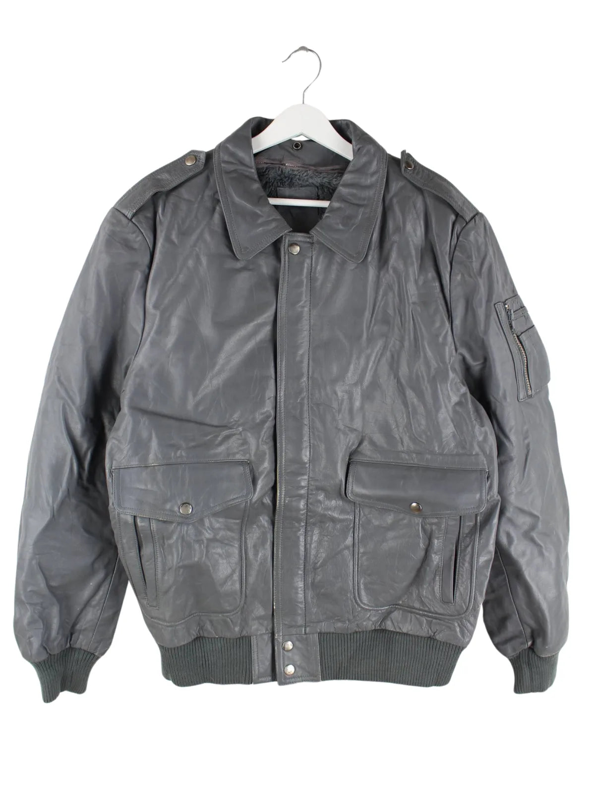 Vintage 00s Leder Bomber Jacke Grau XXL
