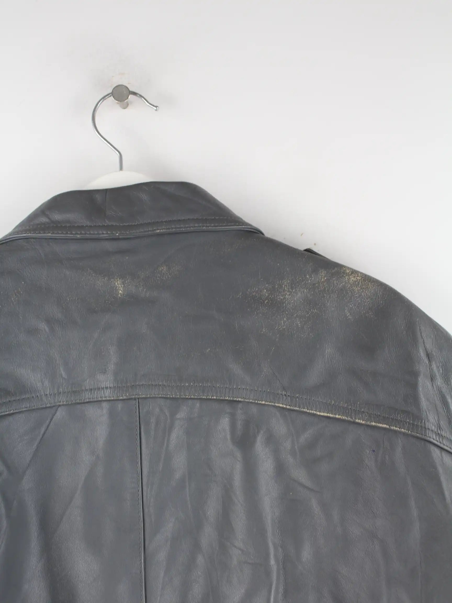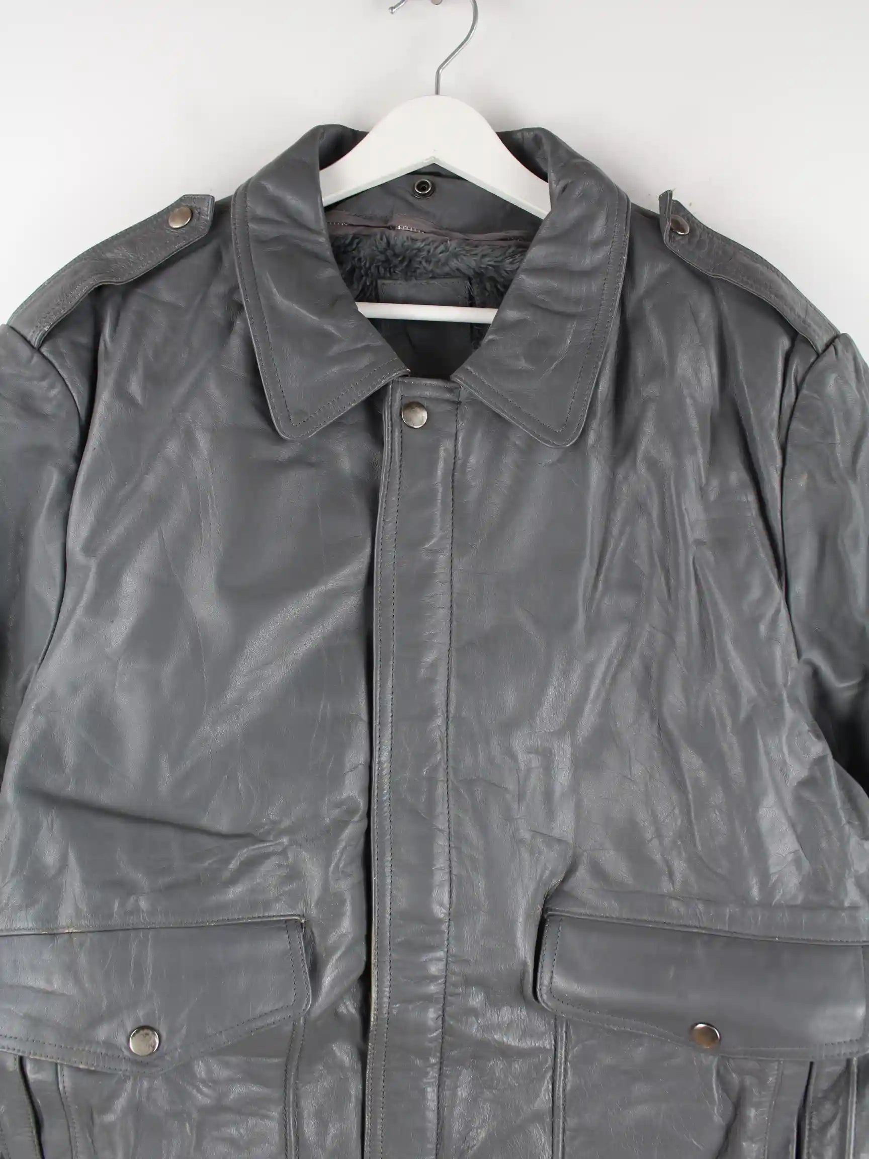 Vintage Jacke in Größe XXL. Sie ist aus Leder hergestellt und in Grau bei uns vorrätig.
