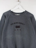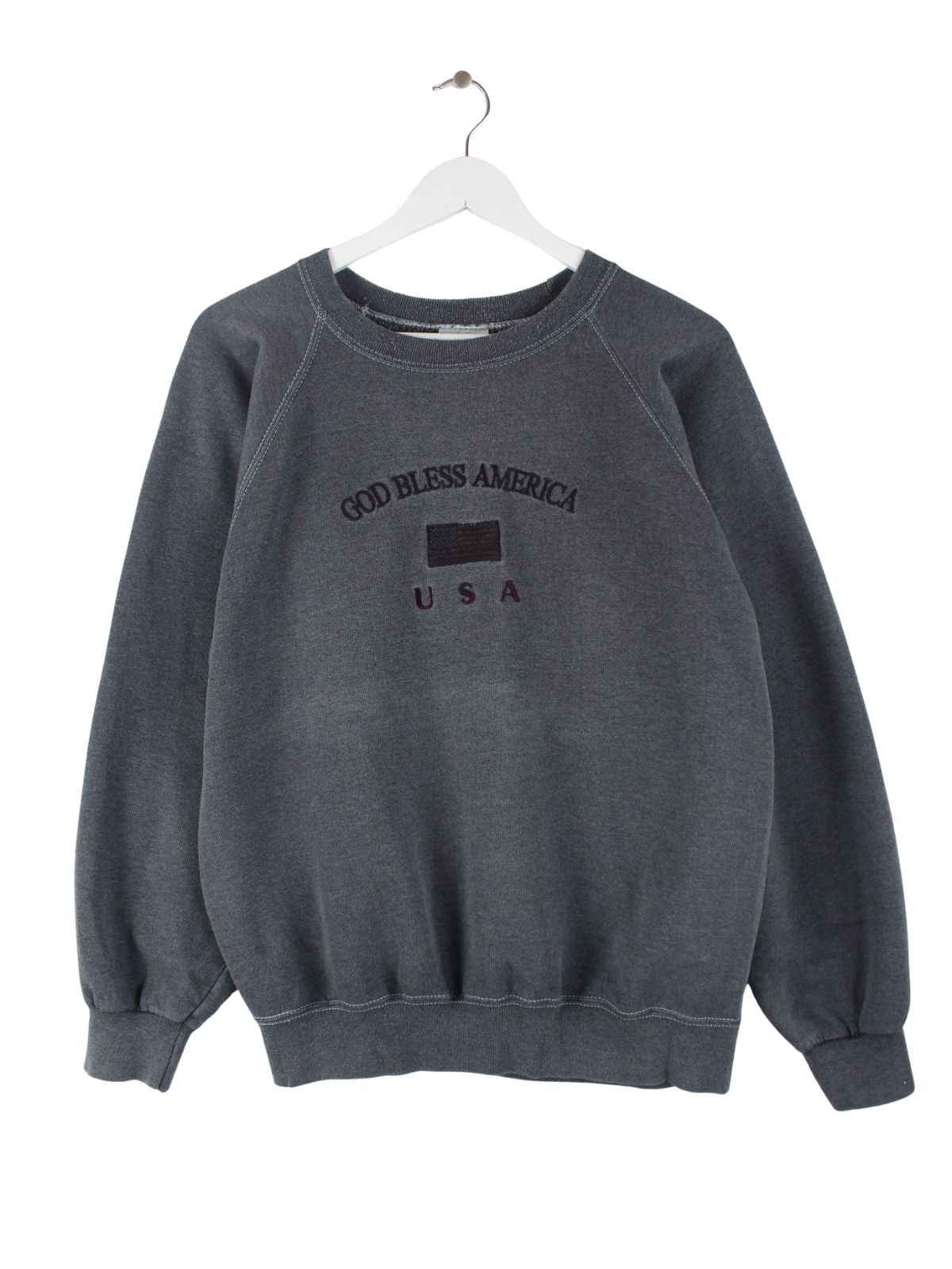 Grauer Vintage Sweater in Größe M. Er ist aus einer Baumwollmischung gemacht und in sehr gutem Zustand bei uns vorrätig.