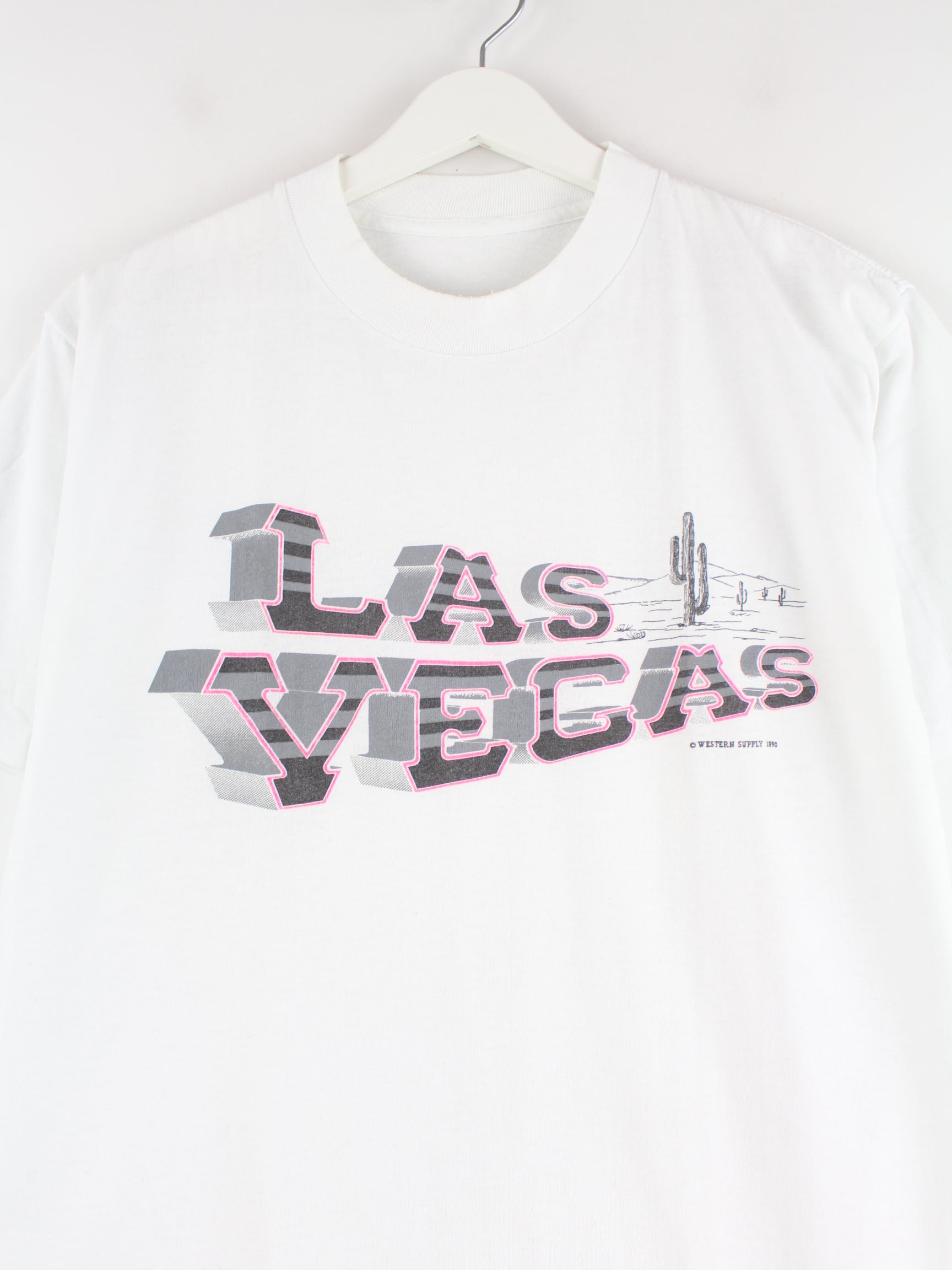 Vintage 1990 Las Vegas Print Single Stitch T-Shirt White L