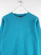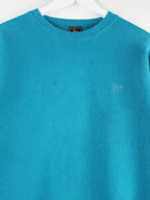 Vintage Sweater in Größe M. Er ist aus einer Baumwollmischung angefertigt und in Türkis lieferbar.