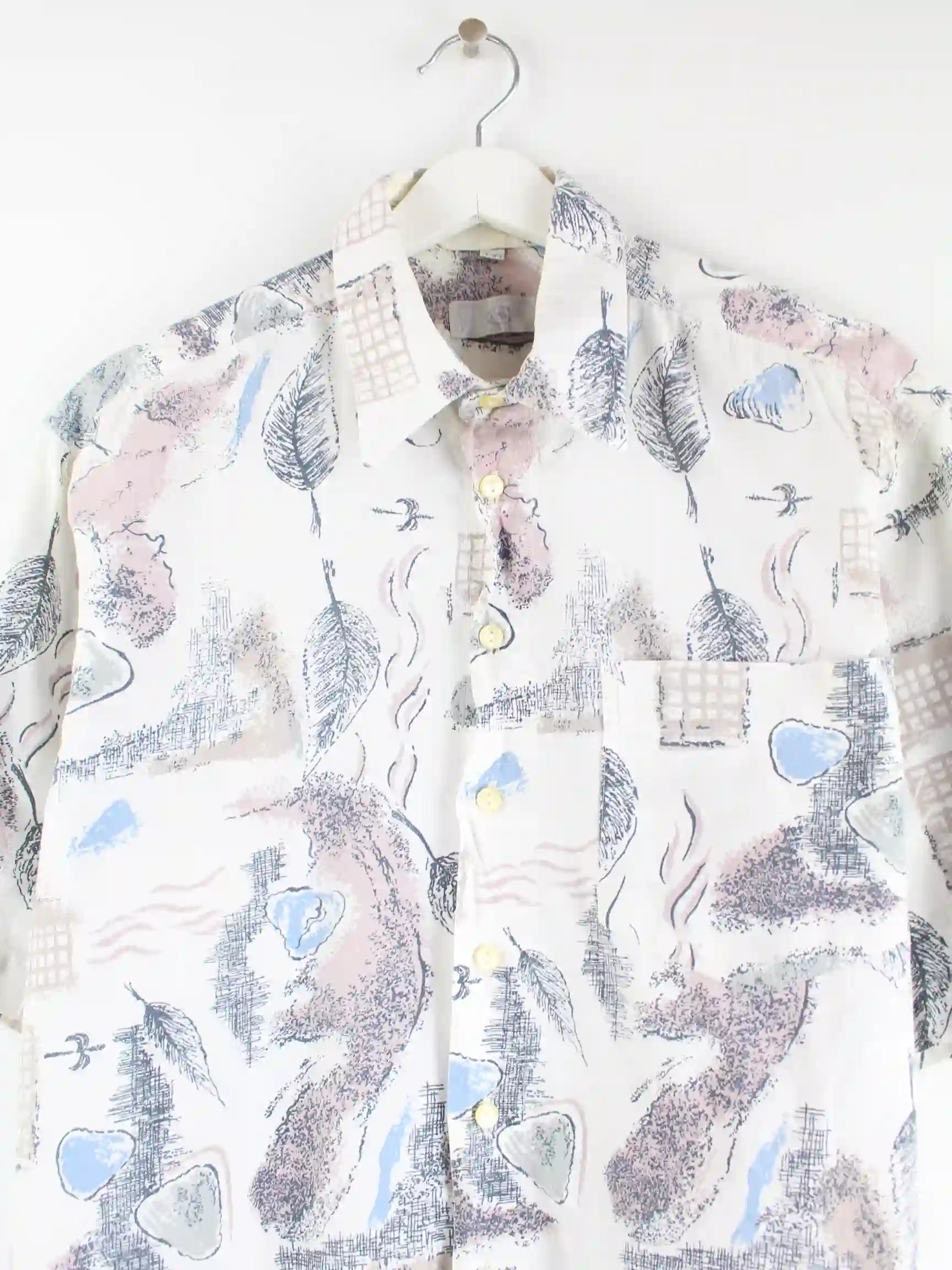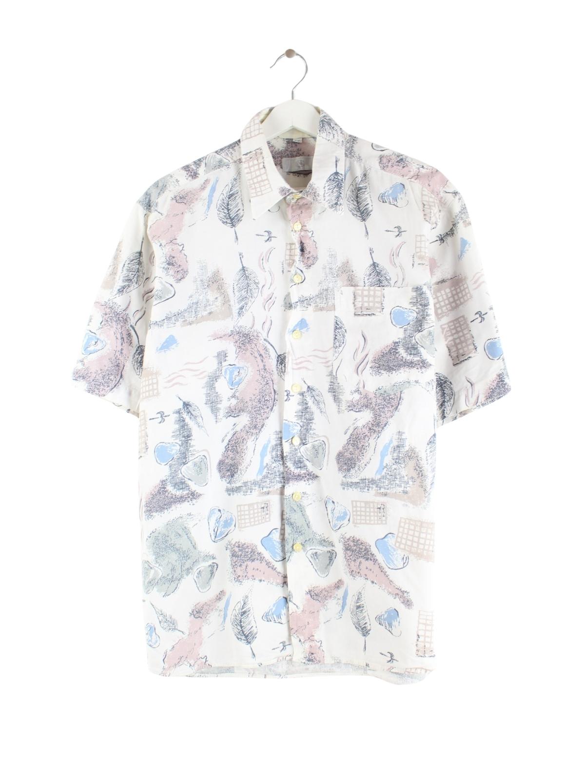 Vintage 80s C&A Crazy Pattern Kurzarm Hemd Weiß L