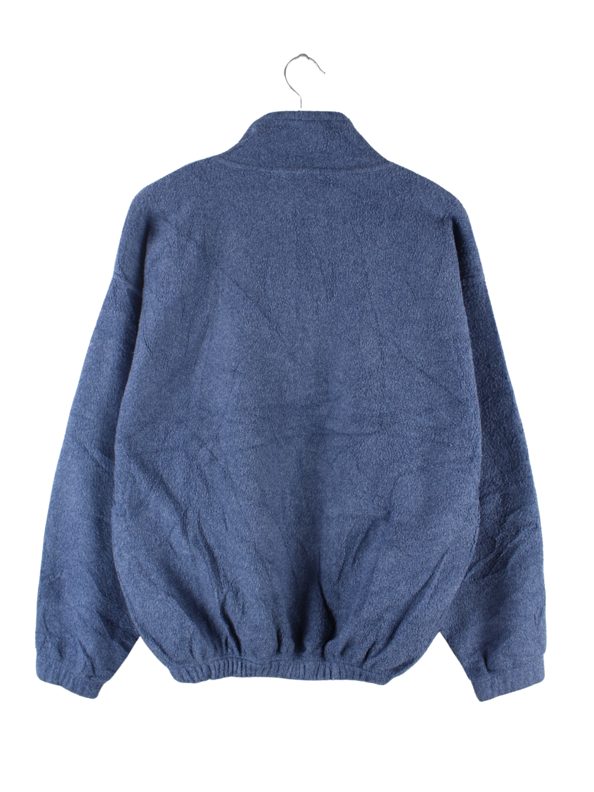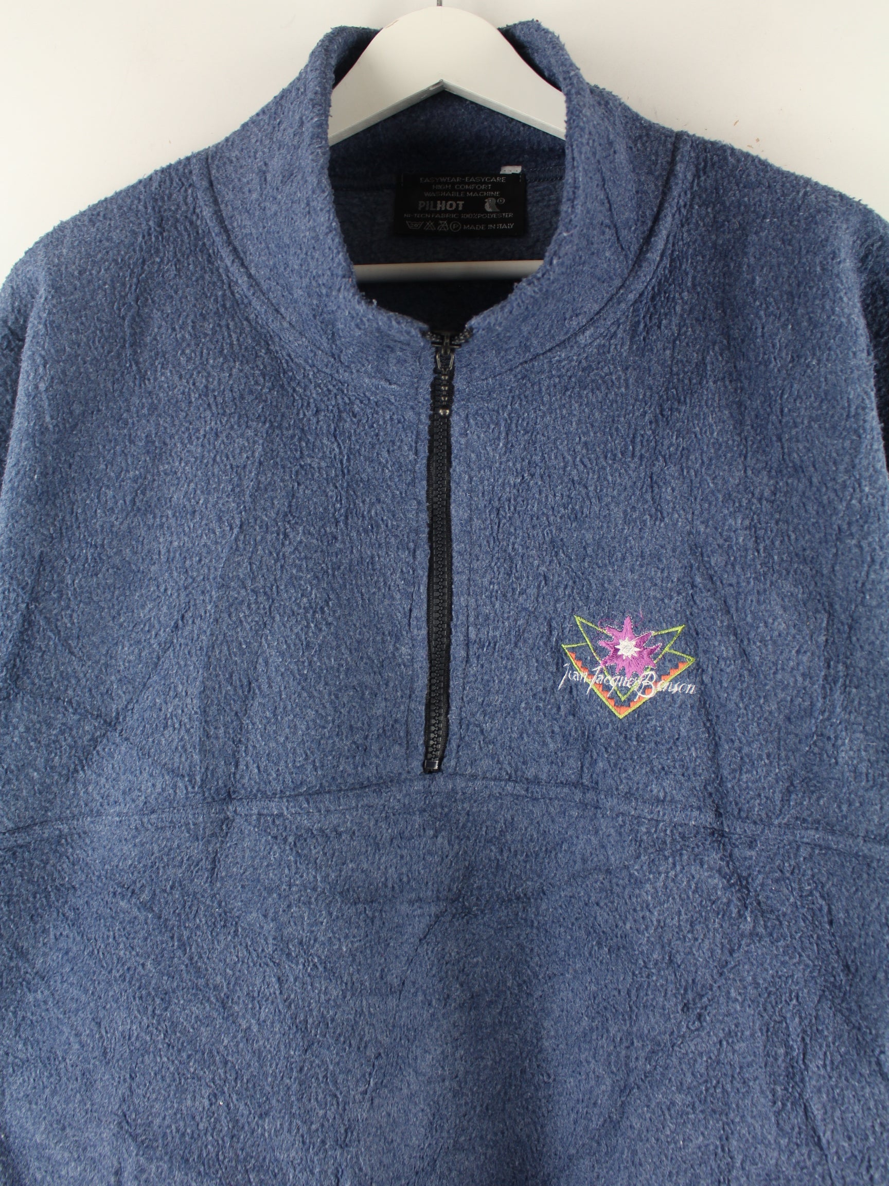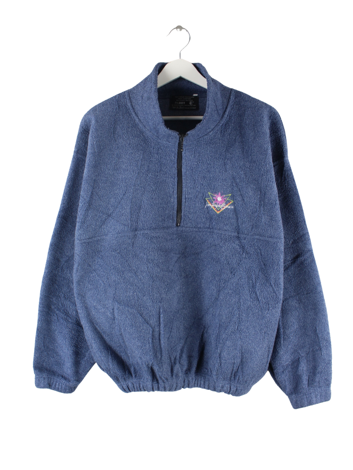 Vintage 80s Embroidered Half Zip Fleece Sweater Blau L