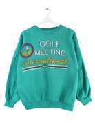 Vintage Sweater in Größe S aus den 80'ern. Er ist aus einer Baumwollmischung produziert und in Grün bei uns zu bekommen. Mit seltenem Golf Print.