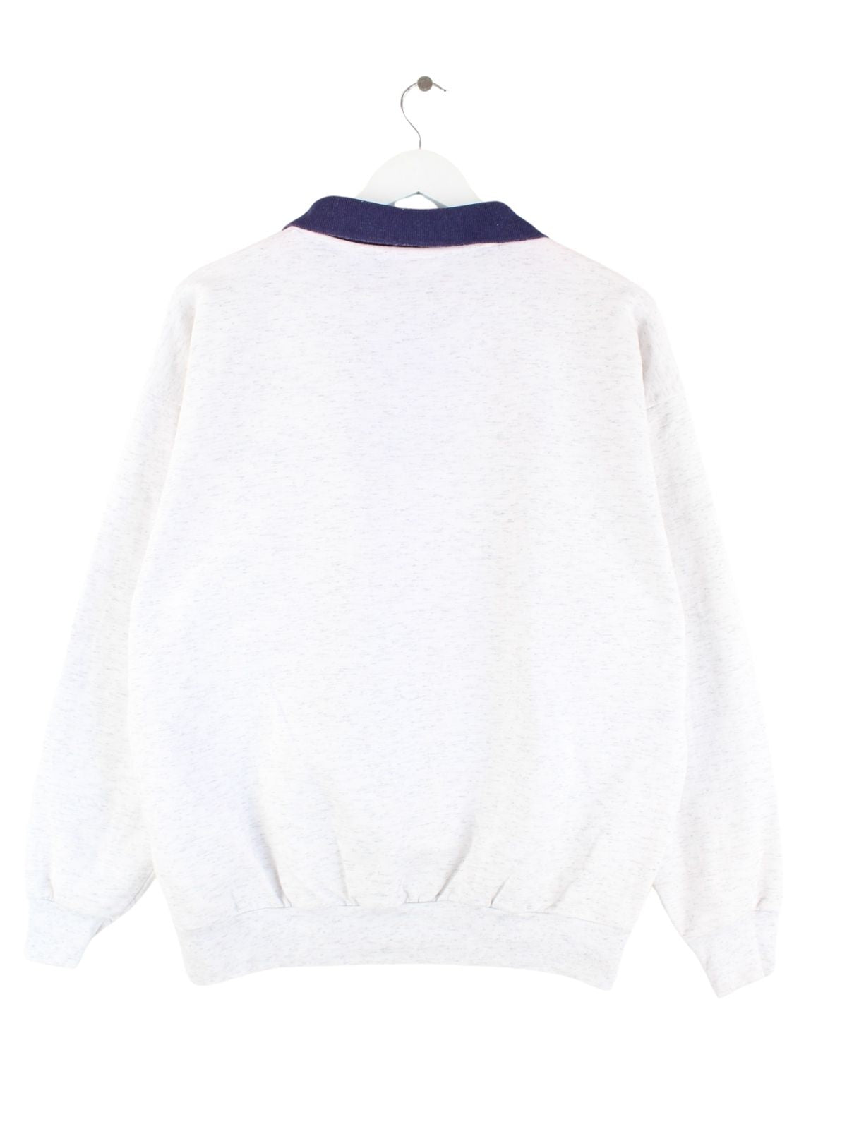 Grauer Vintage Sweater mit Stick aus den 80'ern in Größe L. Er ist aus einer Baumwollmischung angefertigt und in sehr gutem Zustand zu haben.