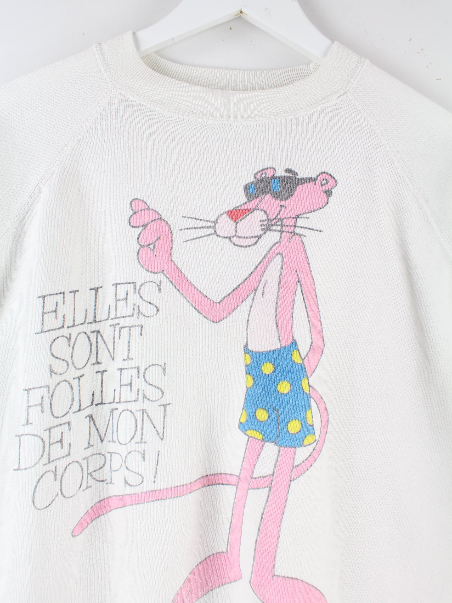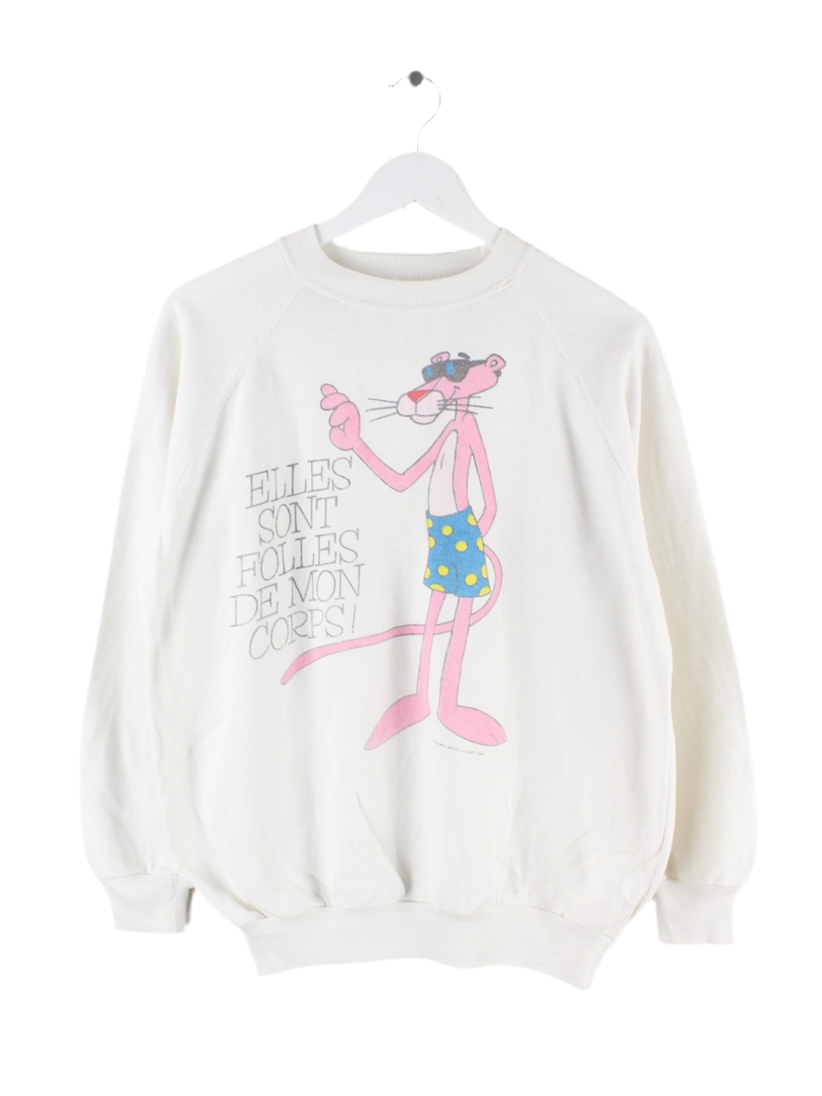 Vintage 80s Pink Panther Print Sweater Weiß S
