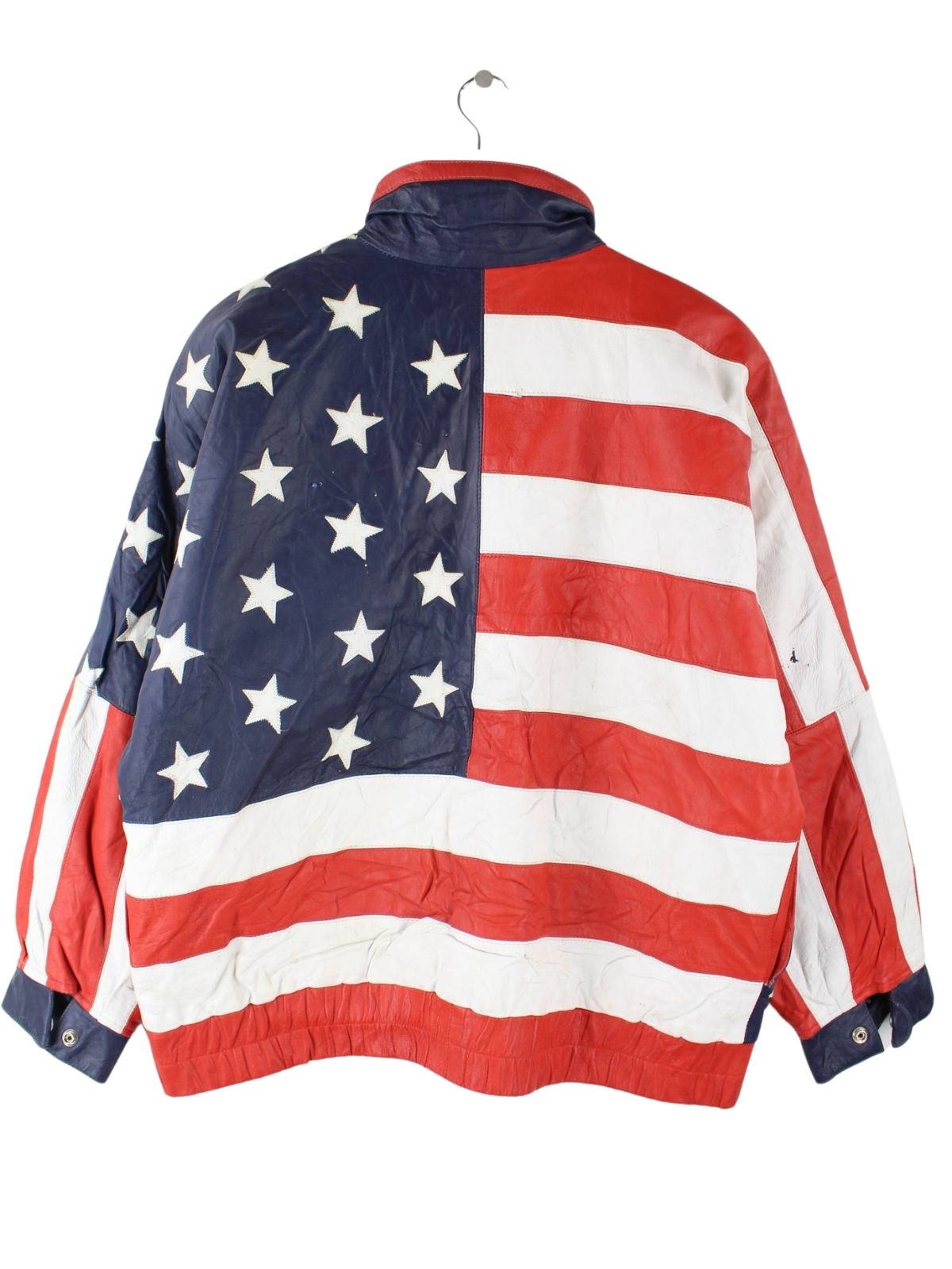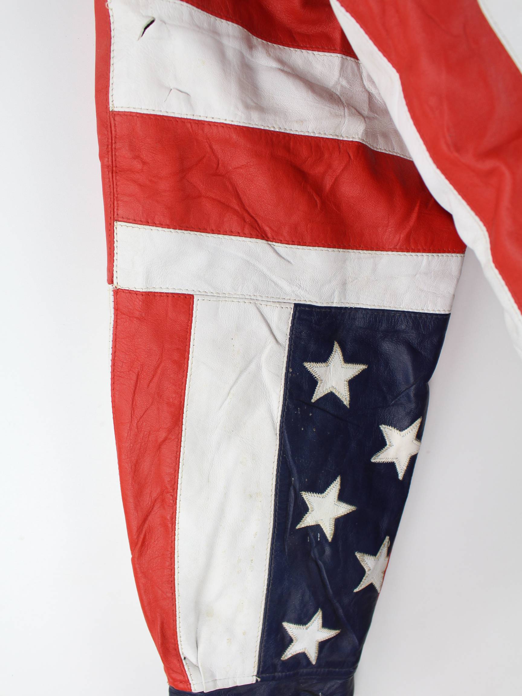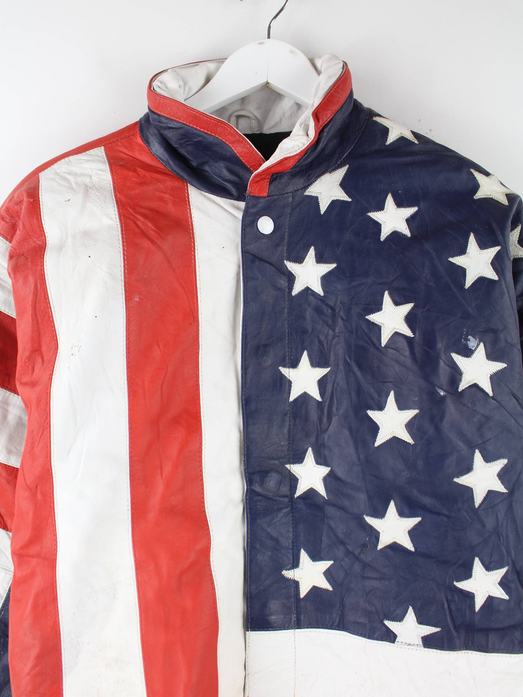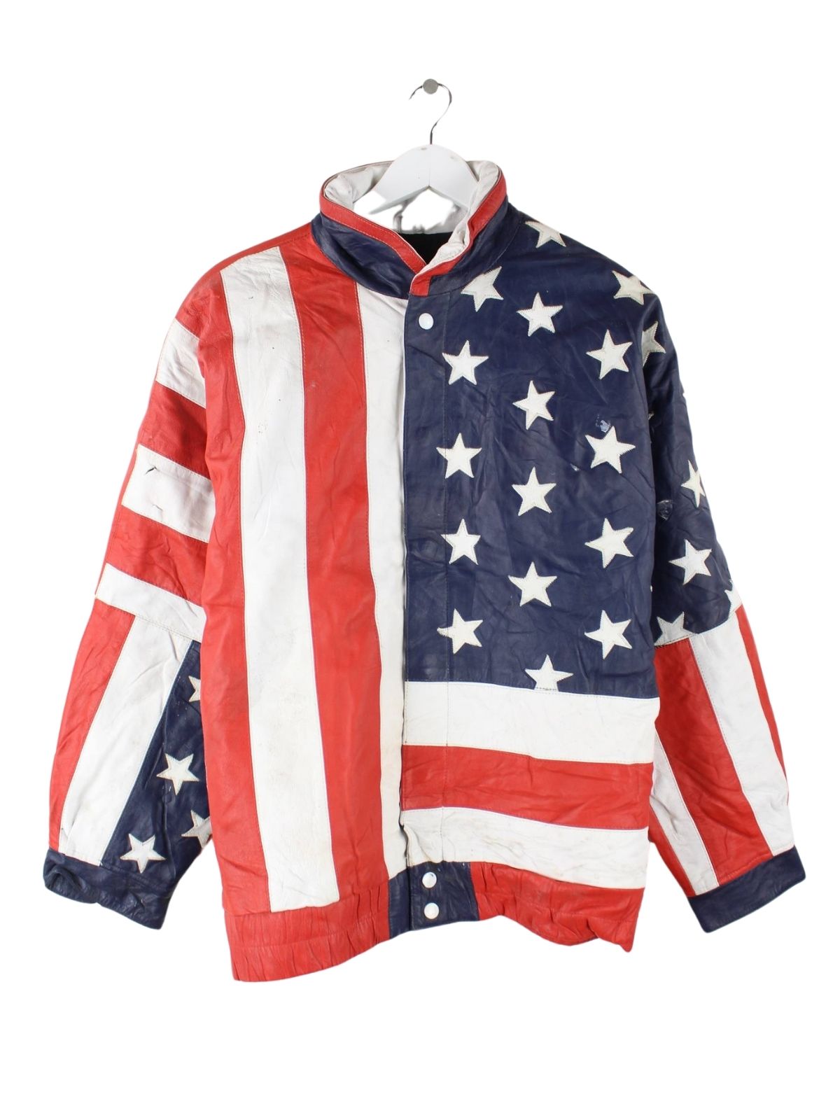 Vintage 80s USA Flag Pattern Leder Jacke Mehrfarbig M