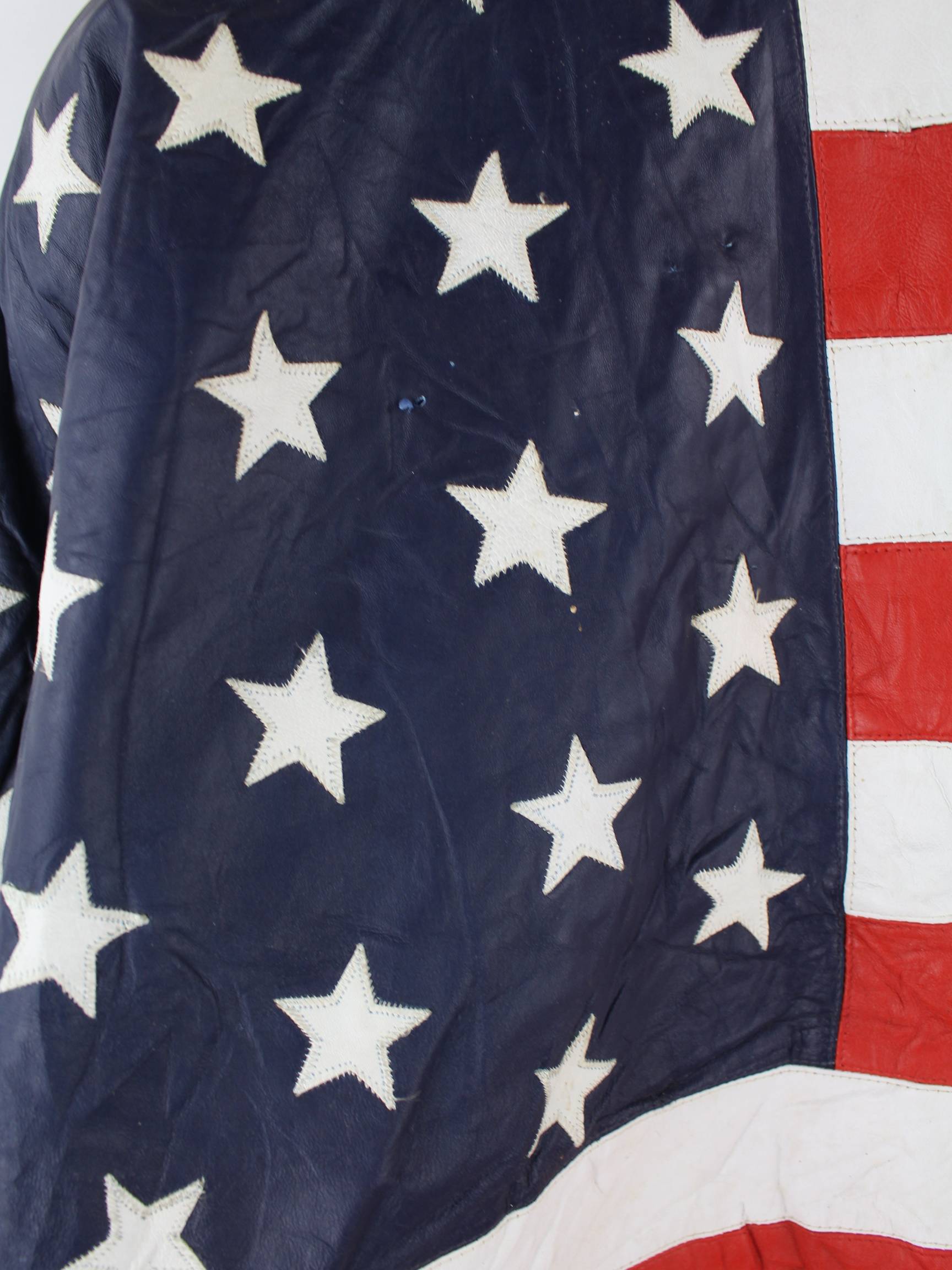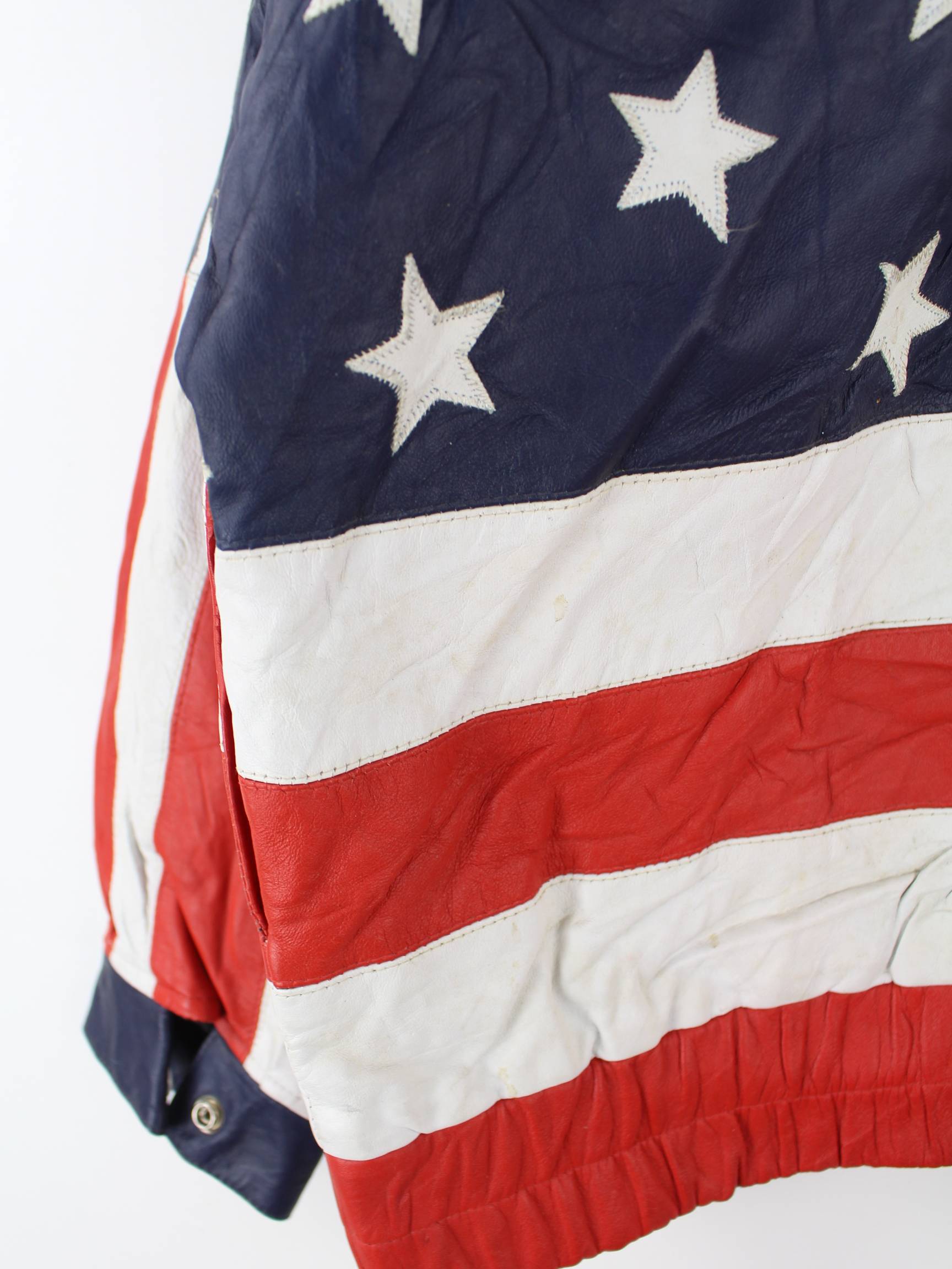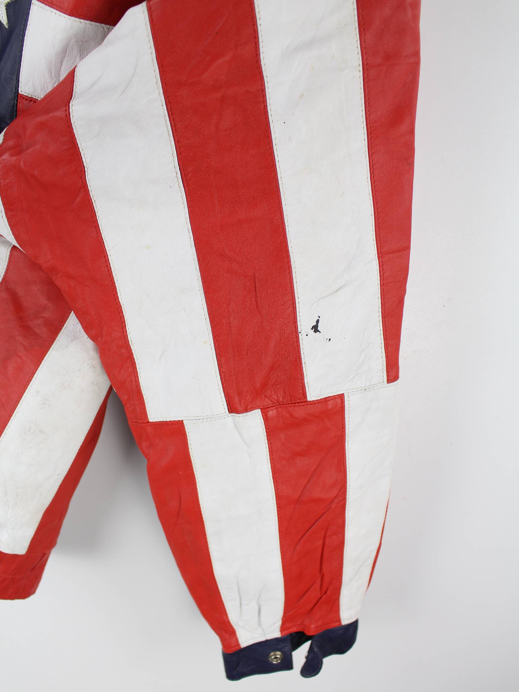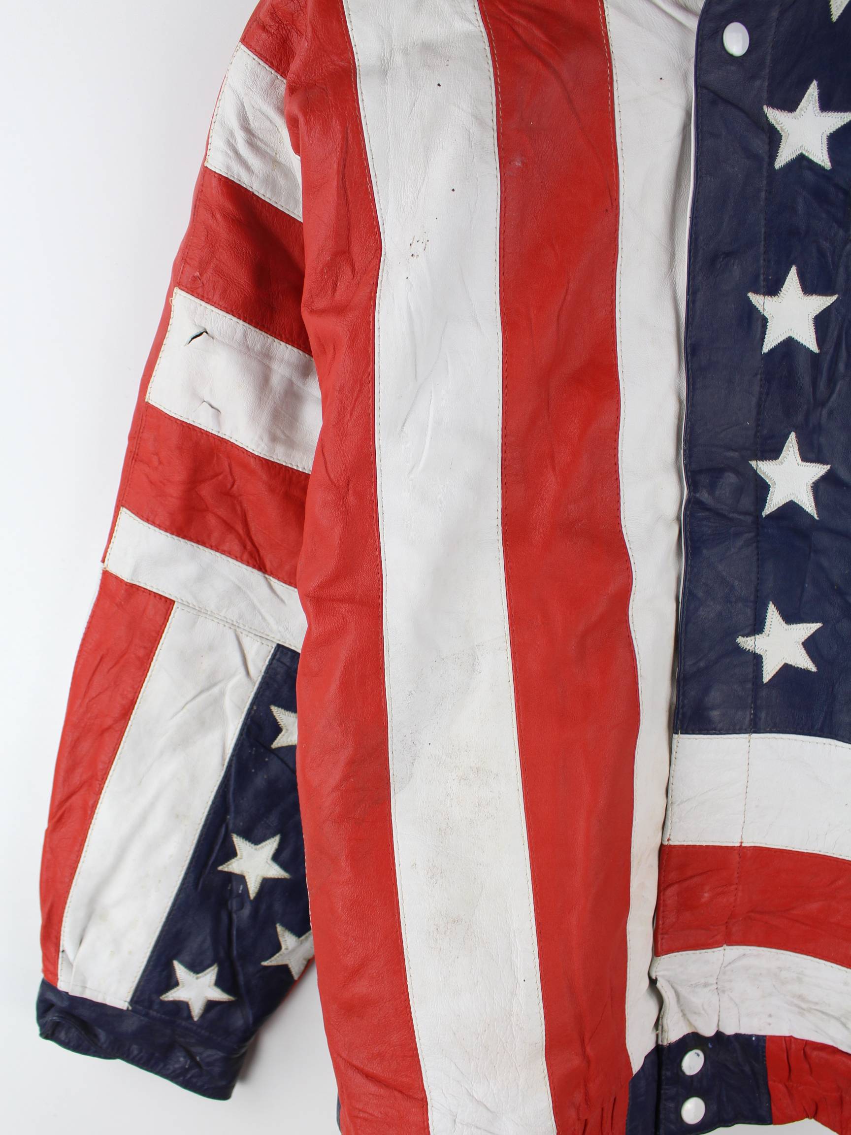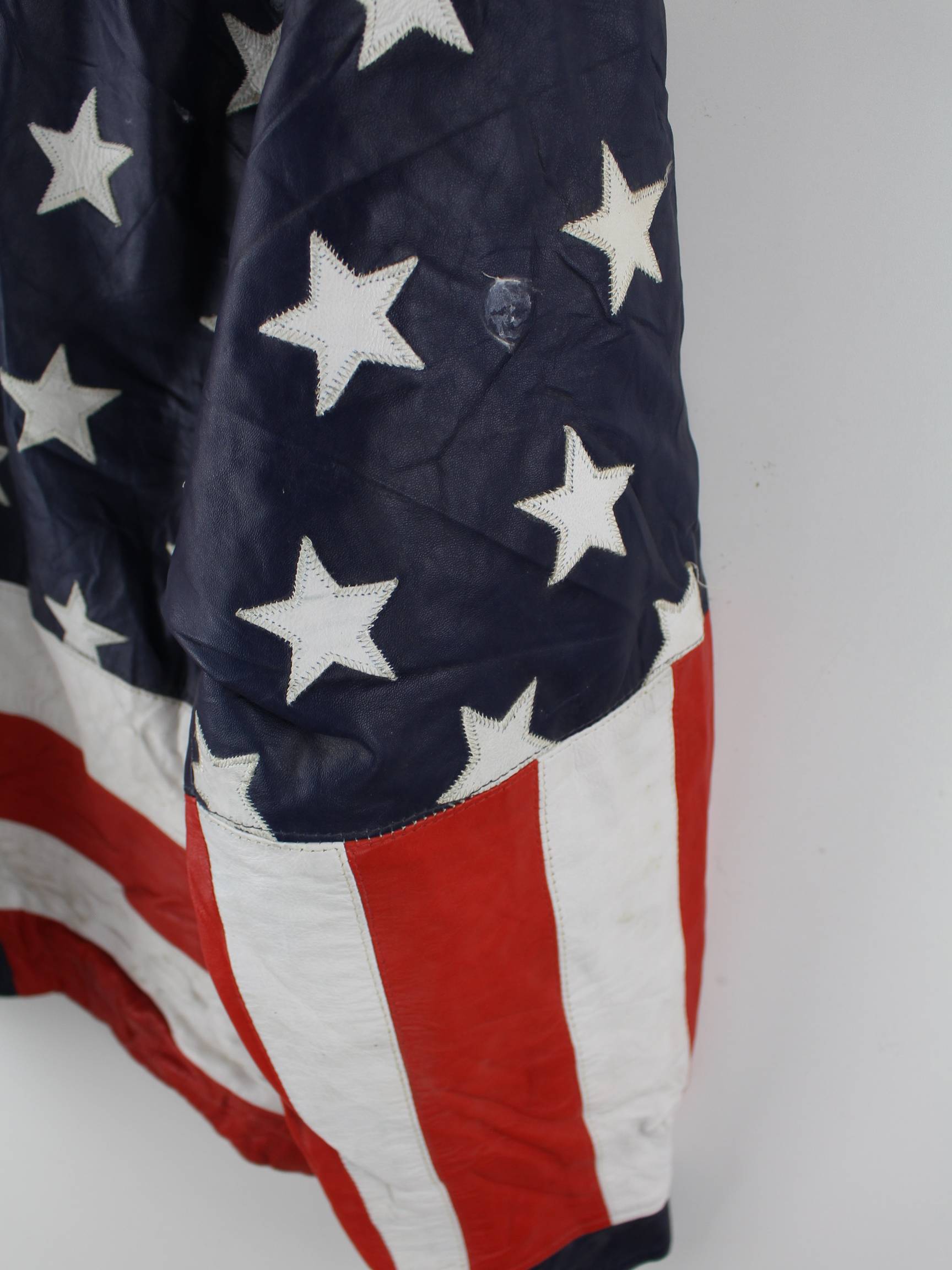 Vintage 80s USA Flag Pattern Leder Jacke Mehrfarbig M