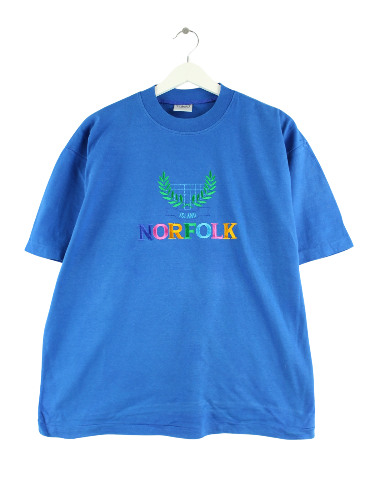 Vintage 80s Vintage Norfolk Embroidered Single Stitch T-Shirt Blue S