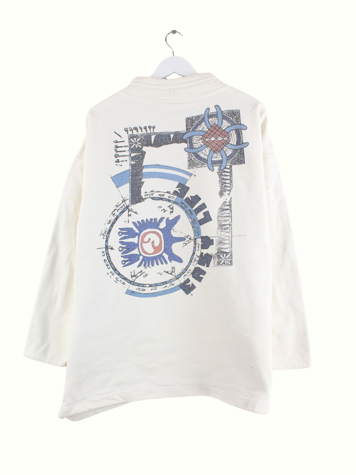 Vintage sweater in size XL from the 80's. It is made of a cotton blend and is available in white. With a chic vintage print.