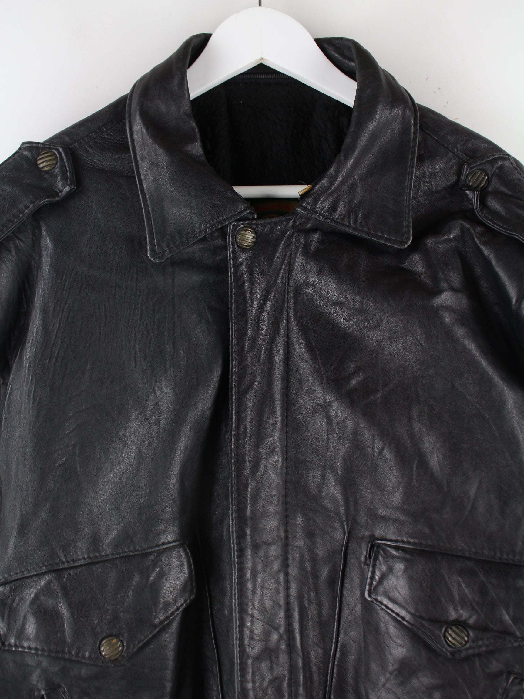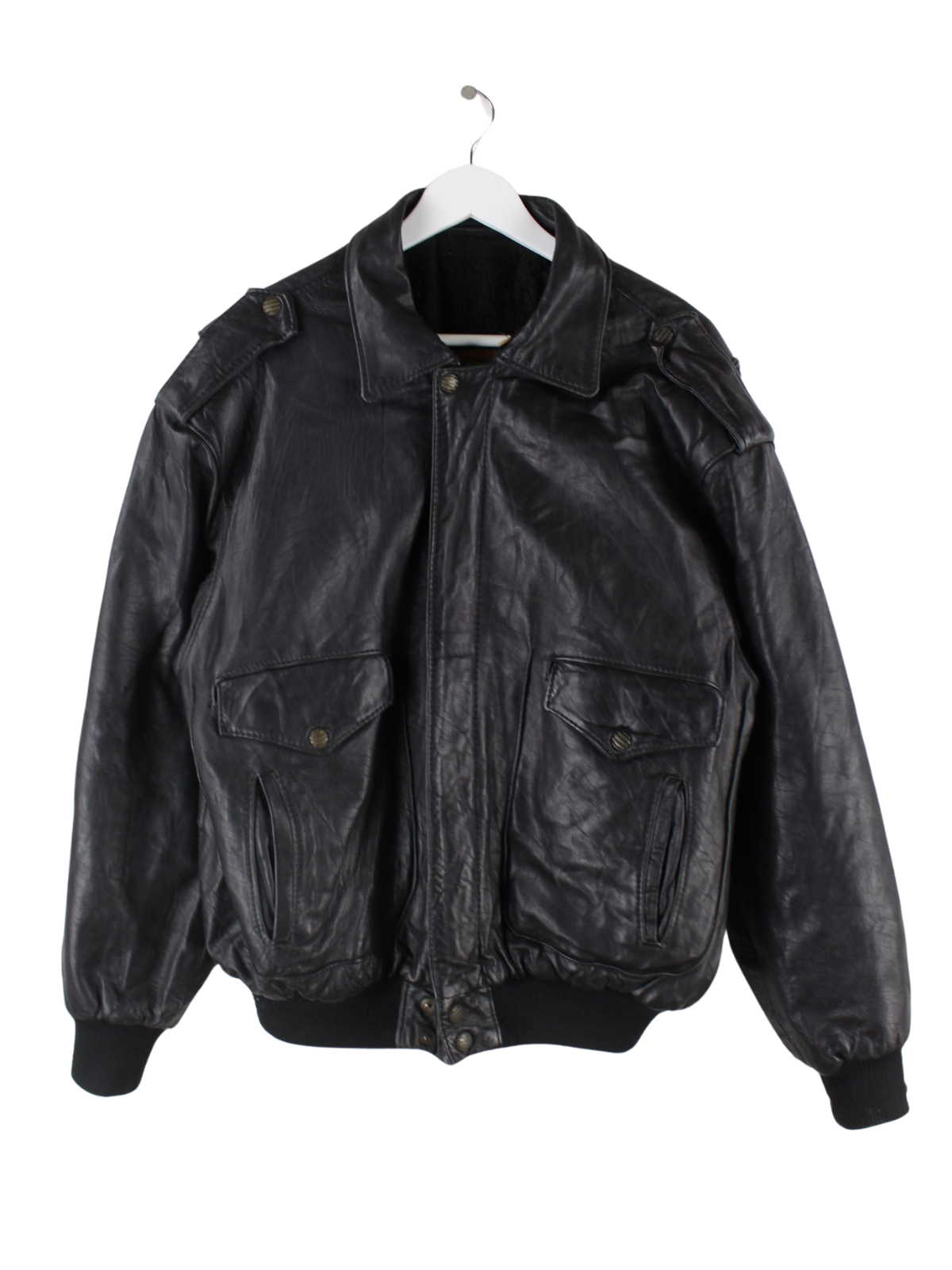 Vintage 90s Bomber Leder Jacke Schwarz L
