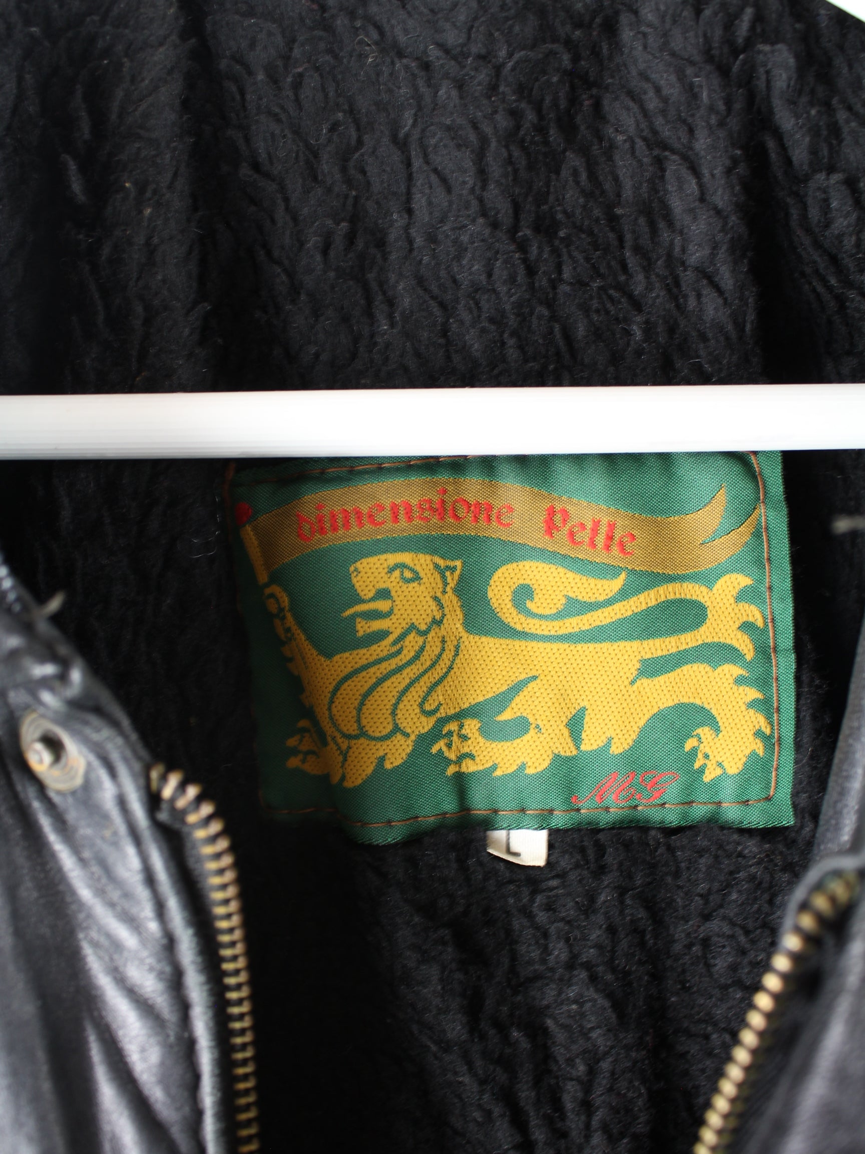 Vintage Jacke in Größe L aus den 90'ern. Sie ist aus Leder produziert und in Schwarz bei uns zu bekommen.
