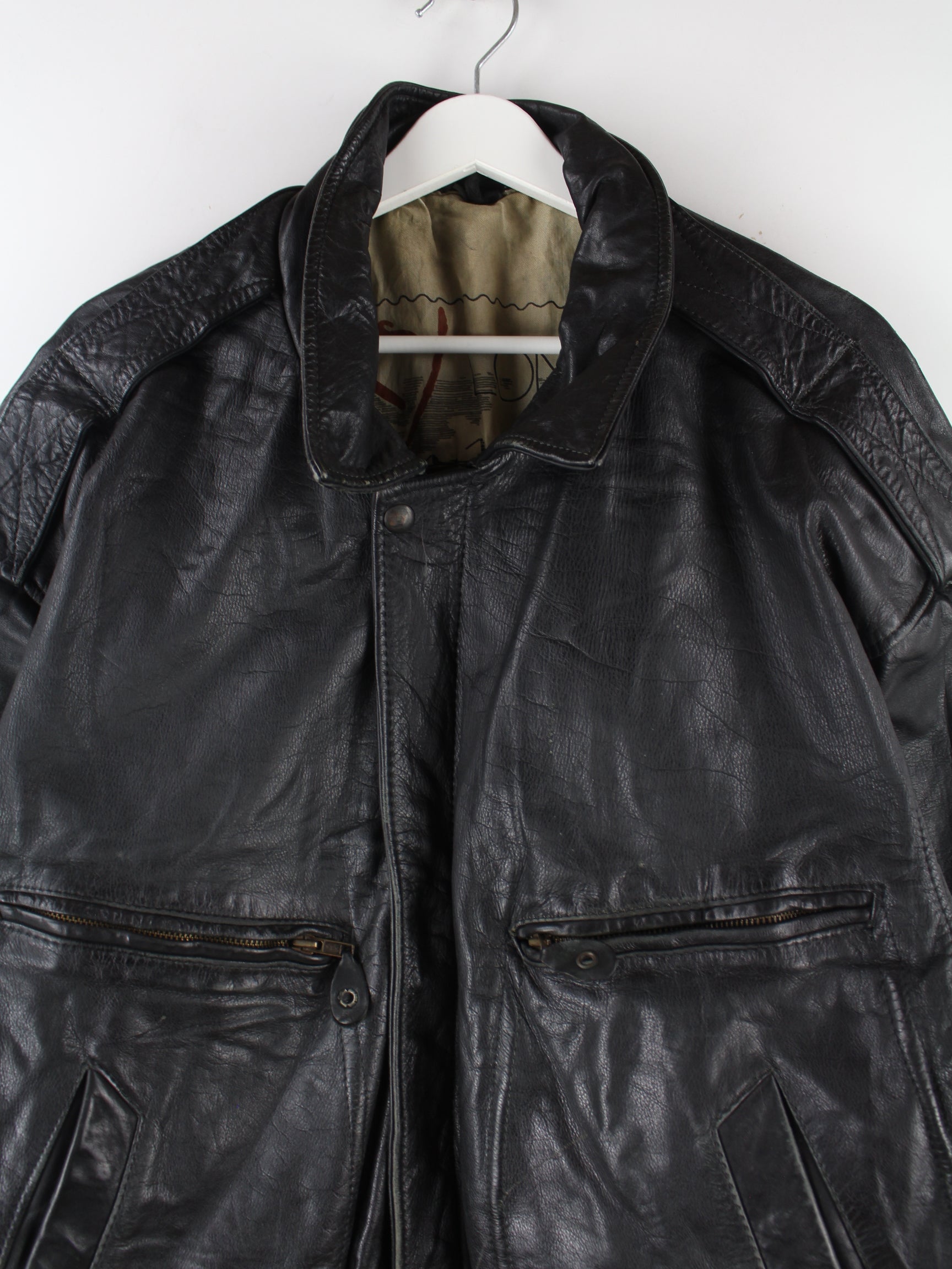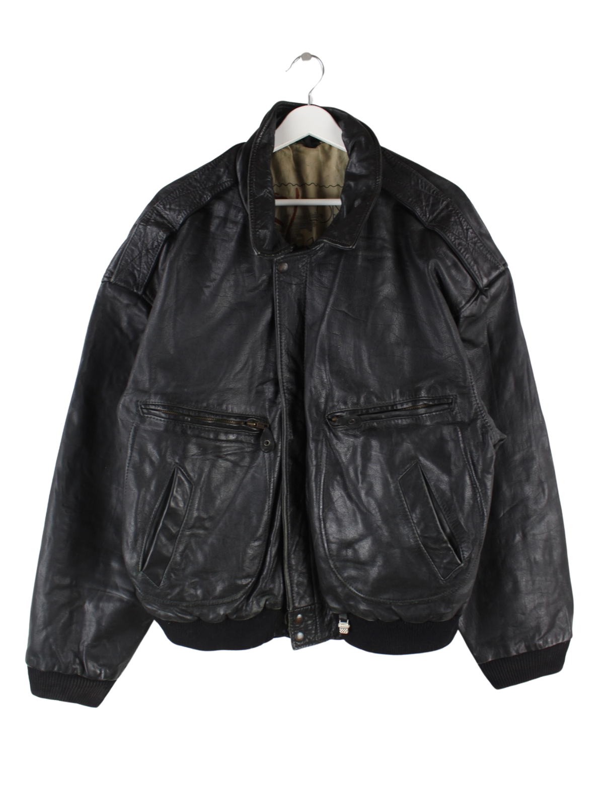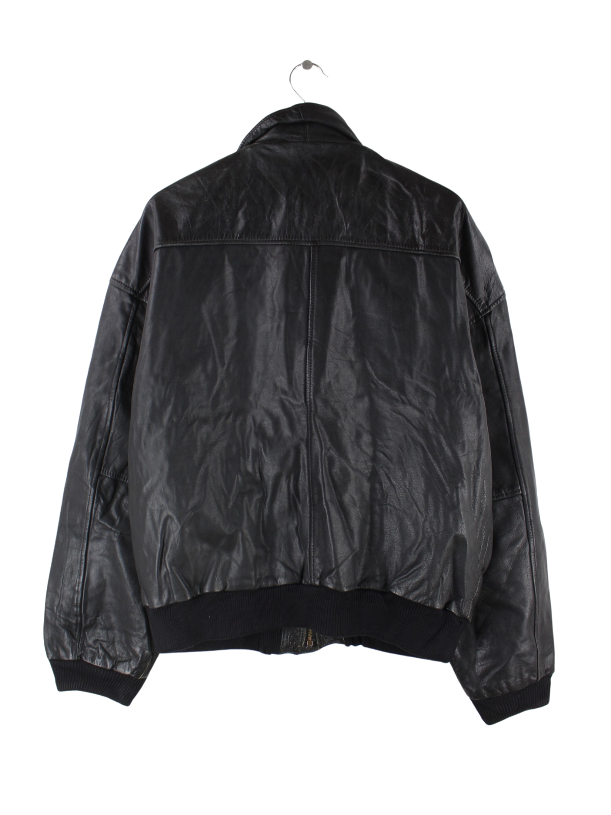 Schwarze Vintage Jacke aus den 90'ern in Größe L. Sie ist aus Leder angefertigt und in sehr gutem Zustand in Stock.