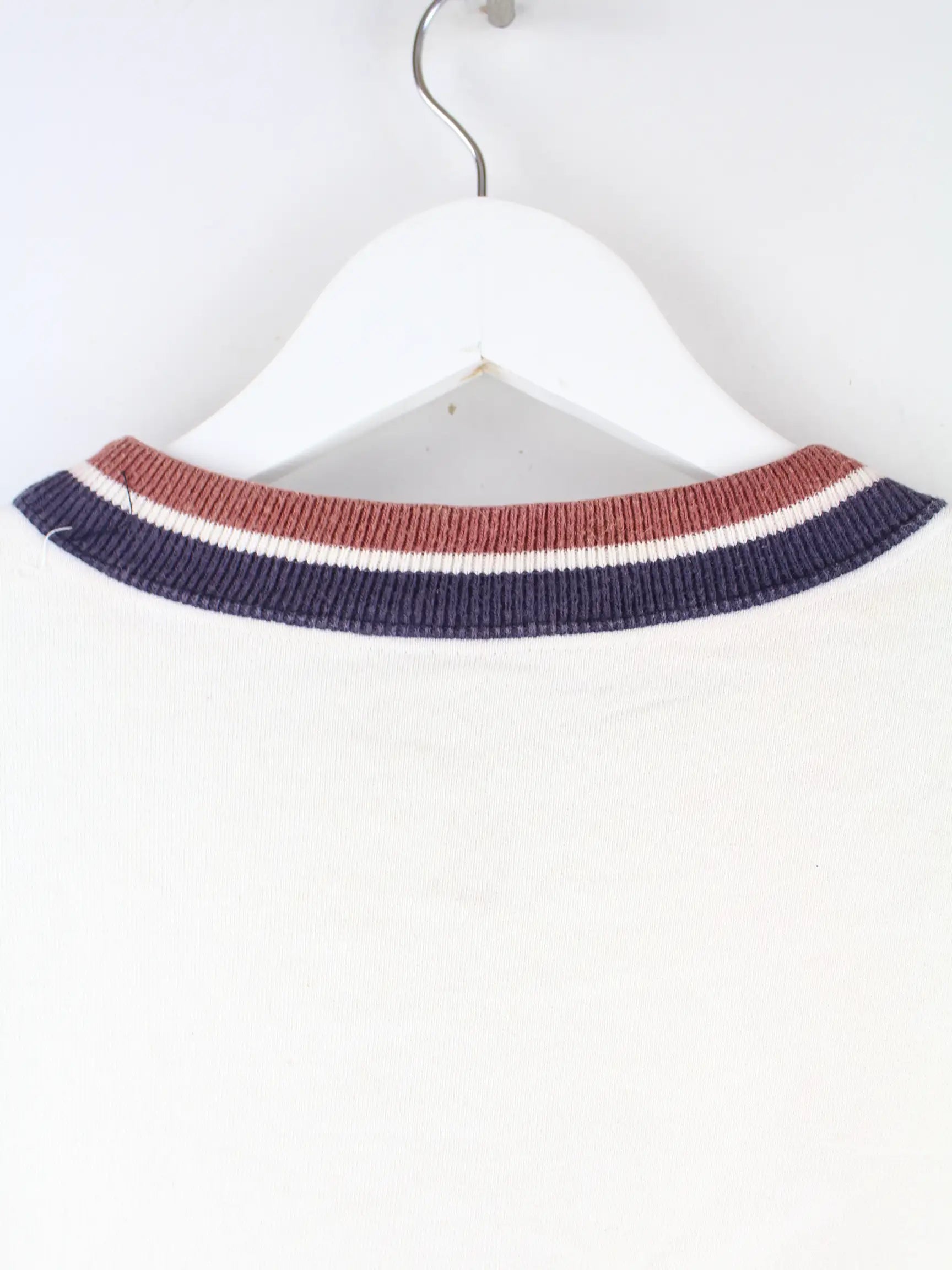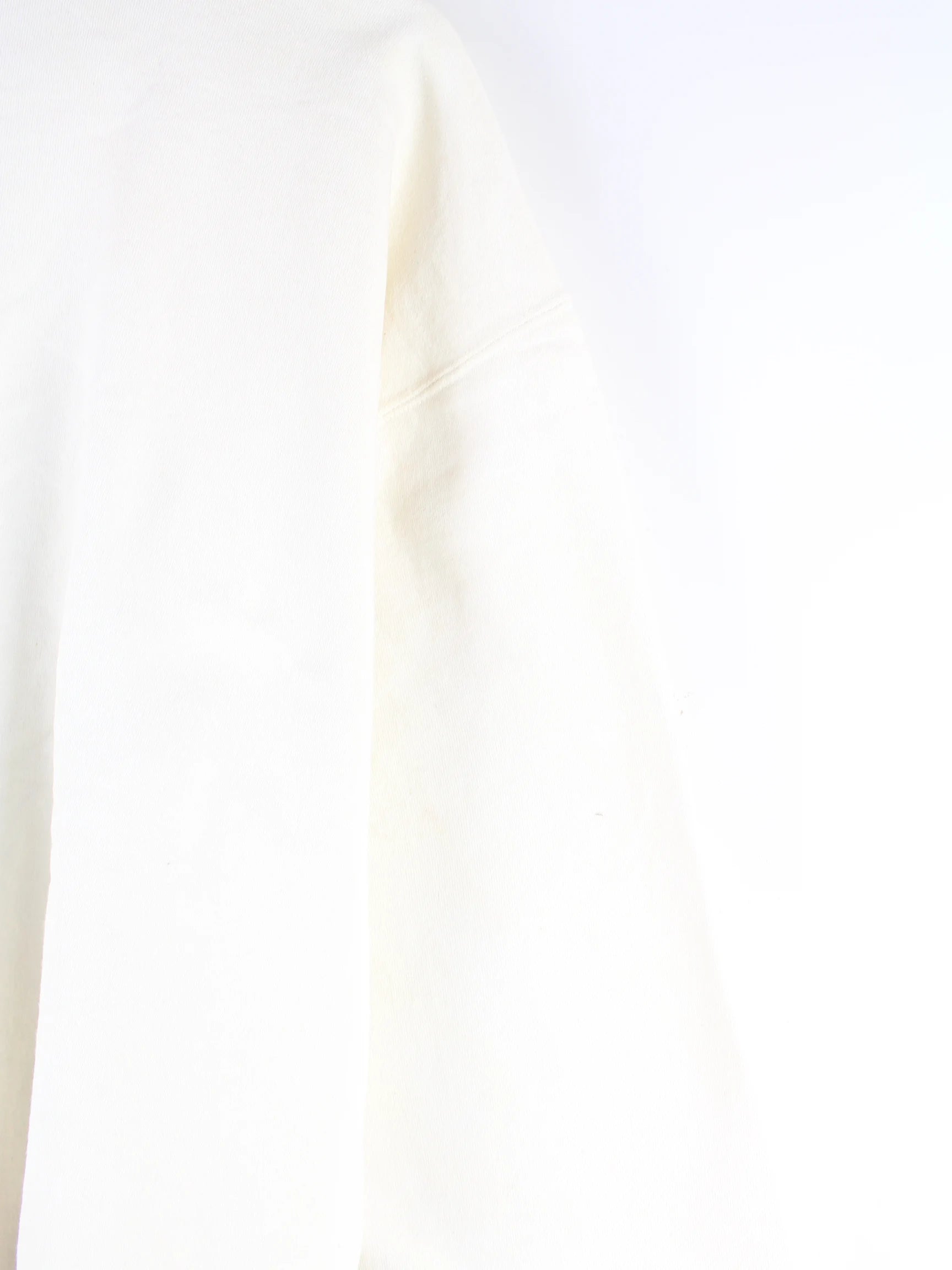 Beigefarbener Vintage Sweater aus den 90'ern in Größe L. Er ist aus einer Baumwollmischung produziert und in gutem Zustand zu haben. Mit chiquem Minnesota Print.