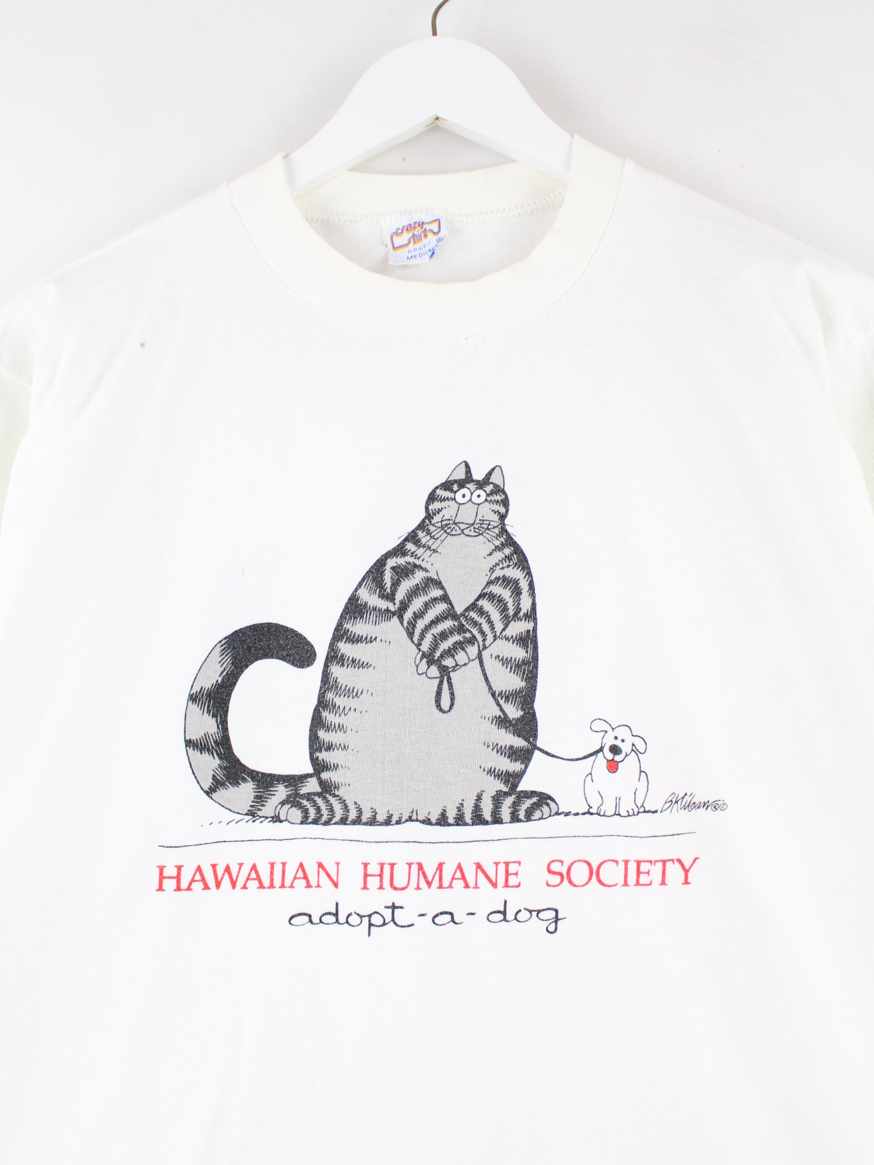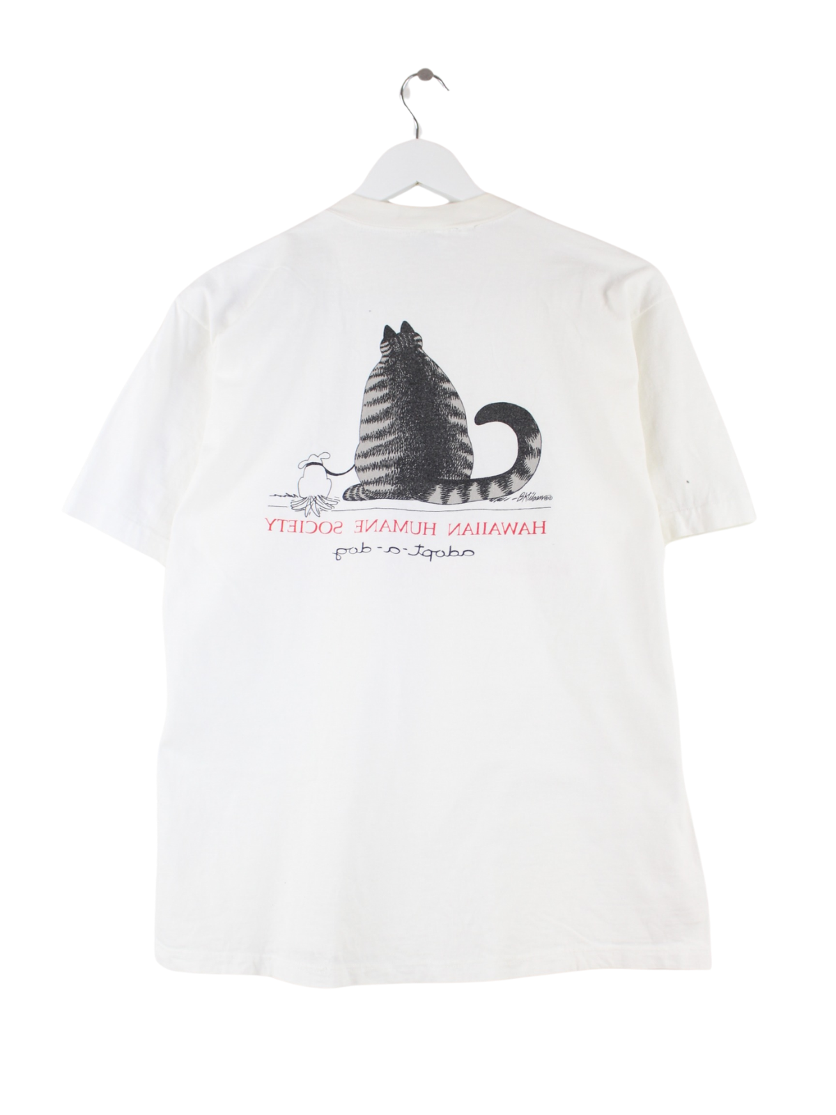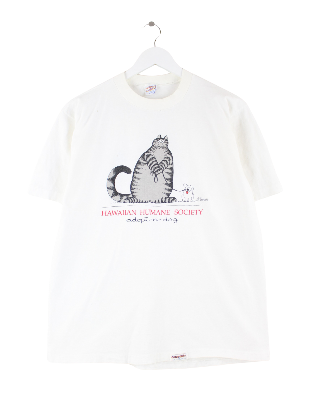 Vintage 90s Cat Dog Print Single Stitch T-Shirt White M