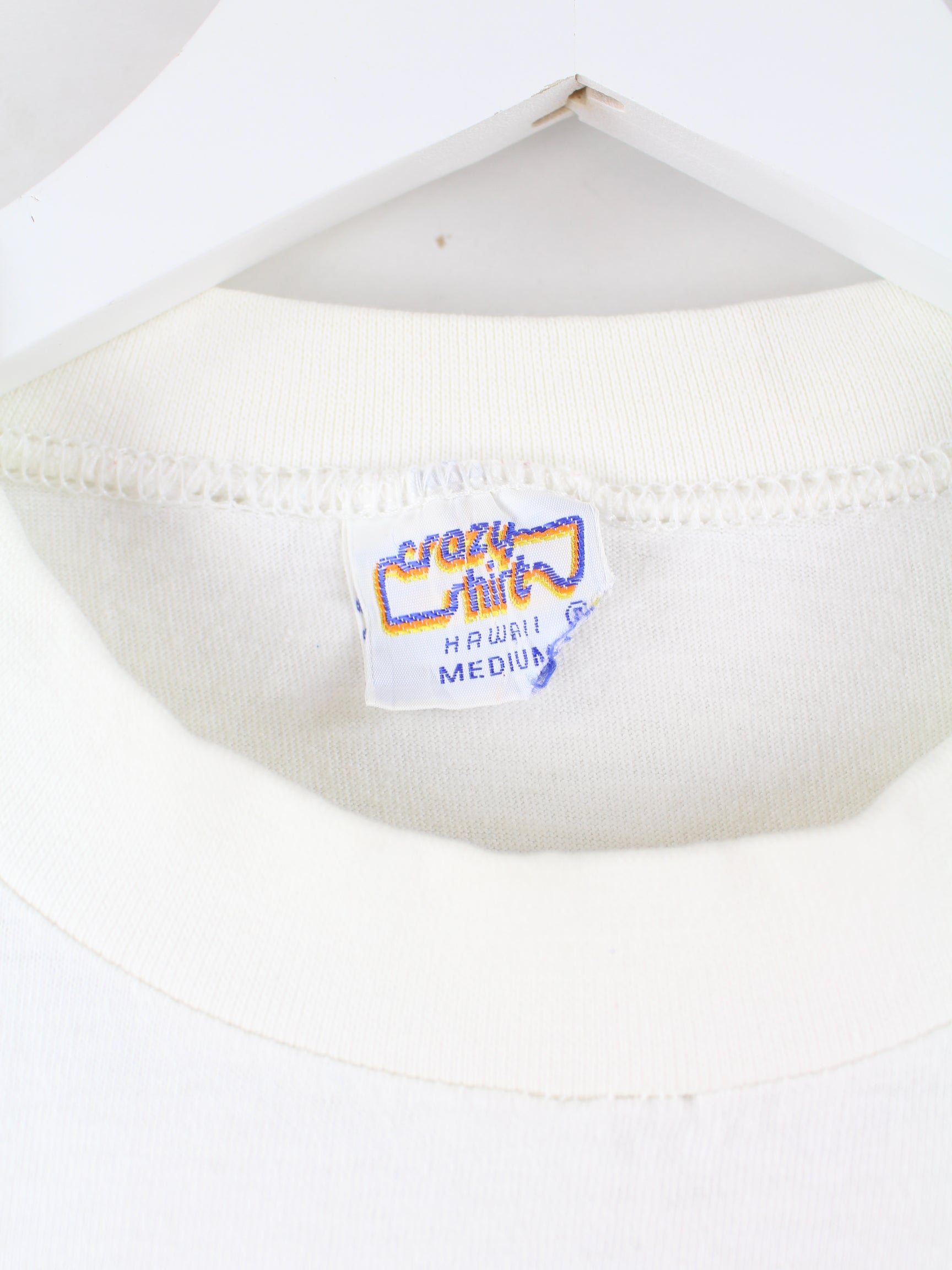 White vintage T-shirt from the 90's in size M. It is made of cotton and is available from us in good condition. With a chic dog print.