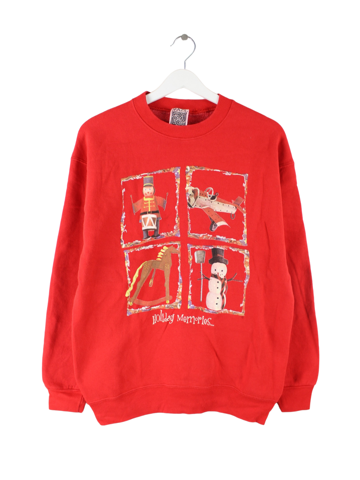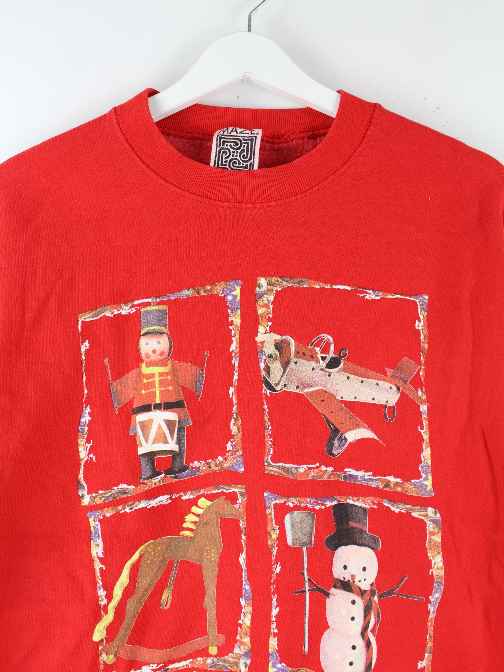 Vintage Sweater in Größe M aus den 90'ern. Er ist aus einer Baumwollmischung und in Rot auf Lager. Mit chicem Christmas Print.