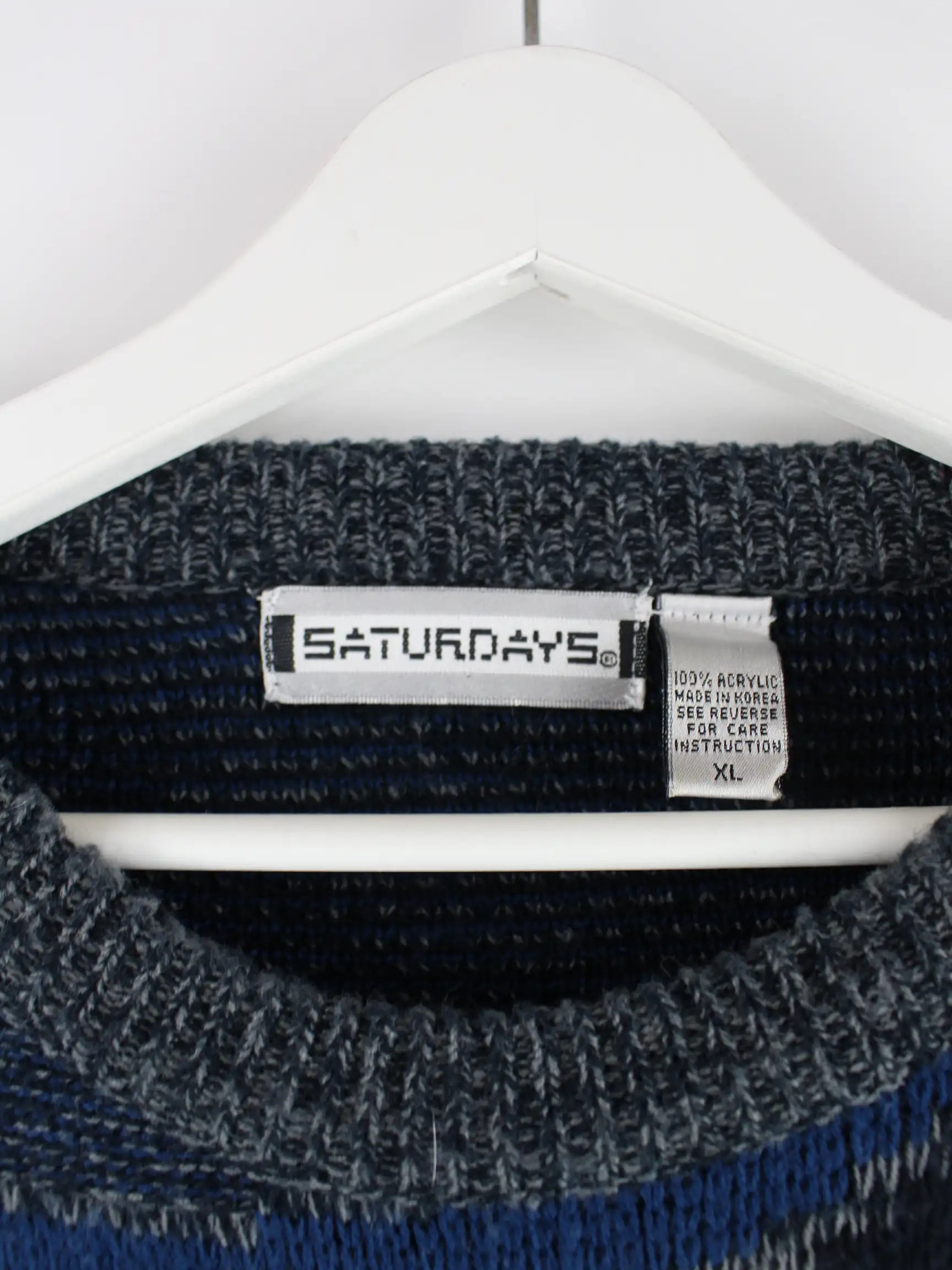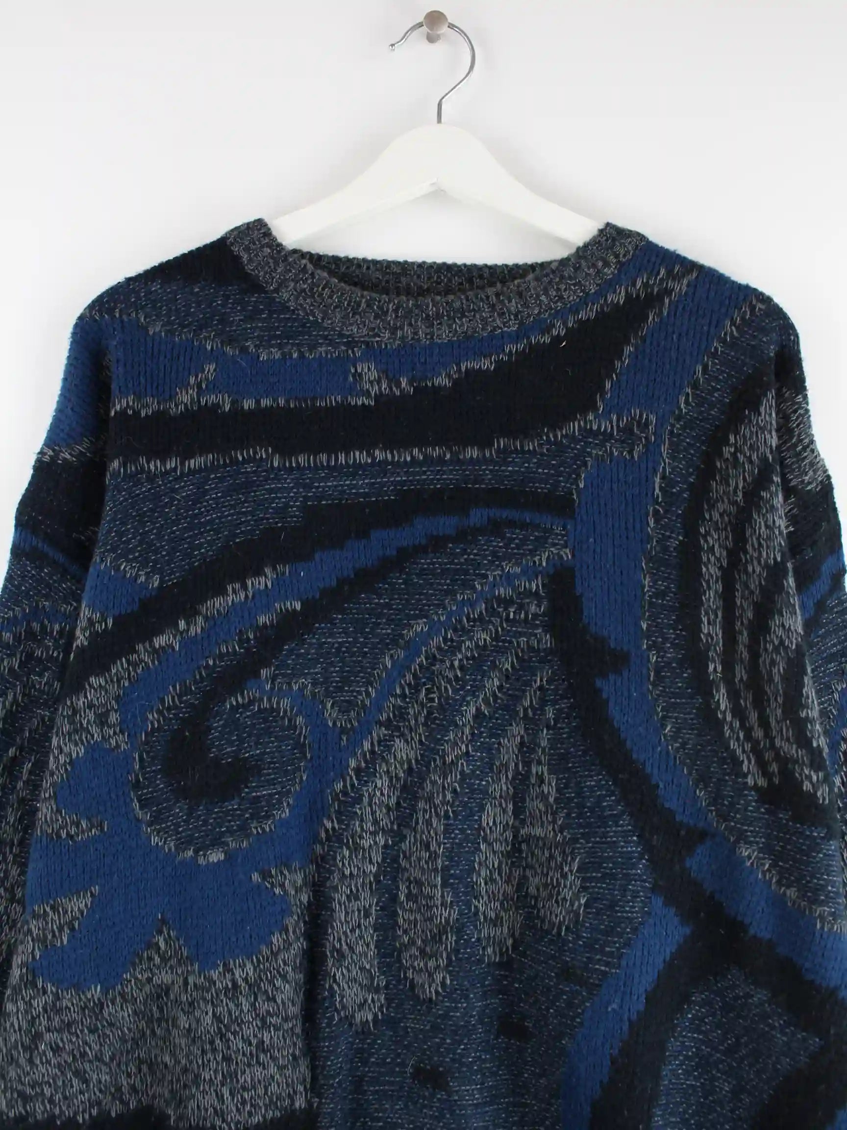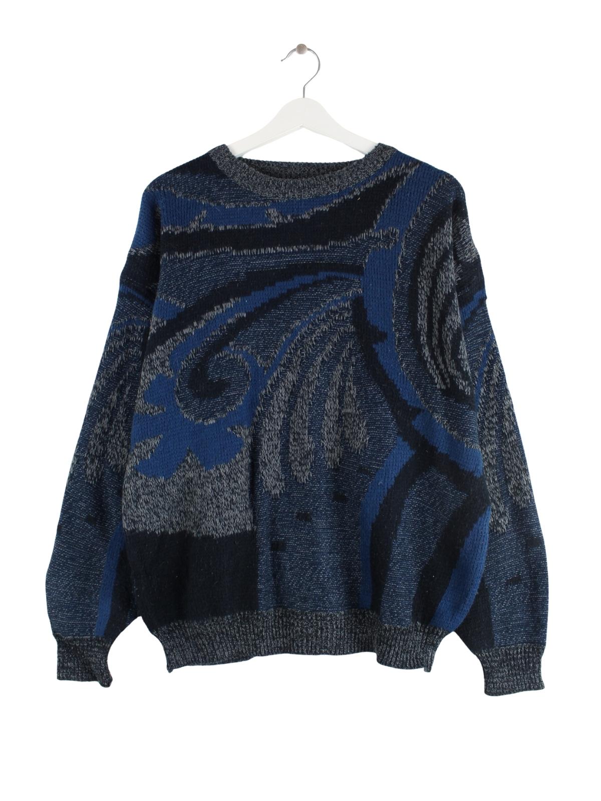 Vintage 90s Crazy Pattern Strick Pullover Blau XL