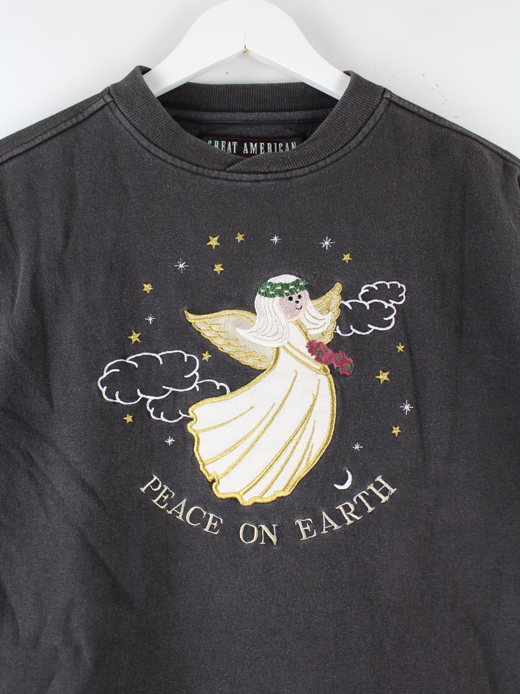 Vintage 90s Embroidered Christmas Sweater Grau XL
