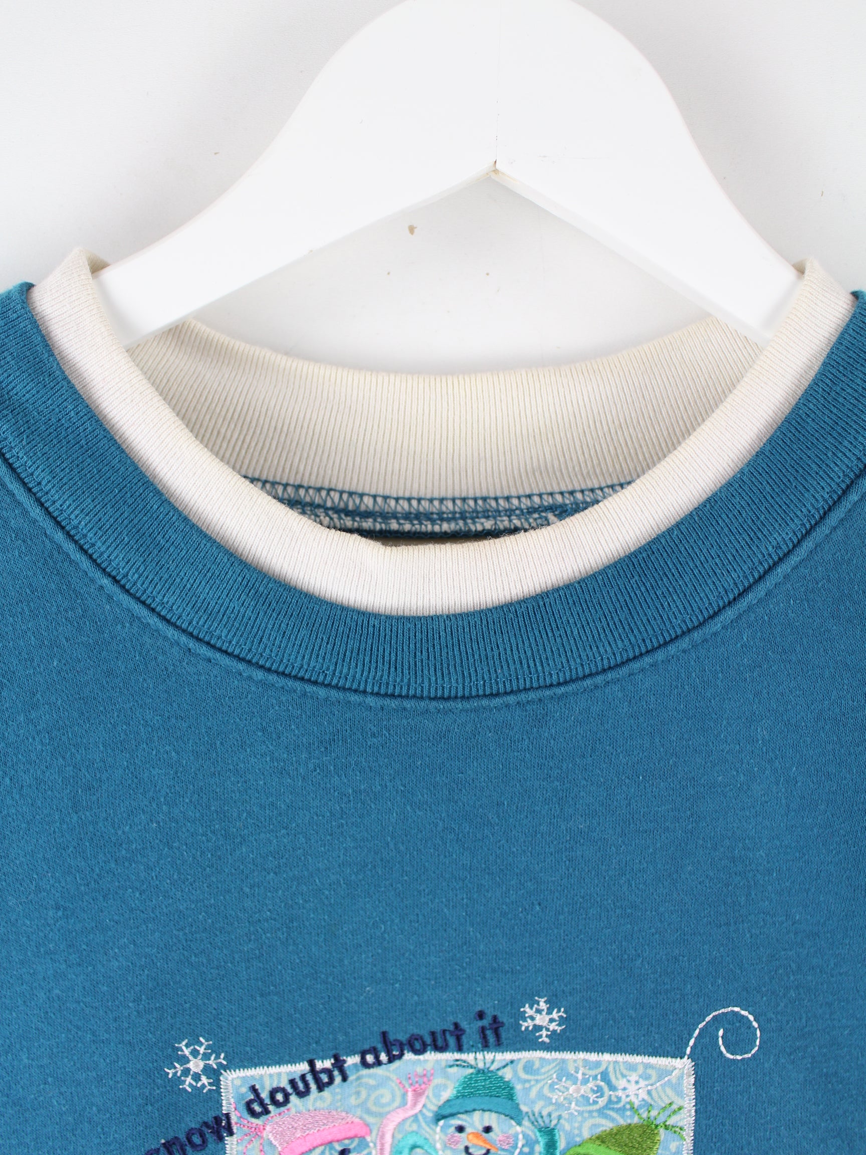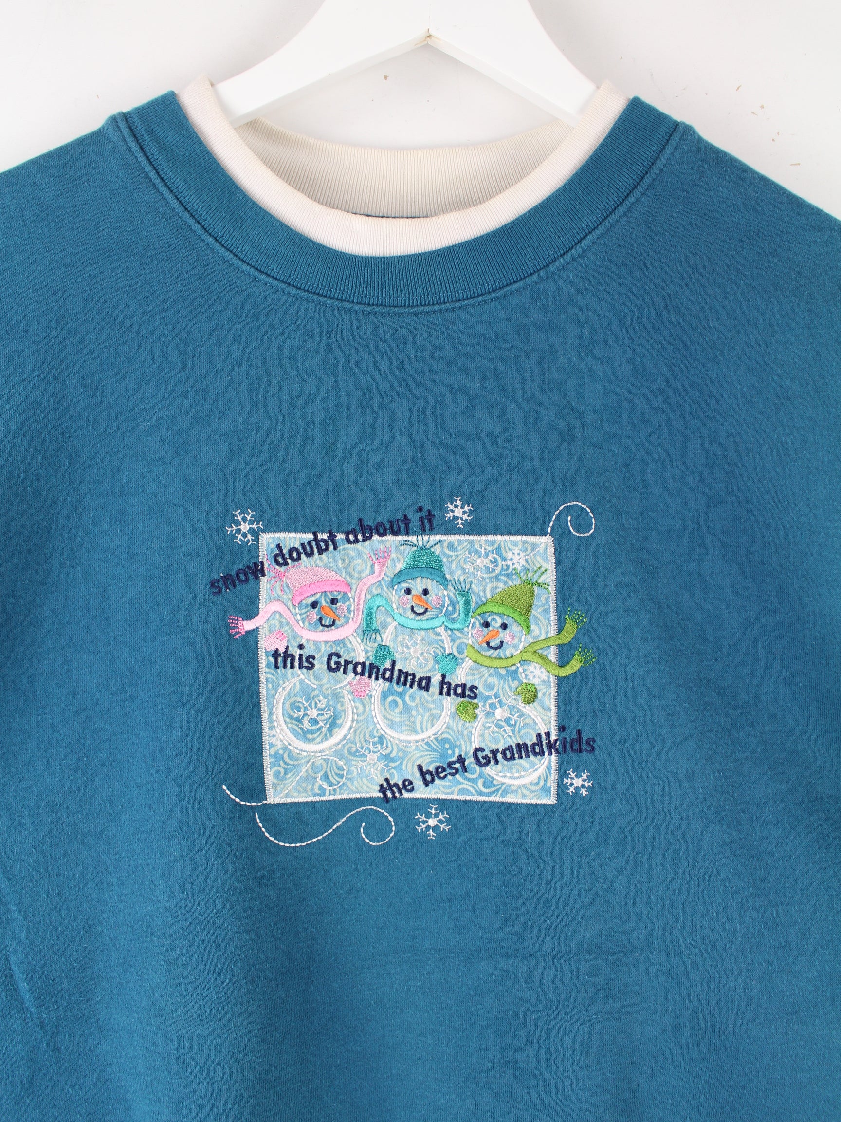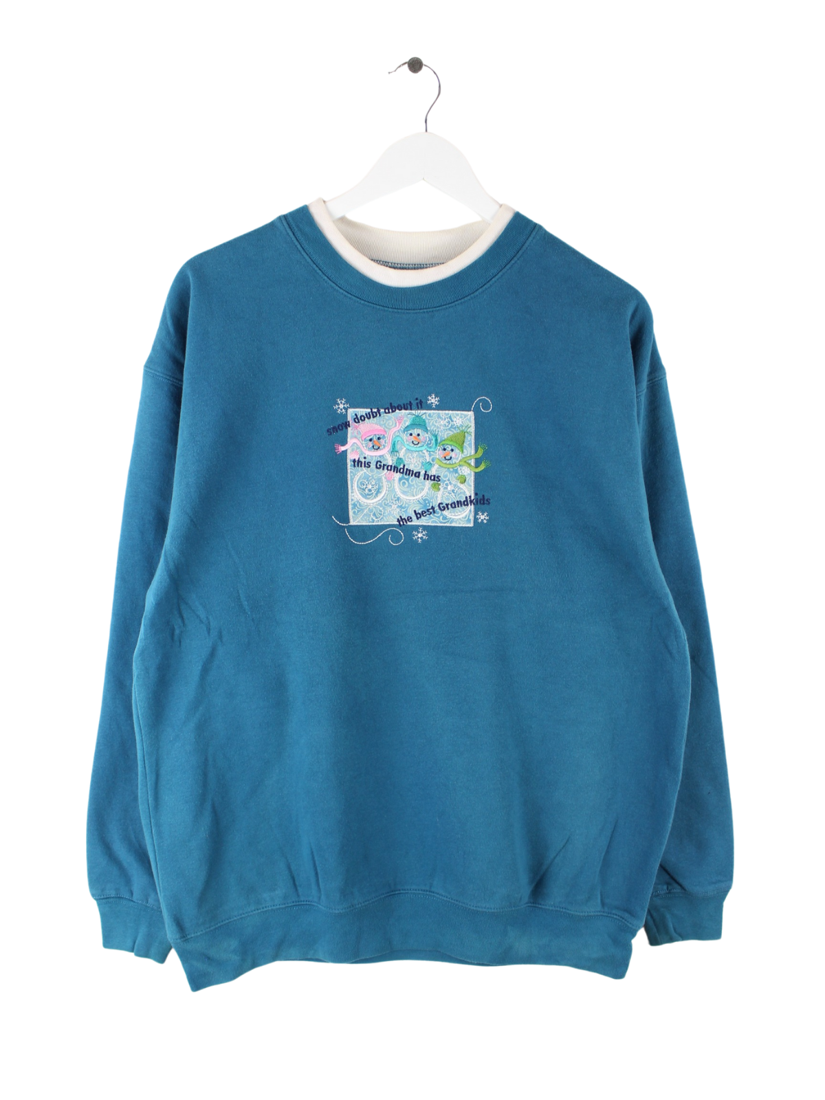 Vintage 90s Embroidered Christmas Sweater Türkis L