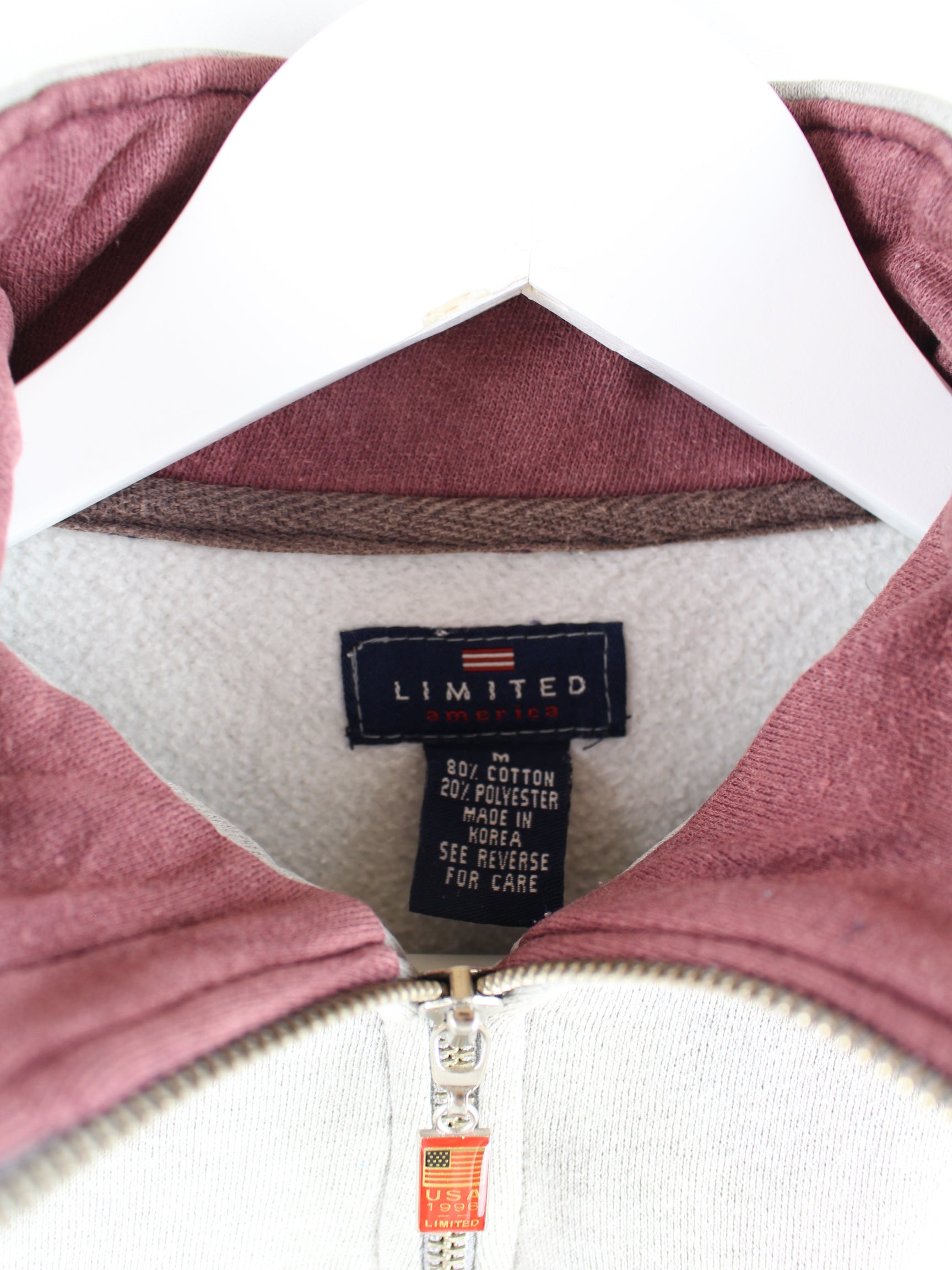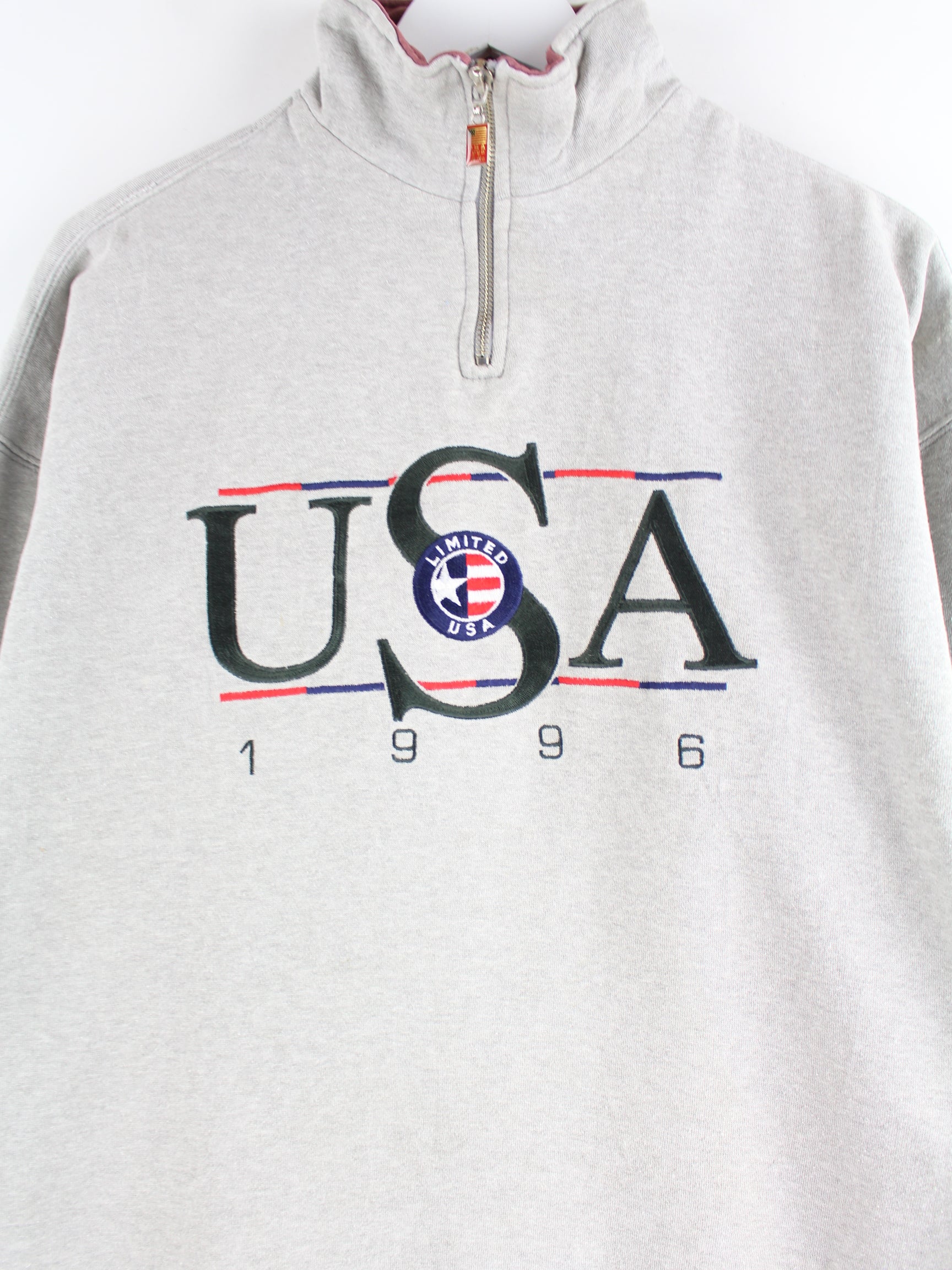 Vintage 90s Embroidered Half Zip Sweater Grey M