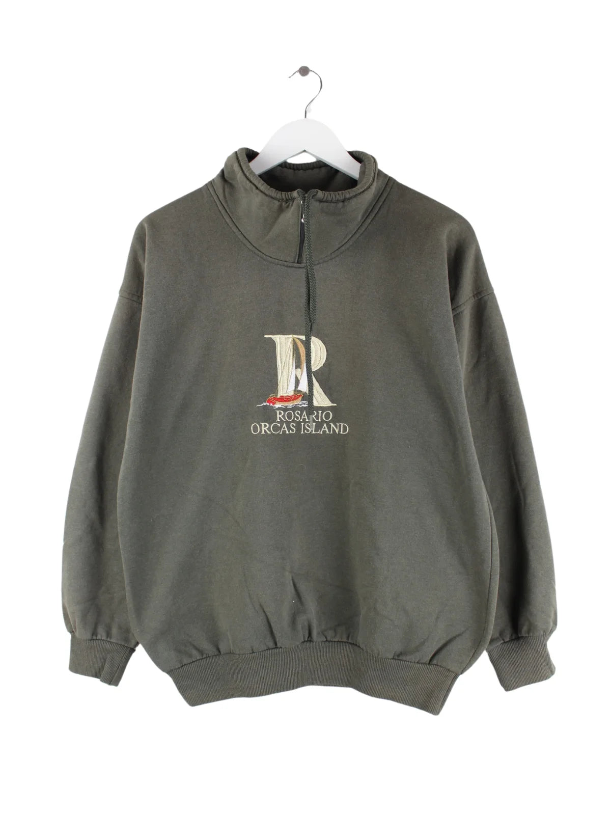 Vintage 90s Embroidered Half Zip Sweater Grün M