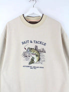 Vintage 90s Fishing Embroidered Sweater Beige L