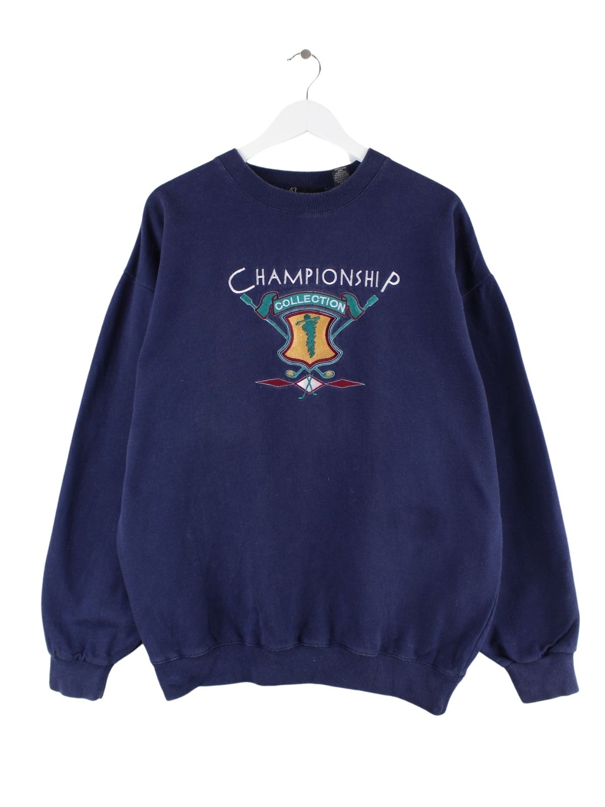 Vintage 90s Golf Championship Embroidered Sweater Blau XL