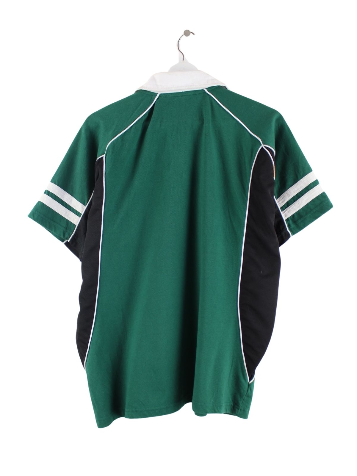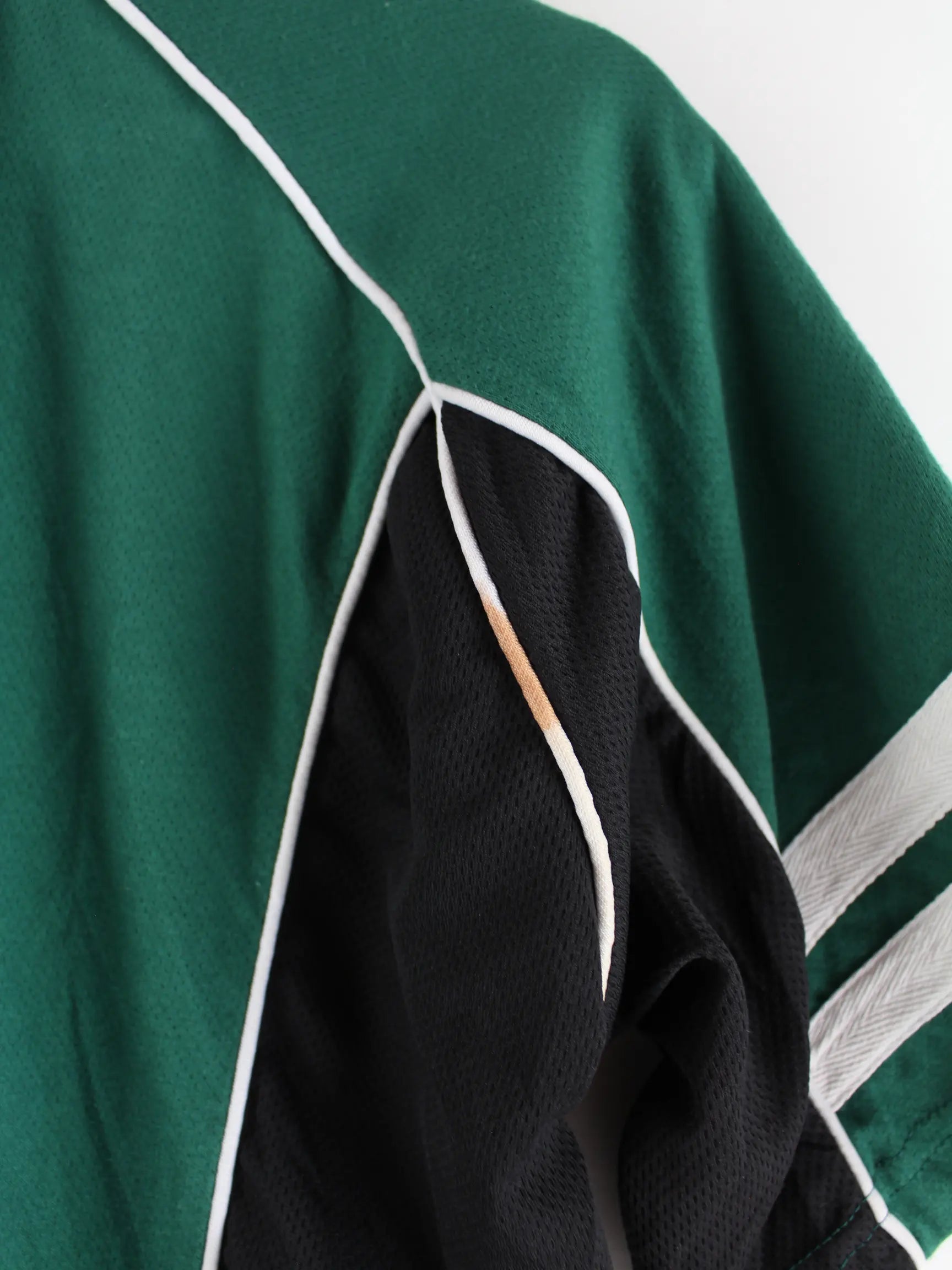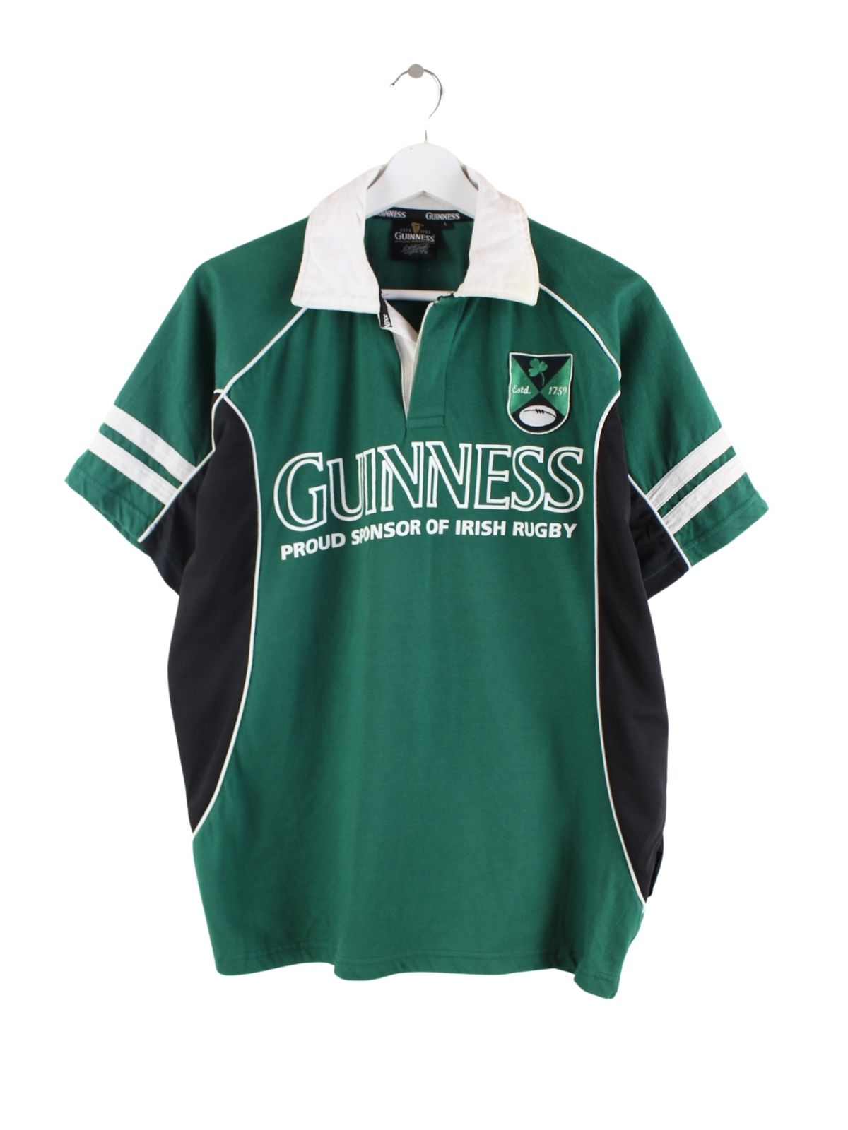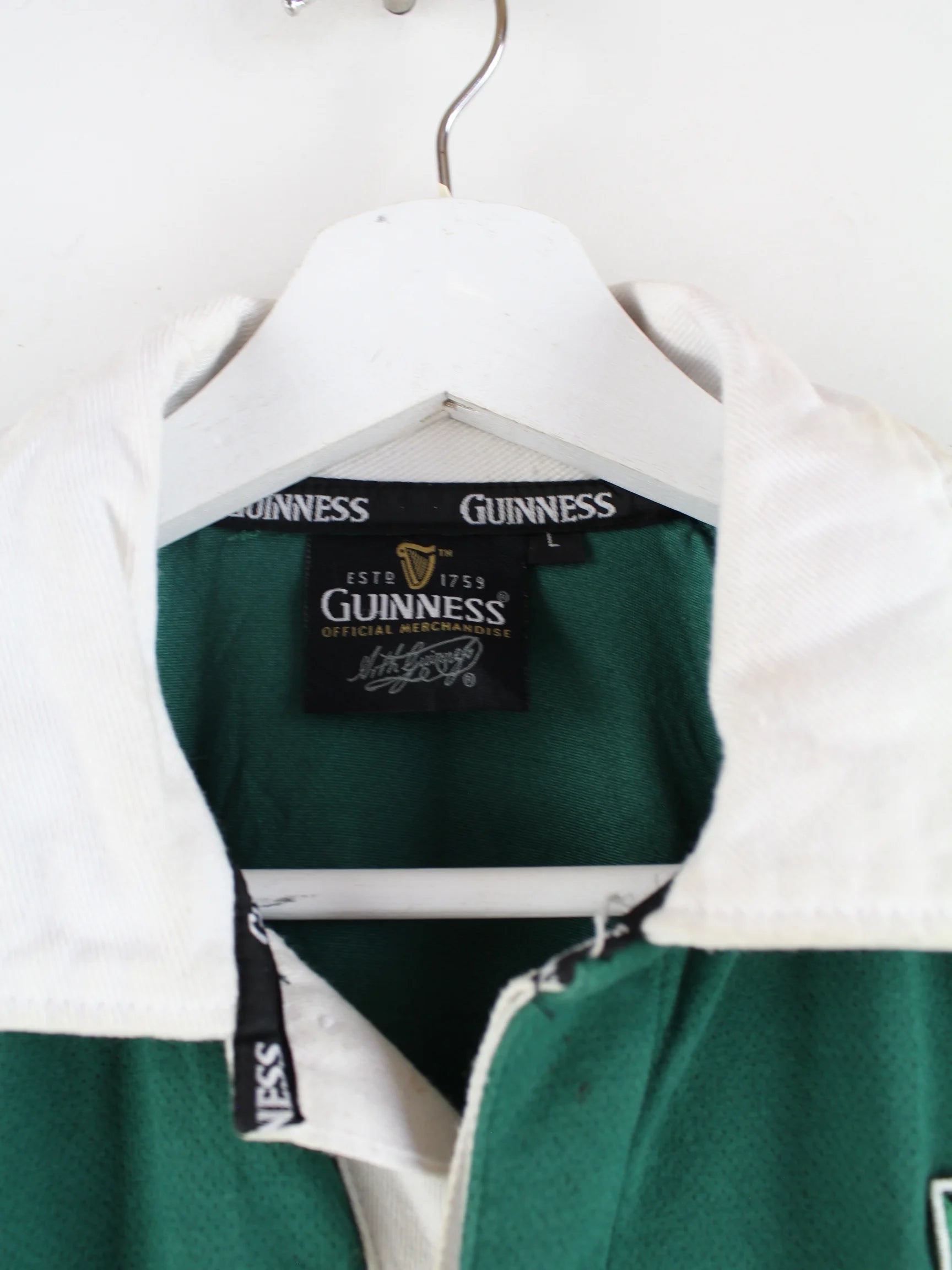 Grünes Vintage Trikot aus den 90'ern in Größe L. Es ist aus Synthetik angefertigt und in gutem Zustand auf Lager. Mit chiquem Guiness Print.