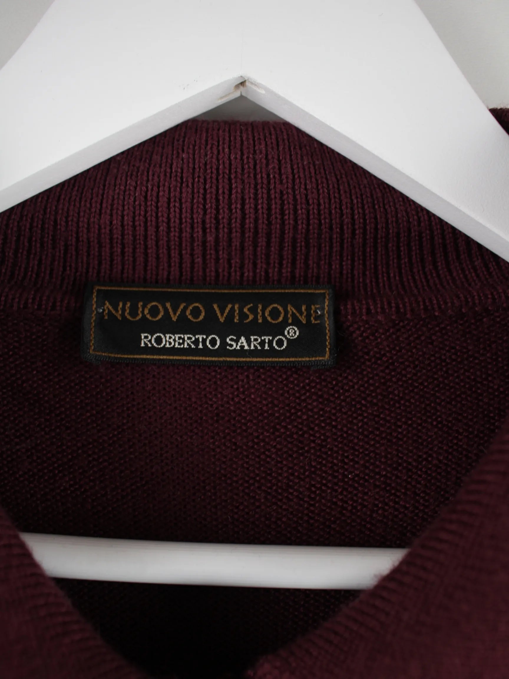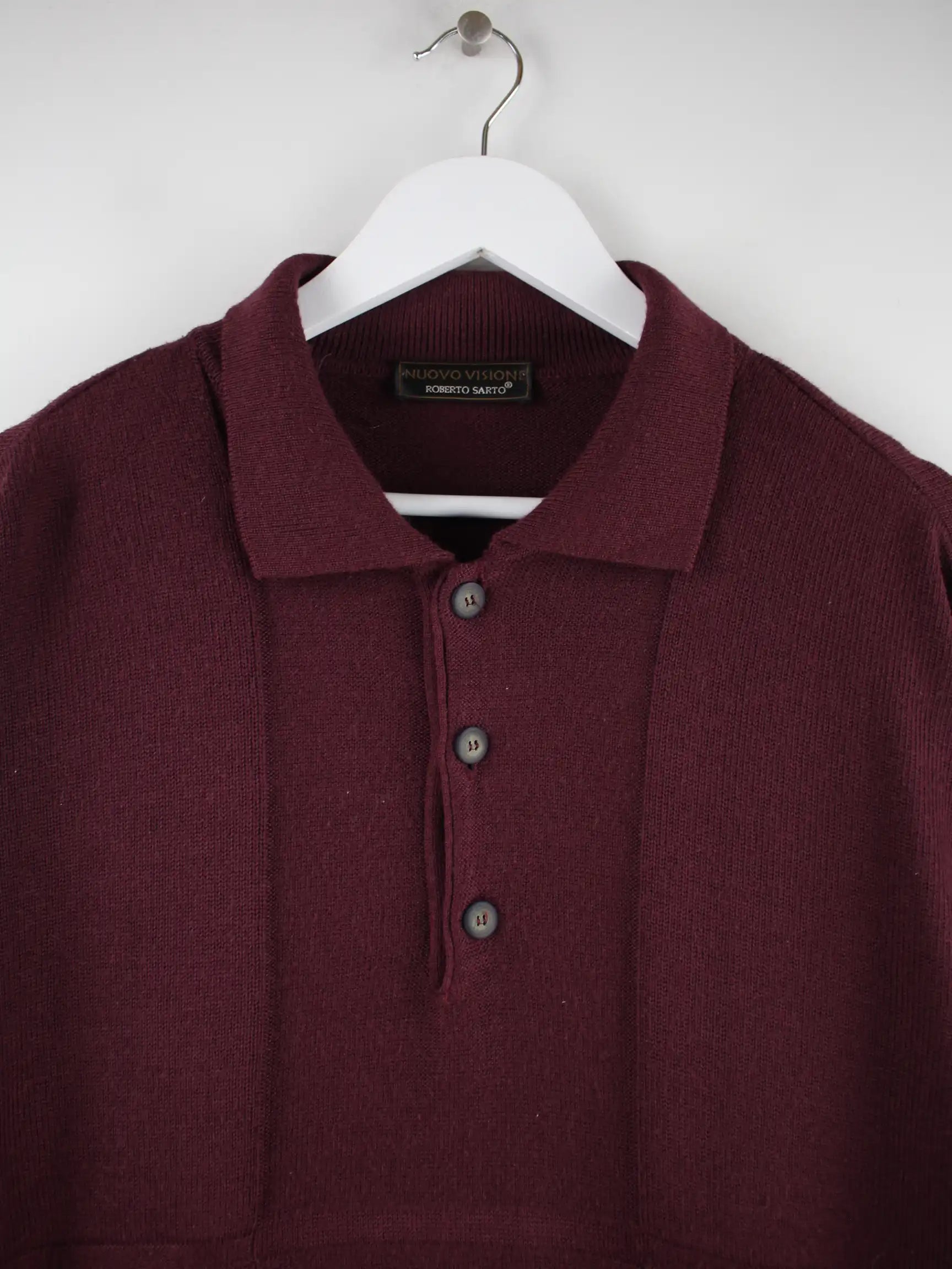 Vintage Pullover in Größe XL aus den 90'ern. Er ist aus einer Wollmischung angefertigt und in Rot im Angebot.
