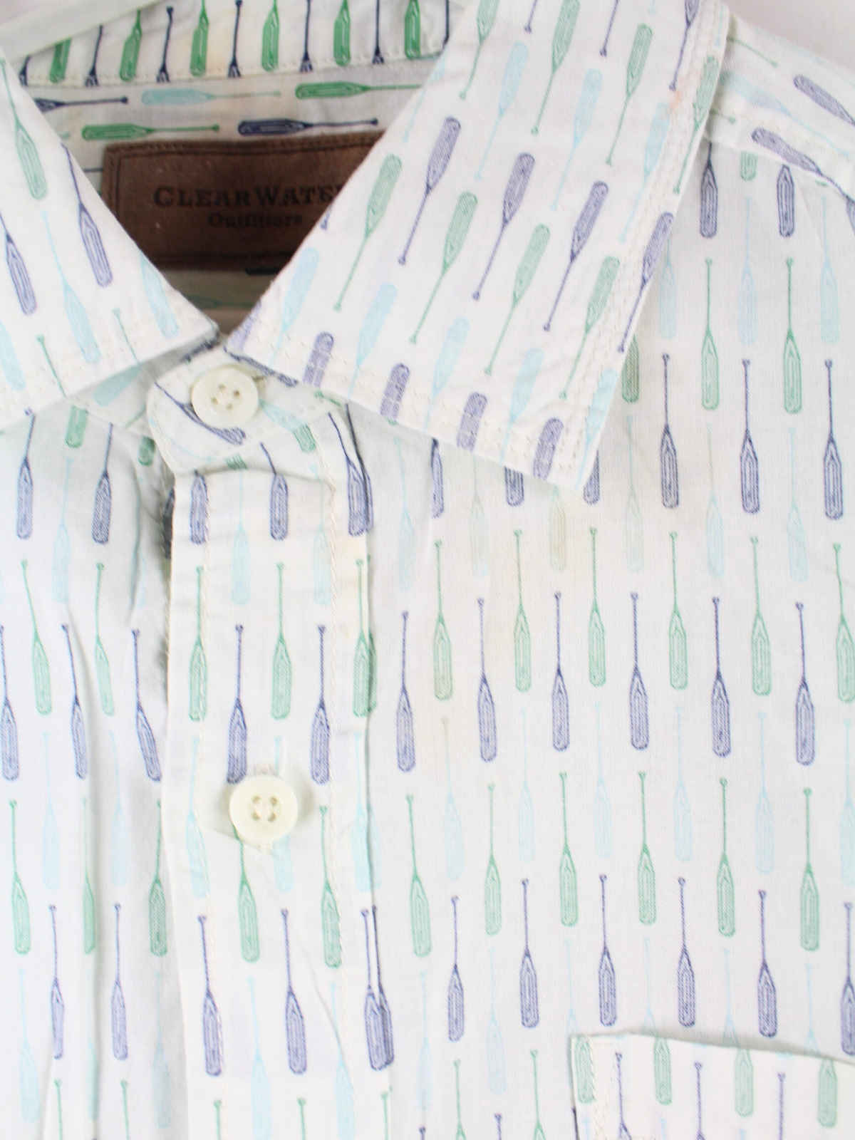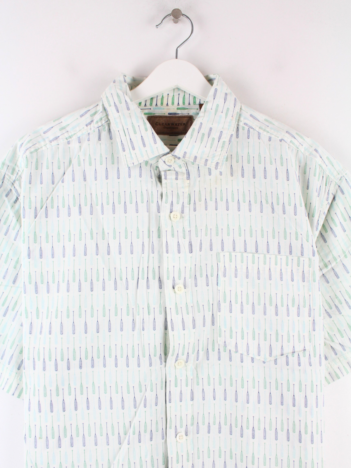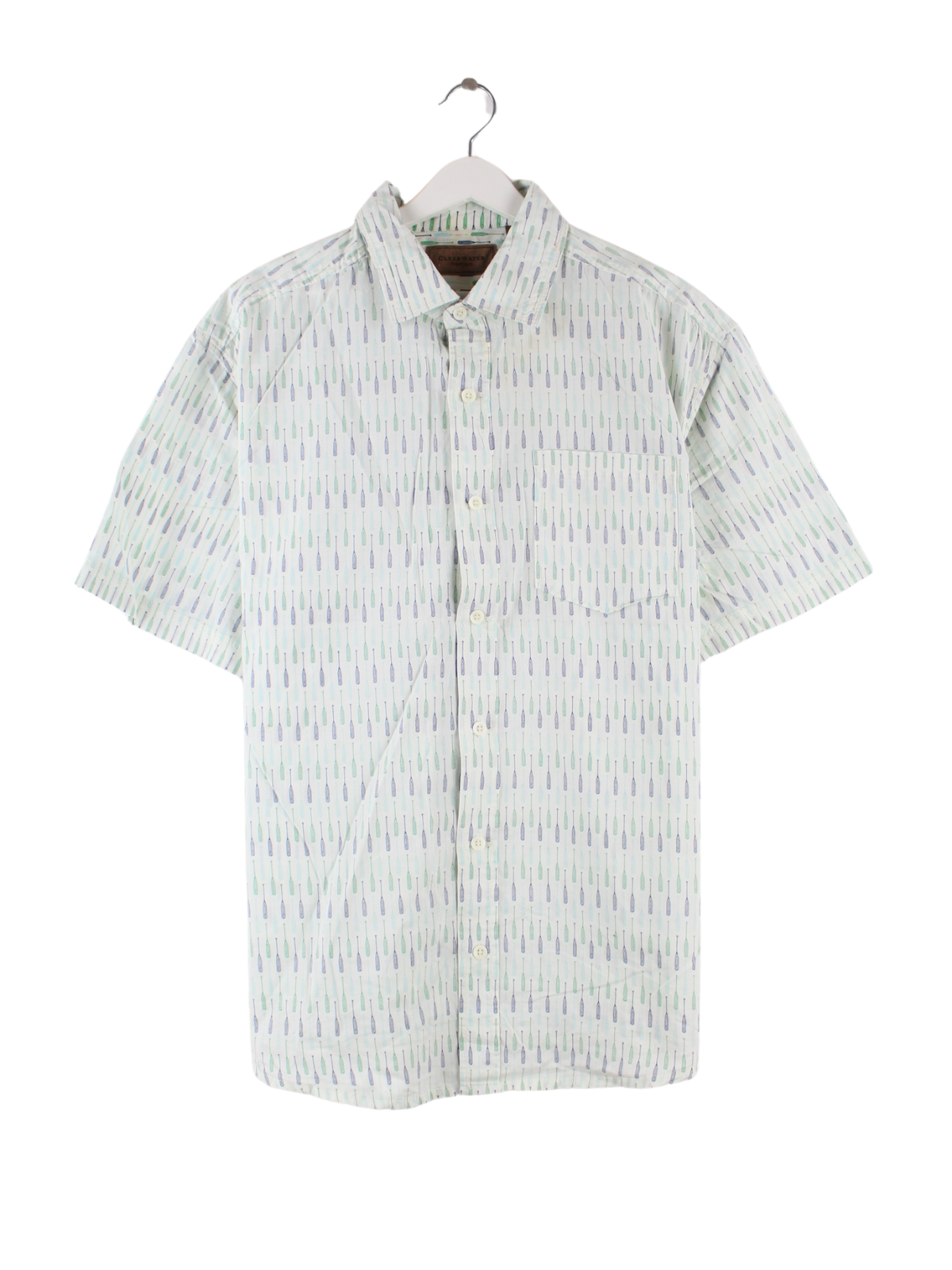 Green vintage casual shirt from the 90's in size L. It is made of cotton and in good condition in stock.